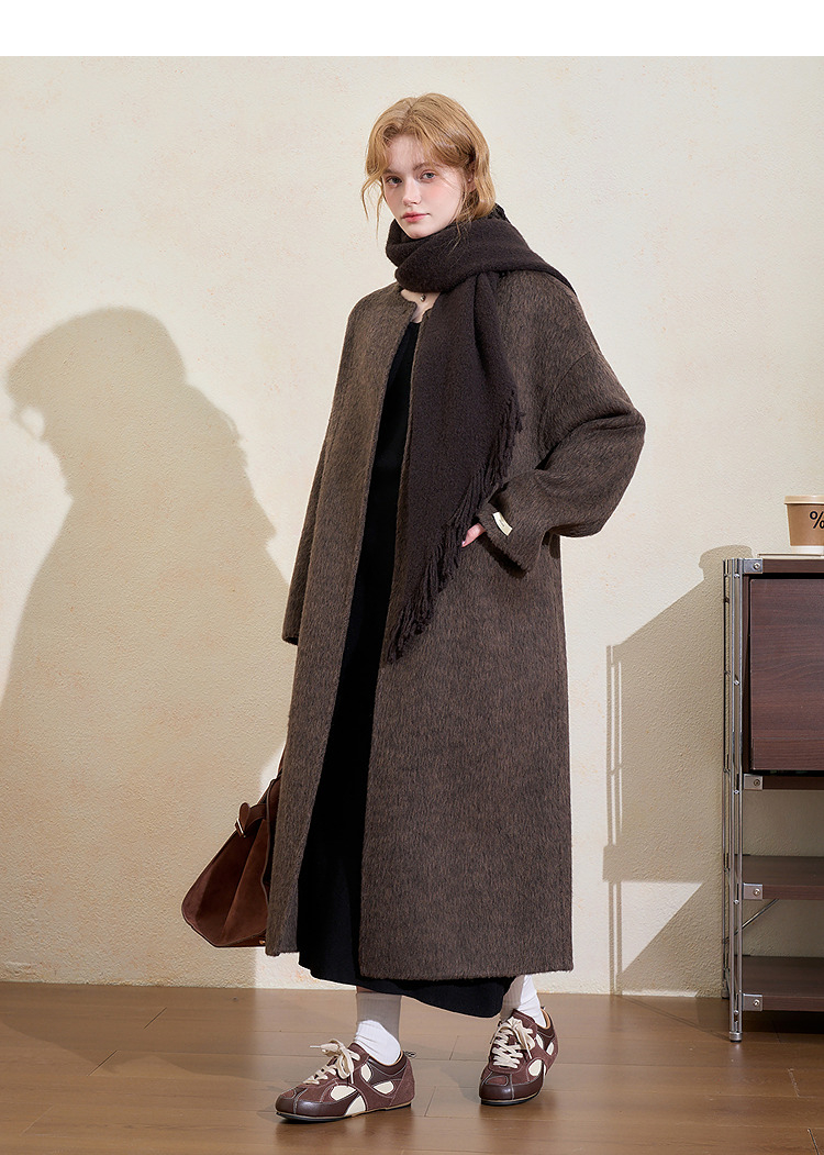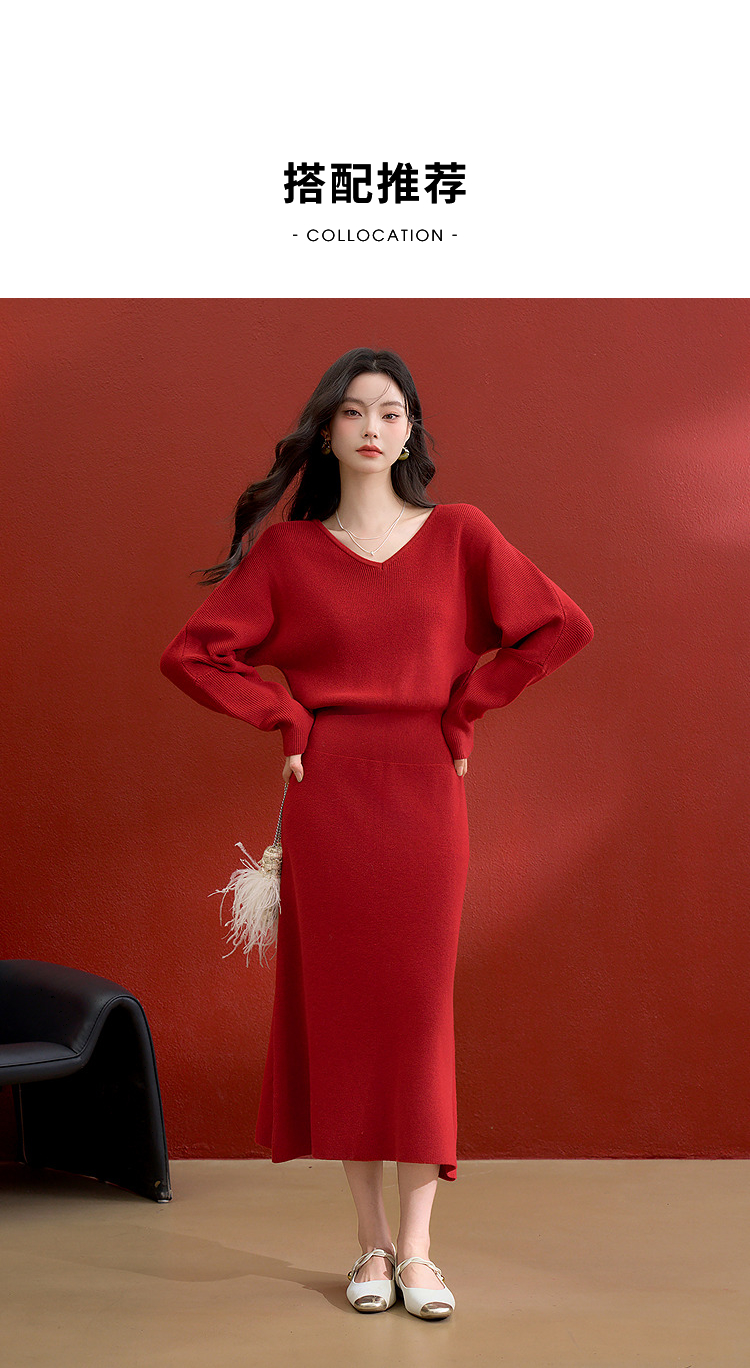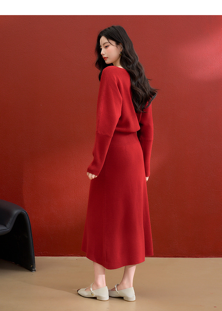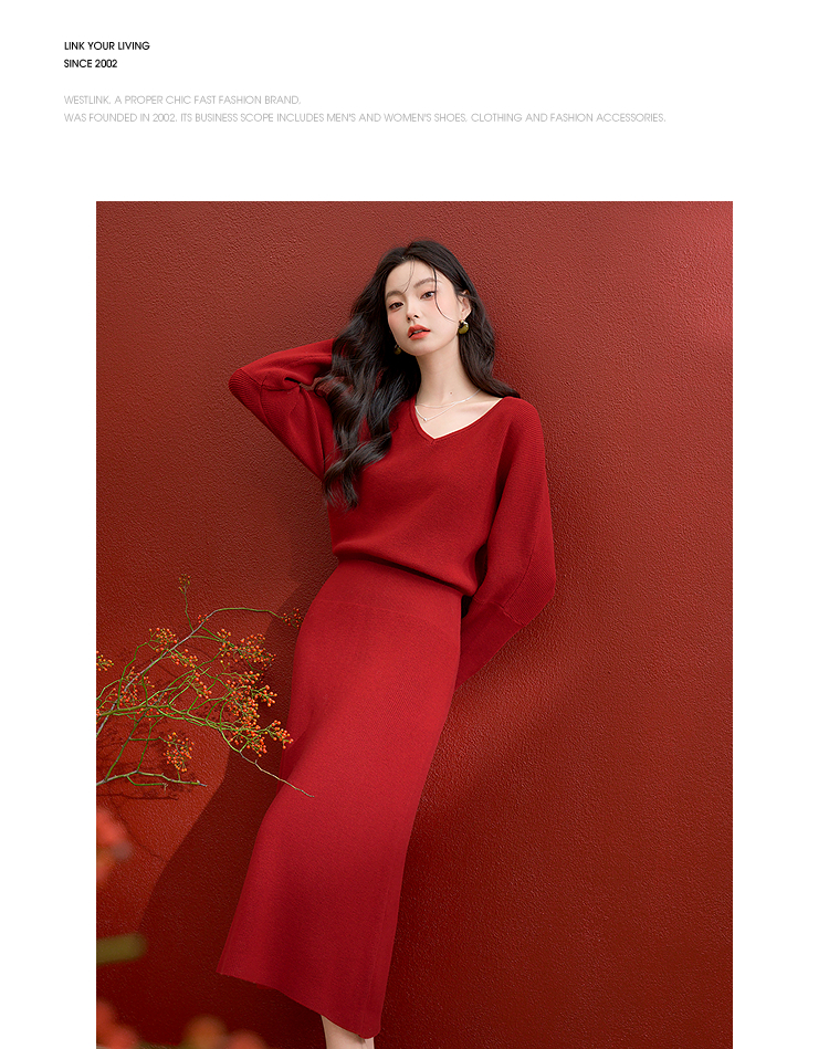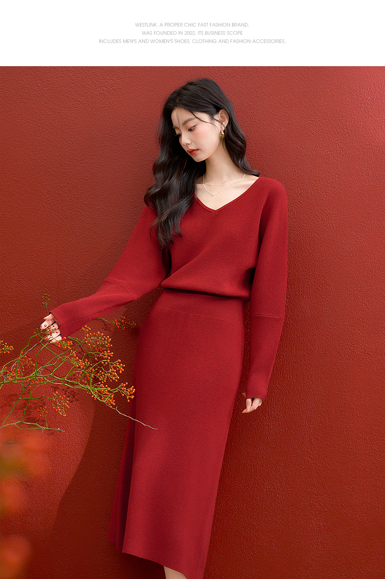 西遇气质V领长袖针织连衣裙女冬季软糯高级收腰显瘦内搭长裙V3855313