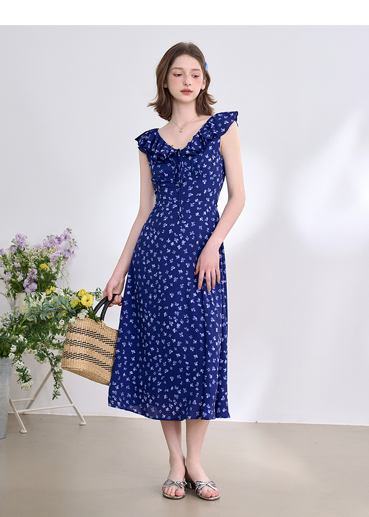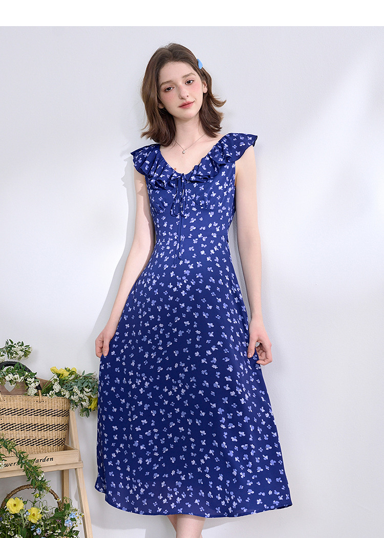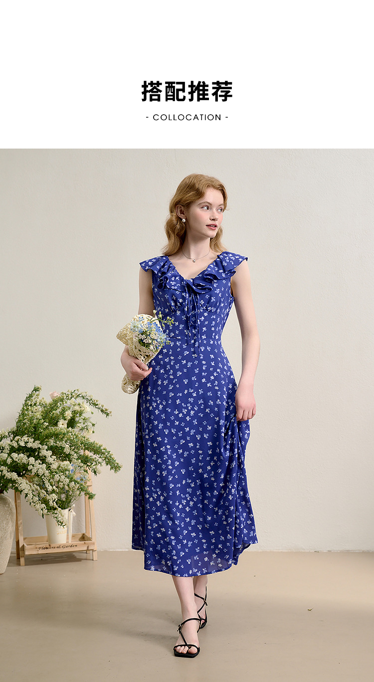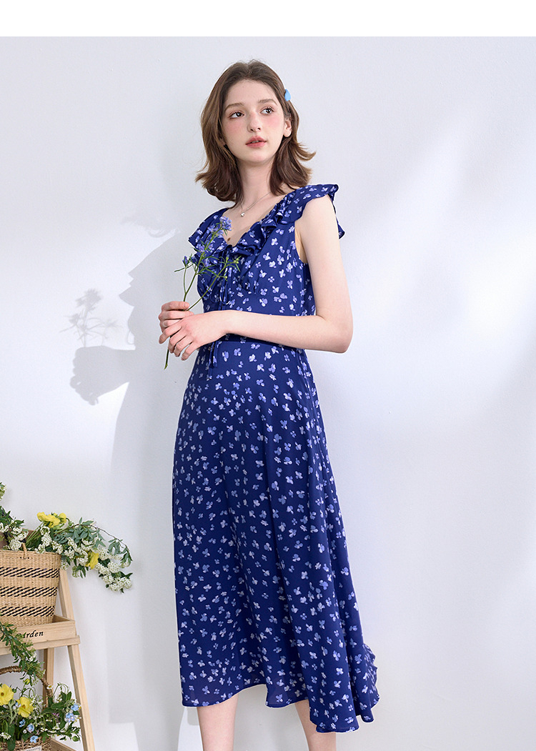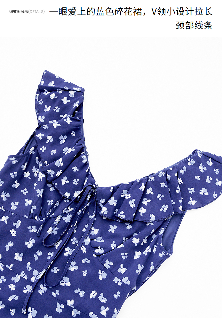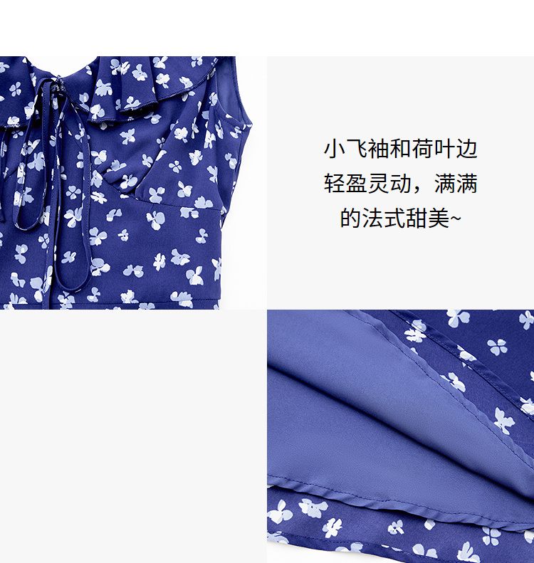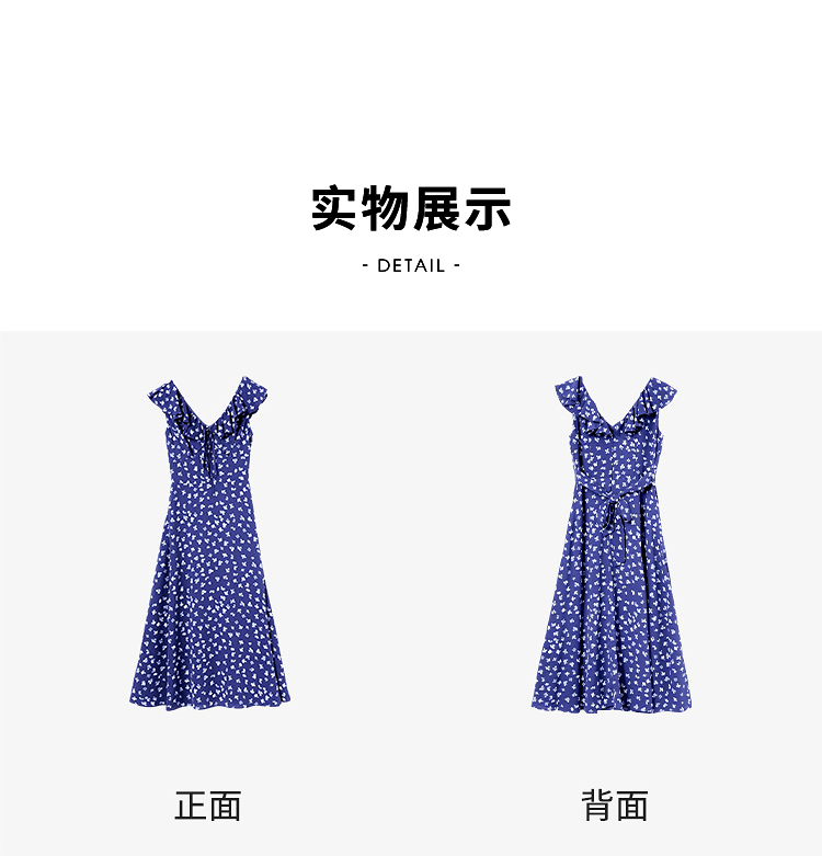 【限时秒杀】法式浪漫复古荷叶边V领碎花裙女春夏小飞袖收腰连衣裙V0950347
