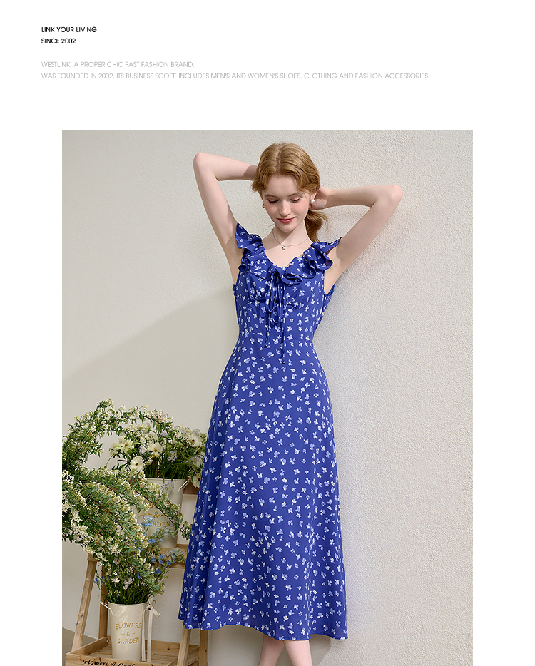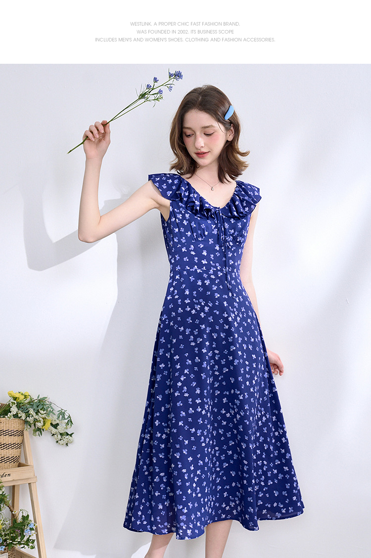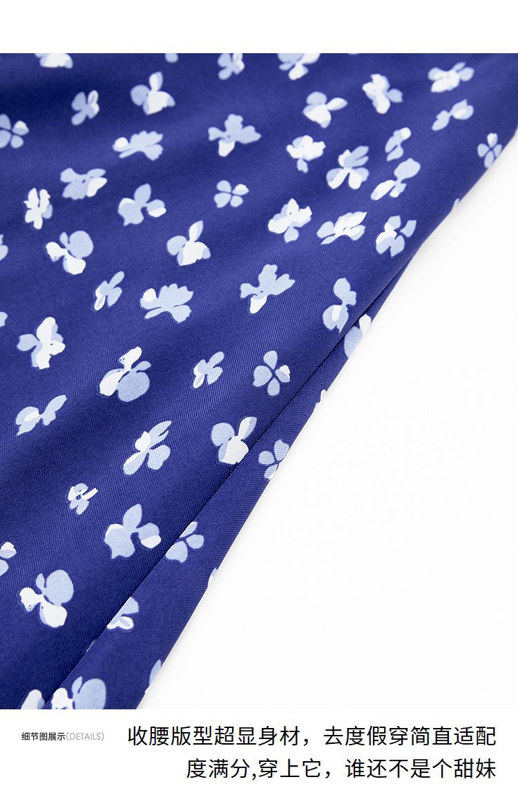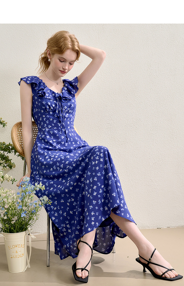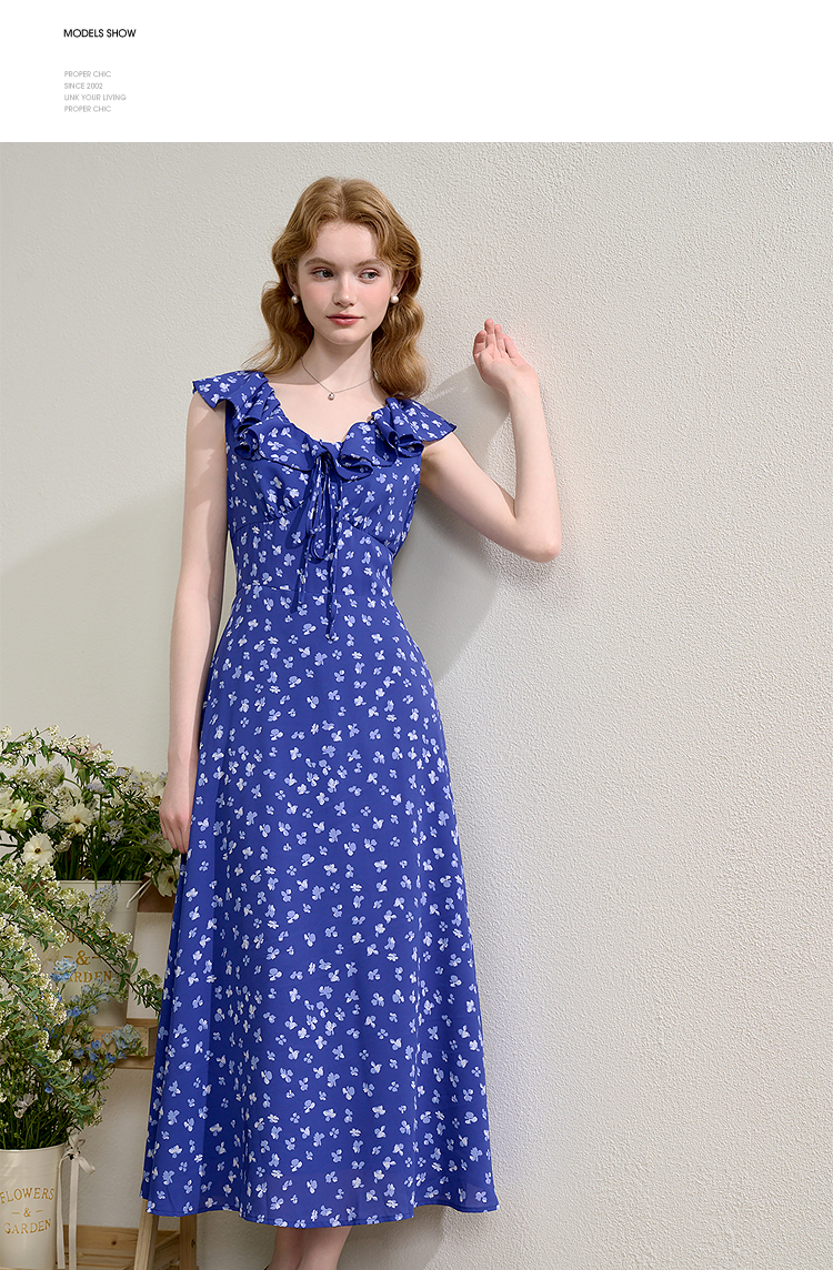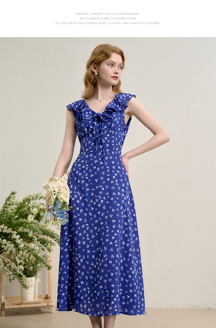 【限时秒杀】法式浪漫复古荷叶边V领碎花裙女春夏小飞袖收腰连衣裙V0950347