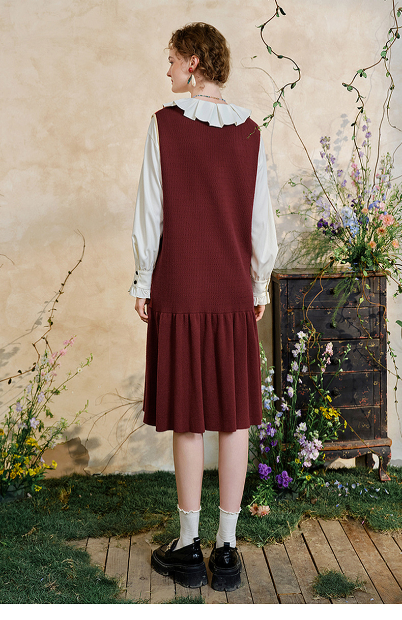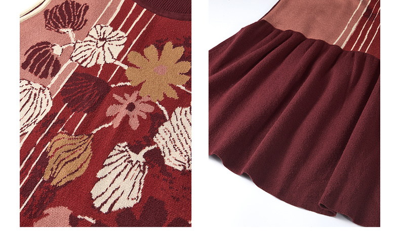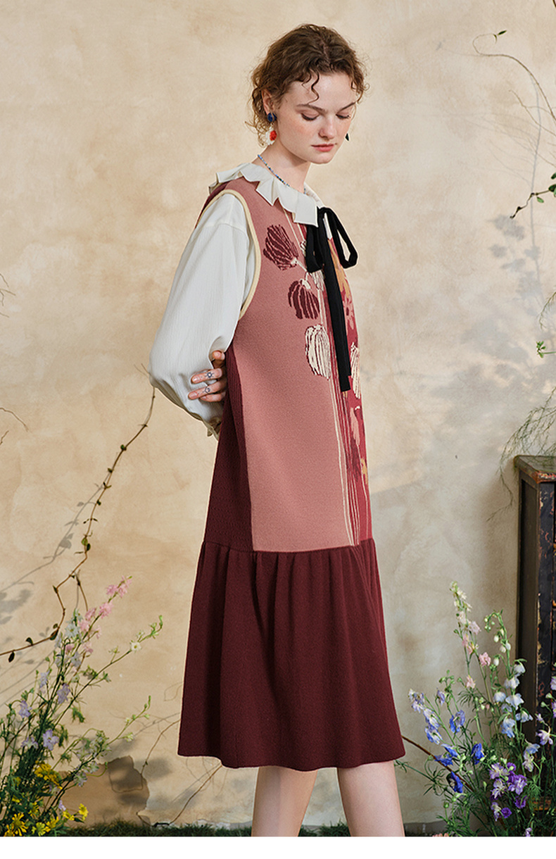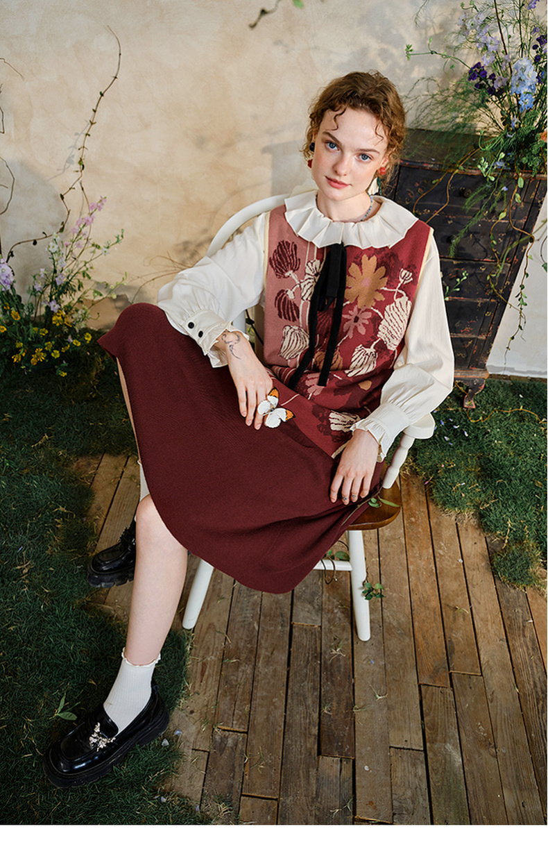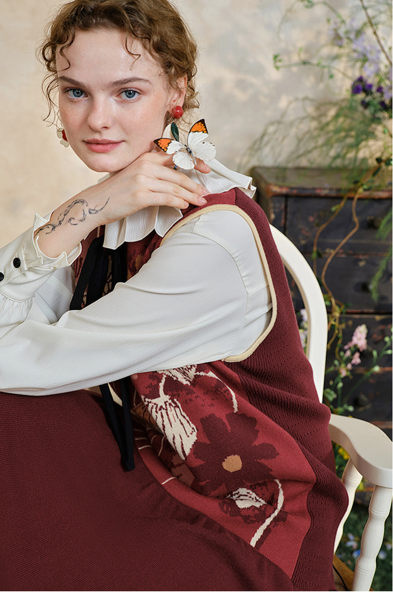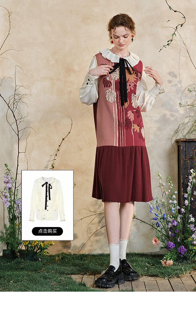 两三事 彼岸春诗 2025春季新款森女风花卉图案无袖毛衣裙连衣裙
