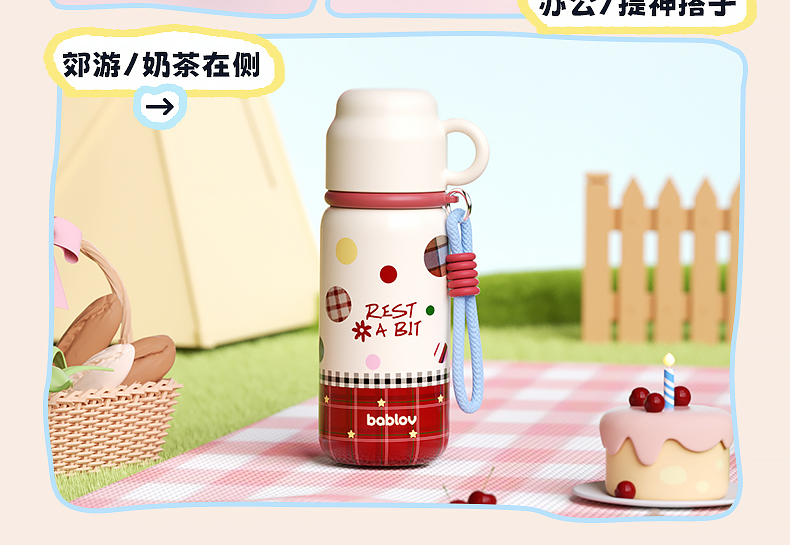 bablov保温杯大容量女生高颜值吸管水杯便携2025新款车载保冷杯子