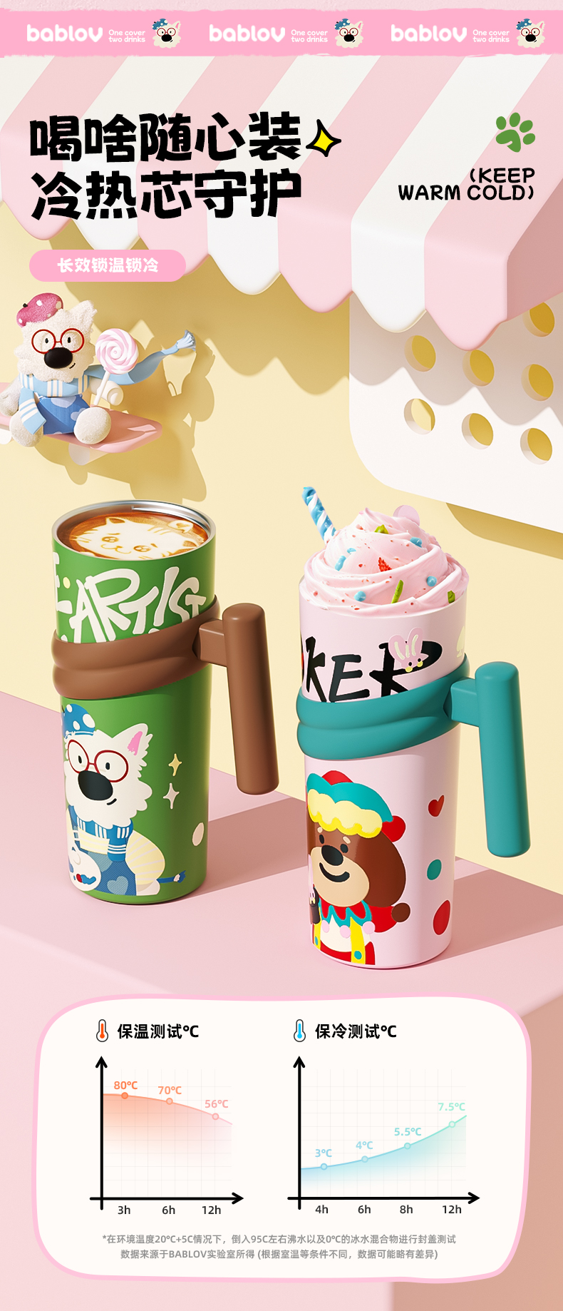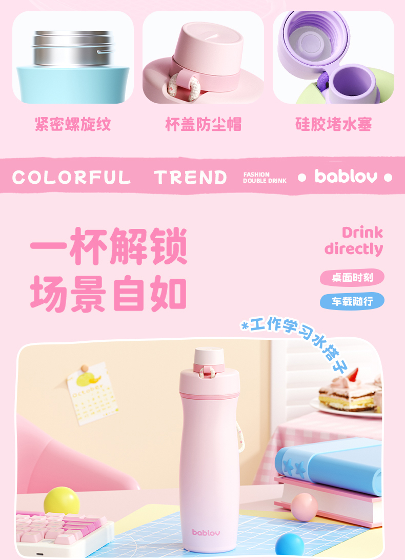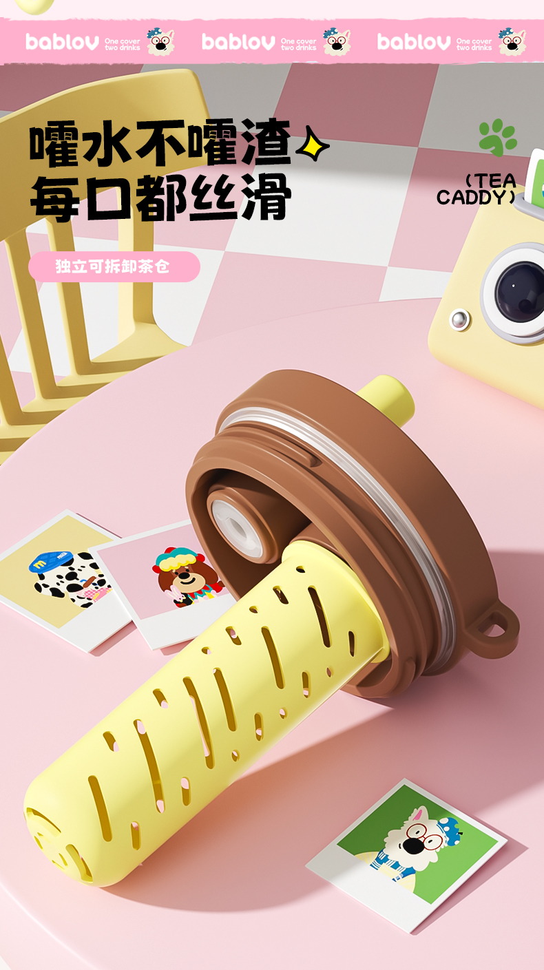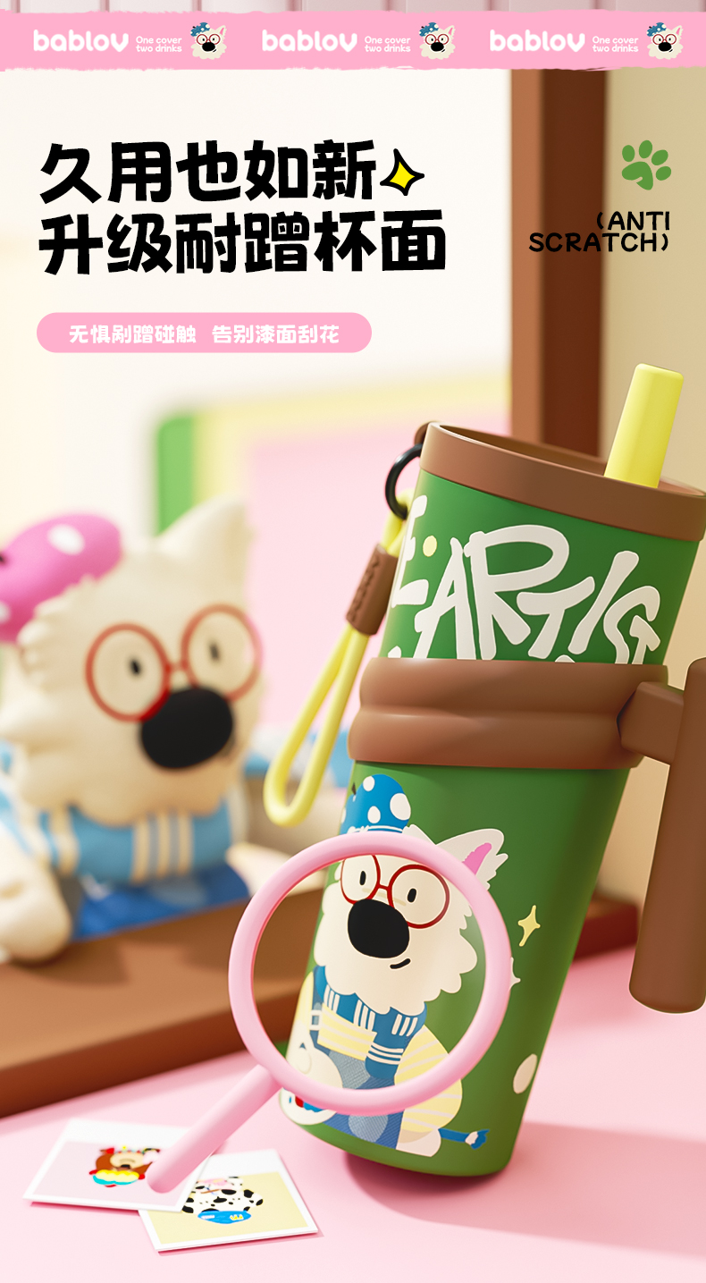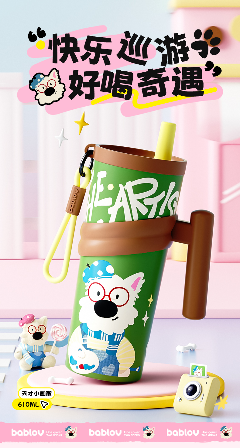 BABLOV关注中国人的饮水健康,更不断探索未知可能性,专注于新生代自我个性表达,创造玩味新潮的产品体系。希望将水杯带入Z世代年轻人的生活,传递更多“饮”响力。