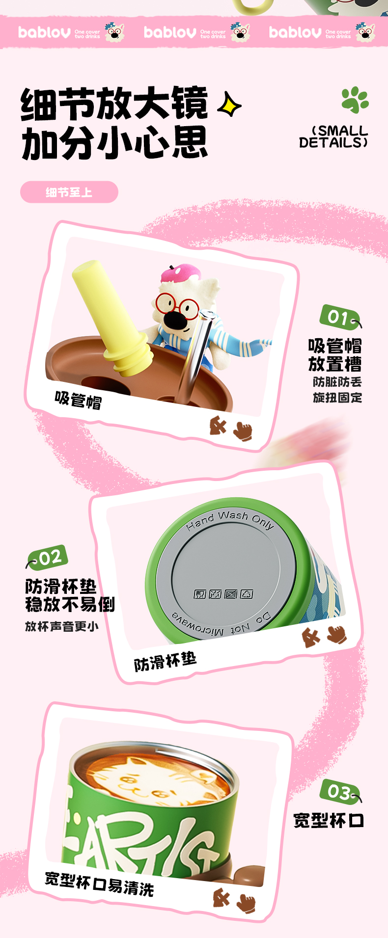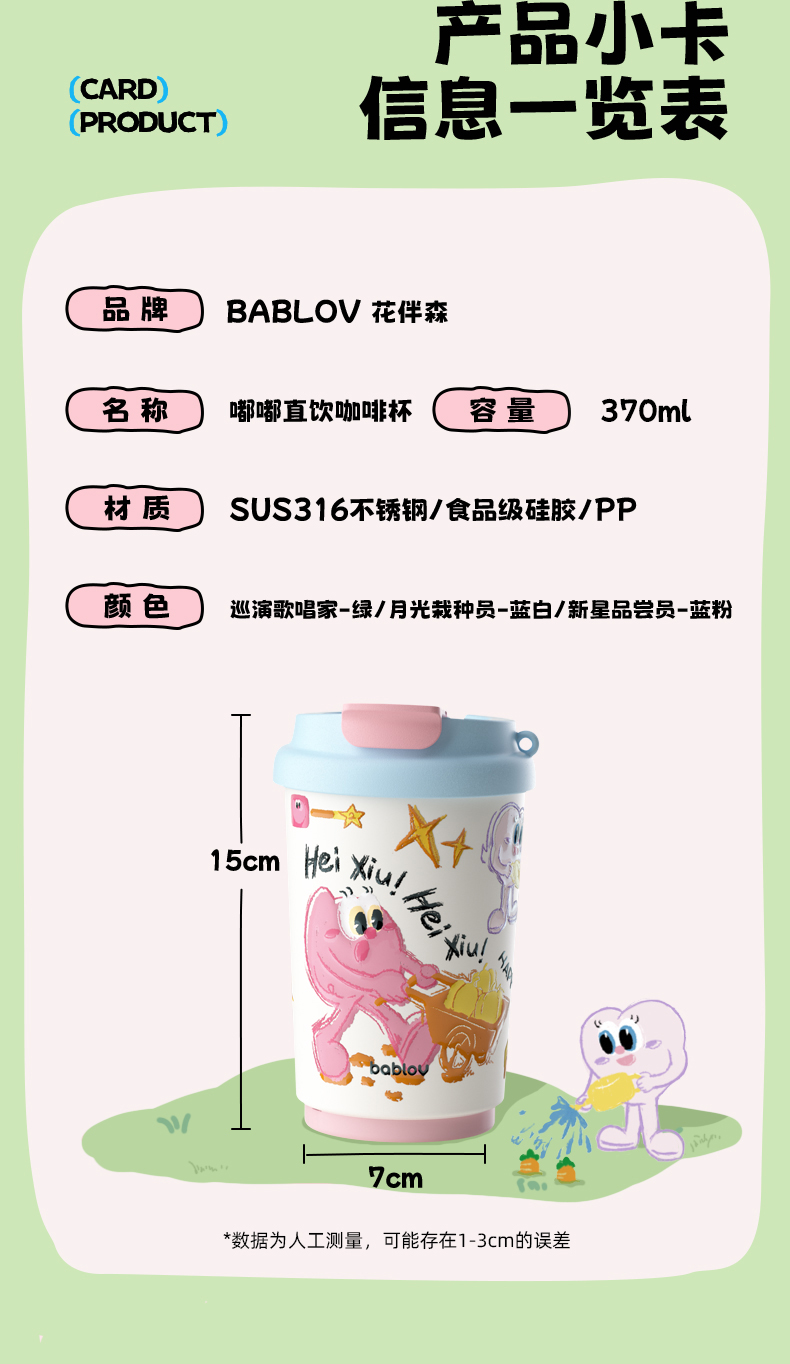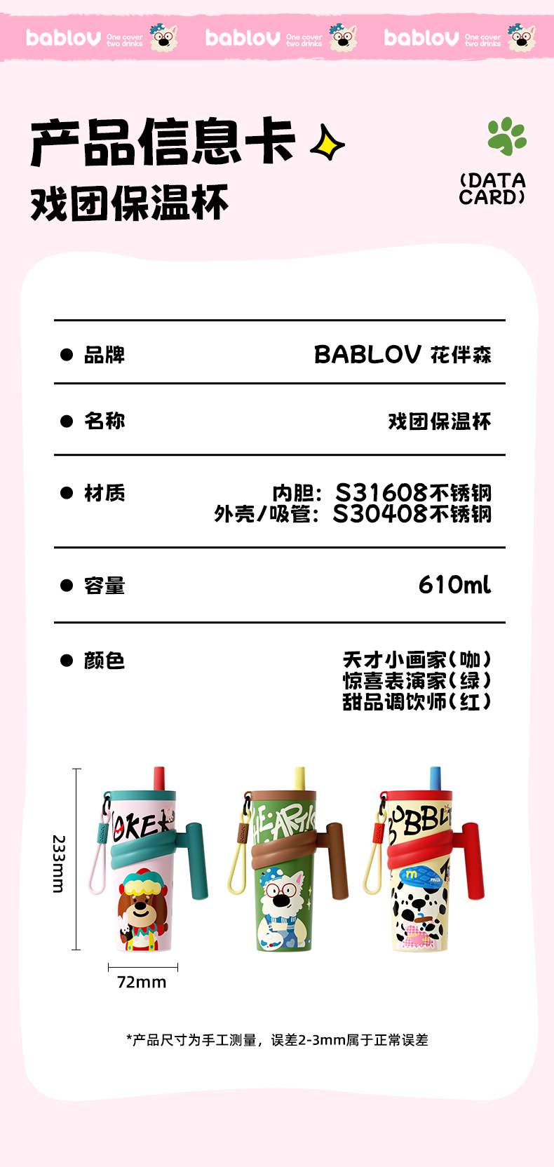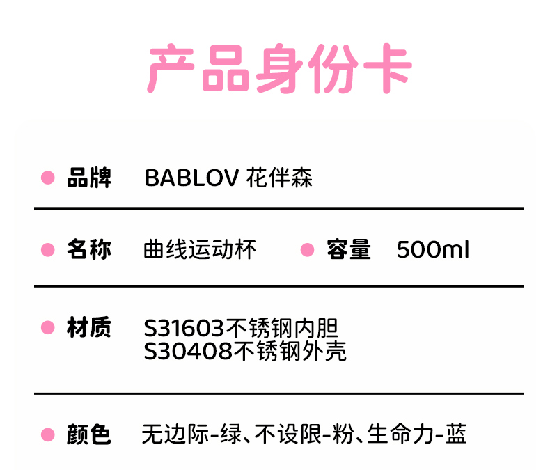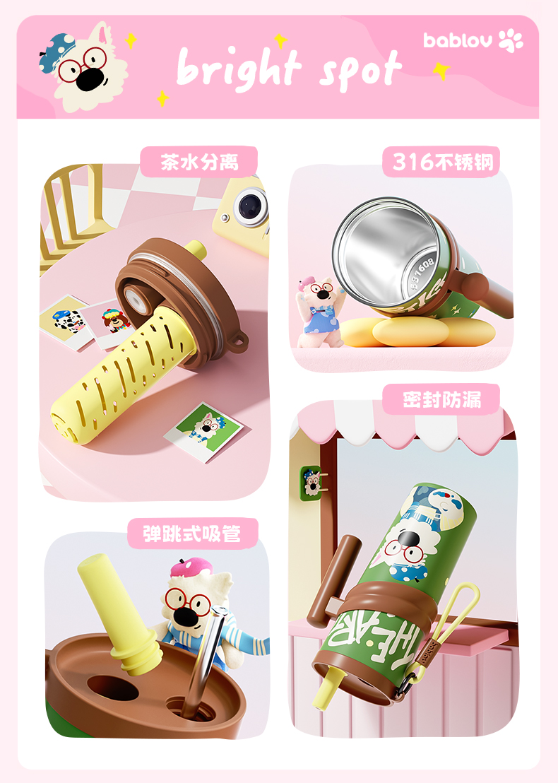 BABLOV关注中国人的饮水健康,更不断探索未知可能性,专注于新生代自我个性表达,创造玩味新潮的产品体系。希望将水杯带入Z世代年轻人的生活,传递更多“饮”响力。