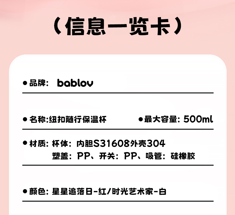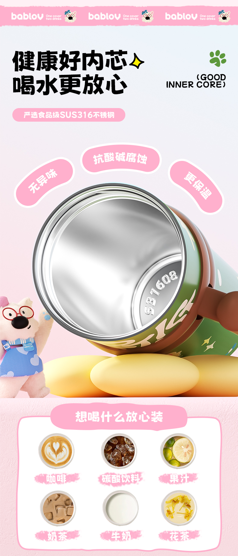 bablov保温杯316不锈钢男生女生高颜值保温杯