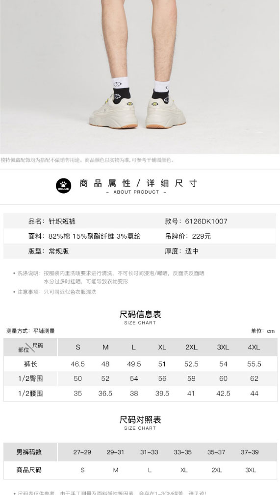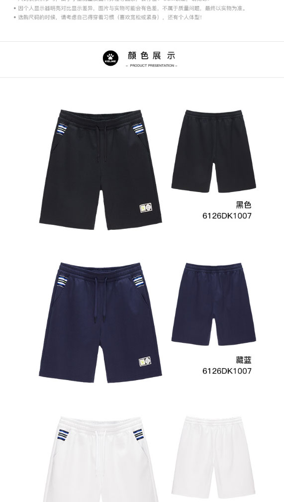 KELME卡尔美短裤男春夏季运动休闲系带五分裤棉透气百搭男裤6126DK1007