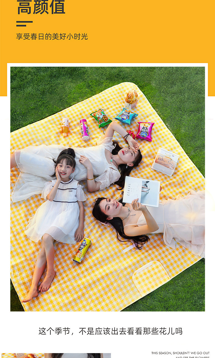 格子野餐垫春游野炊沙滩露营野餐垫布艺加厚防水防潮户外野餐垫防水防潮隔脏便携春游地垫ins风野餐布露营垫子野炊郊