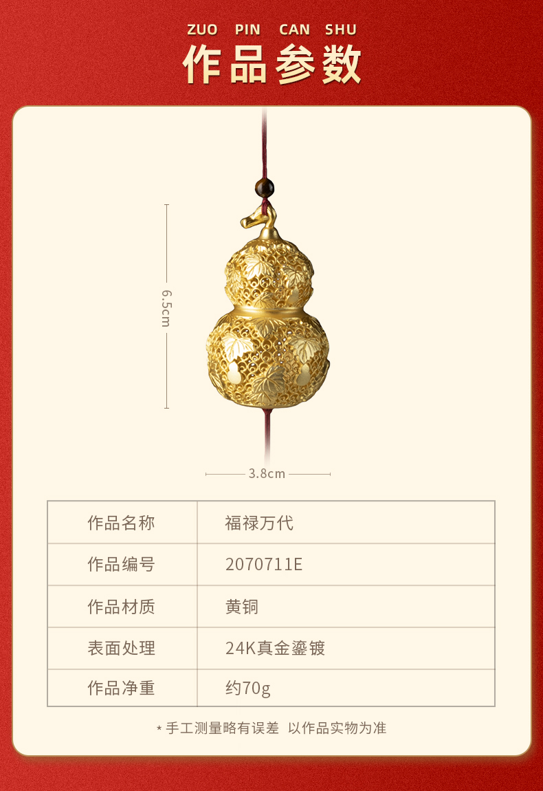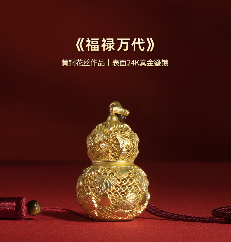 铜师傅《福禄万代》客厅桌面花丝铜葫芦摆件 装饰品 教师节礼物
