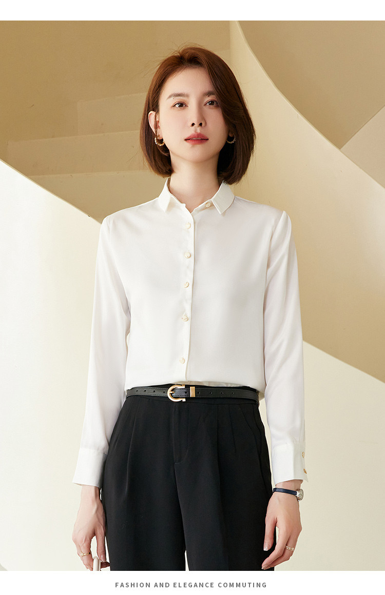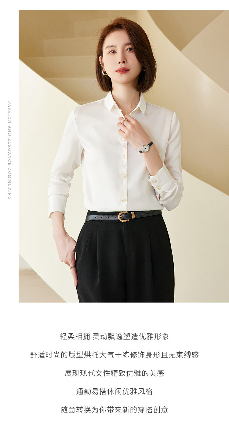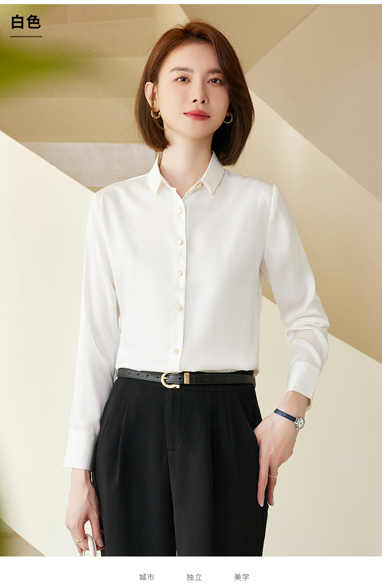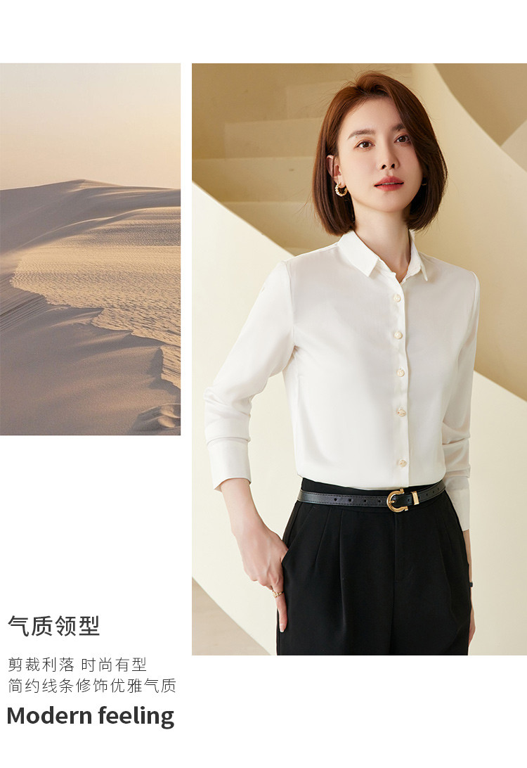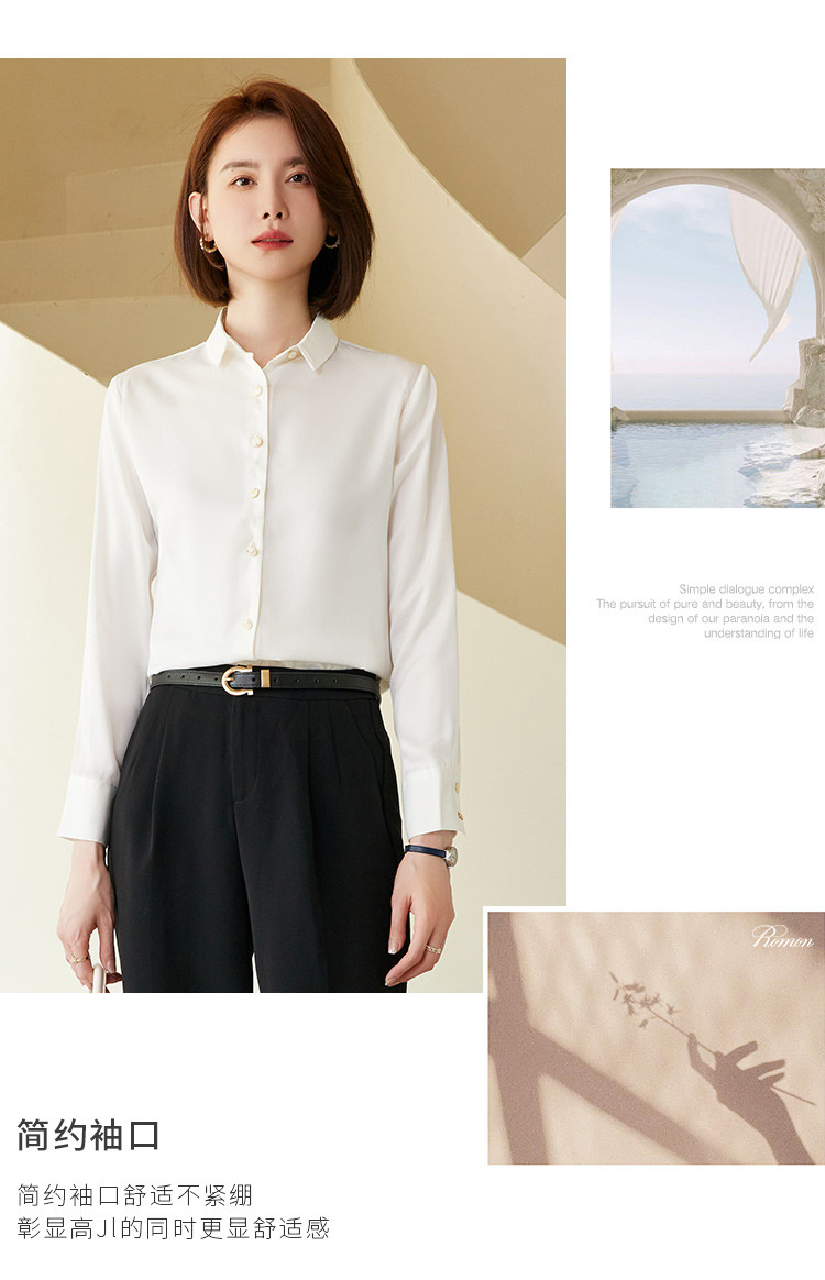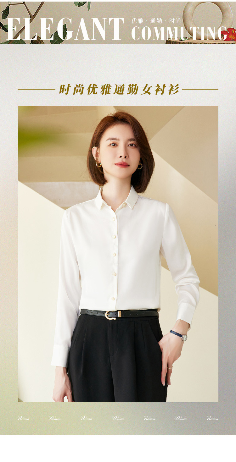 罗蒙春夏女士长袖衬衫经典小方领商务通勤职业OL休闲百搭衬衫女