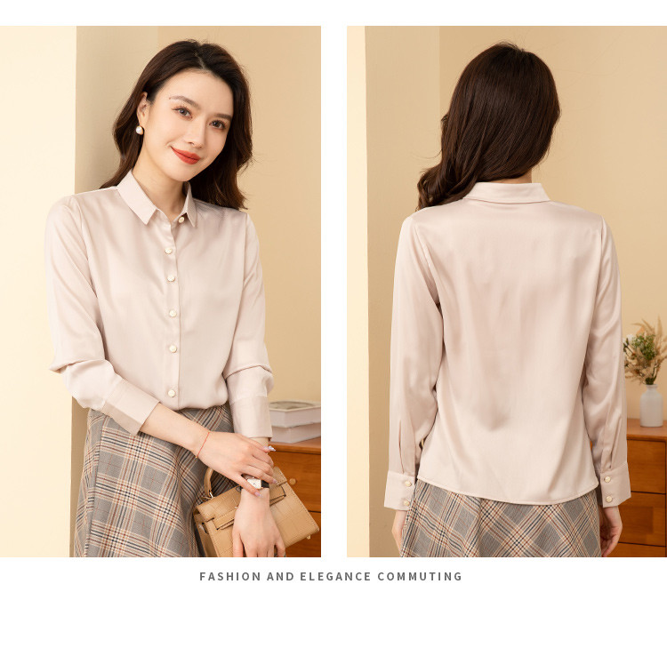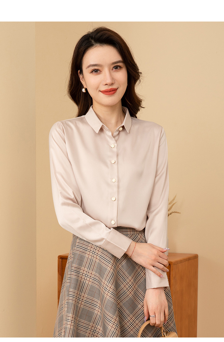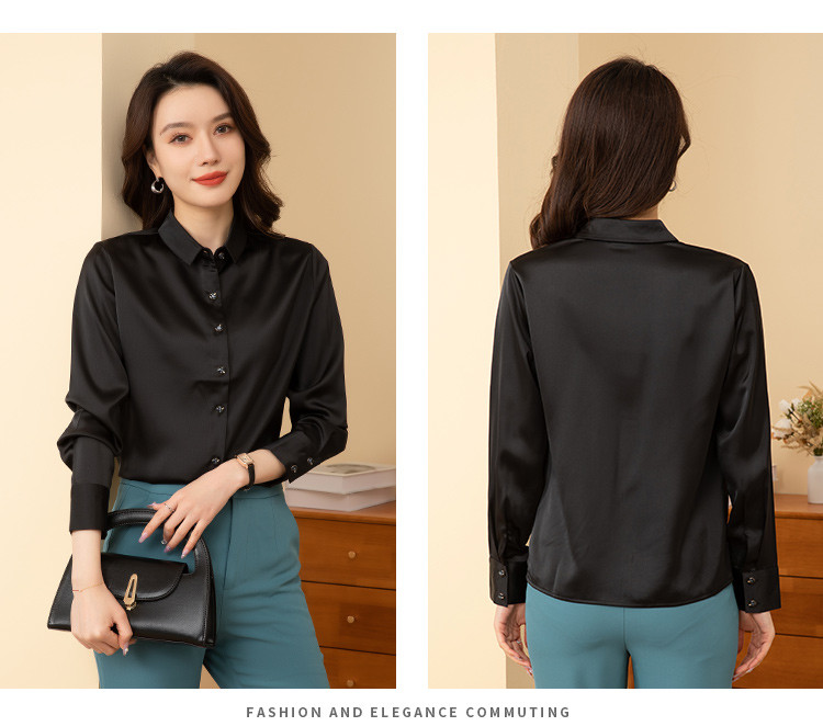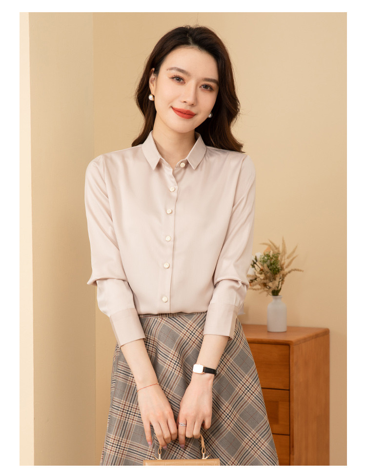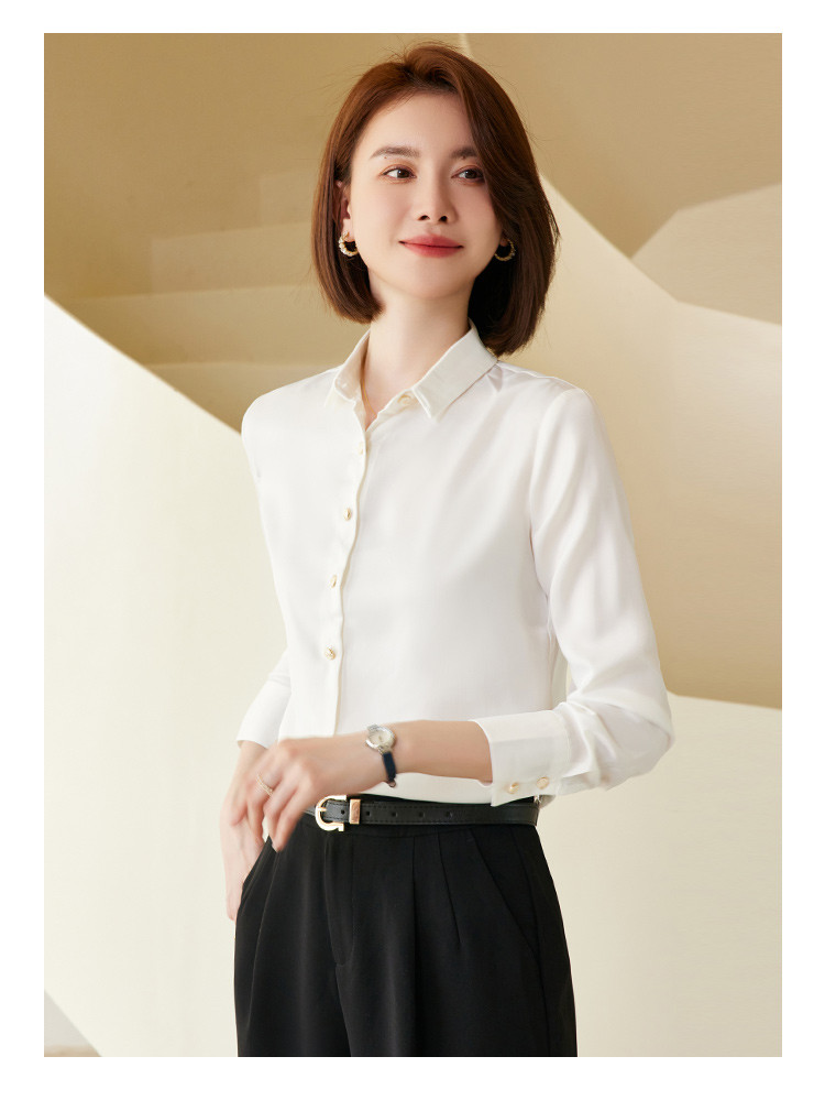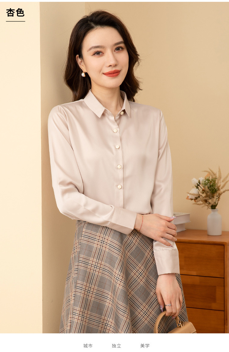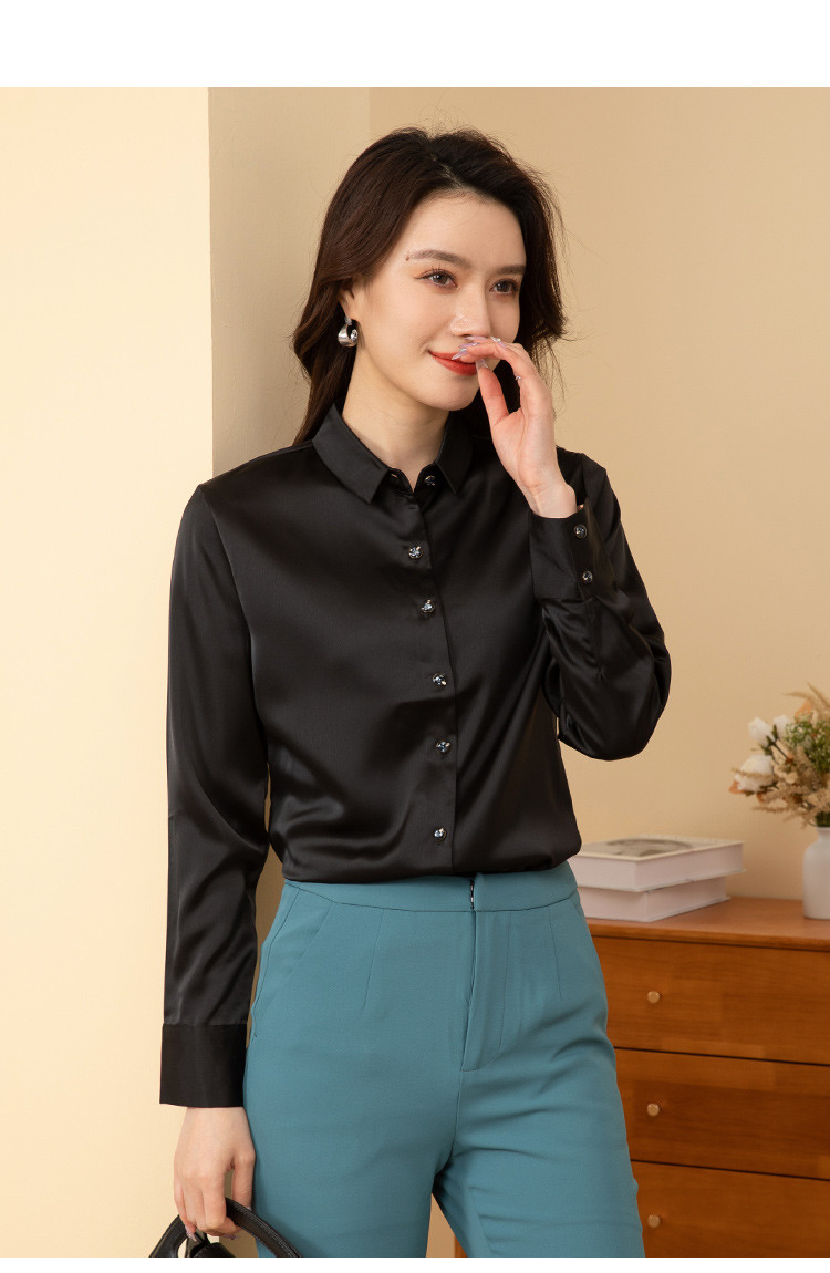 罗蒙春夏女士长袖衬衫经典小方领商务通勤职业OL休闲百搭衬衫女