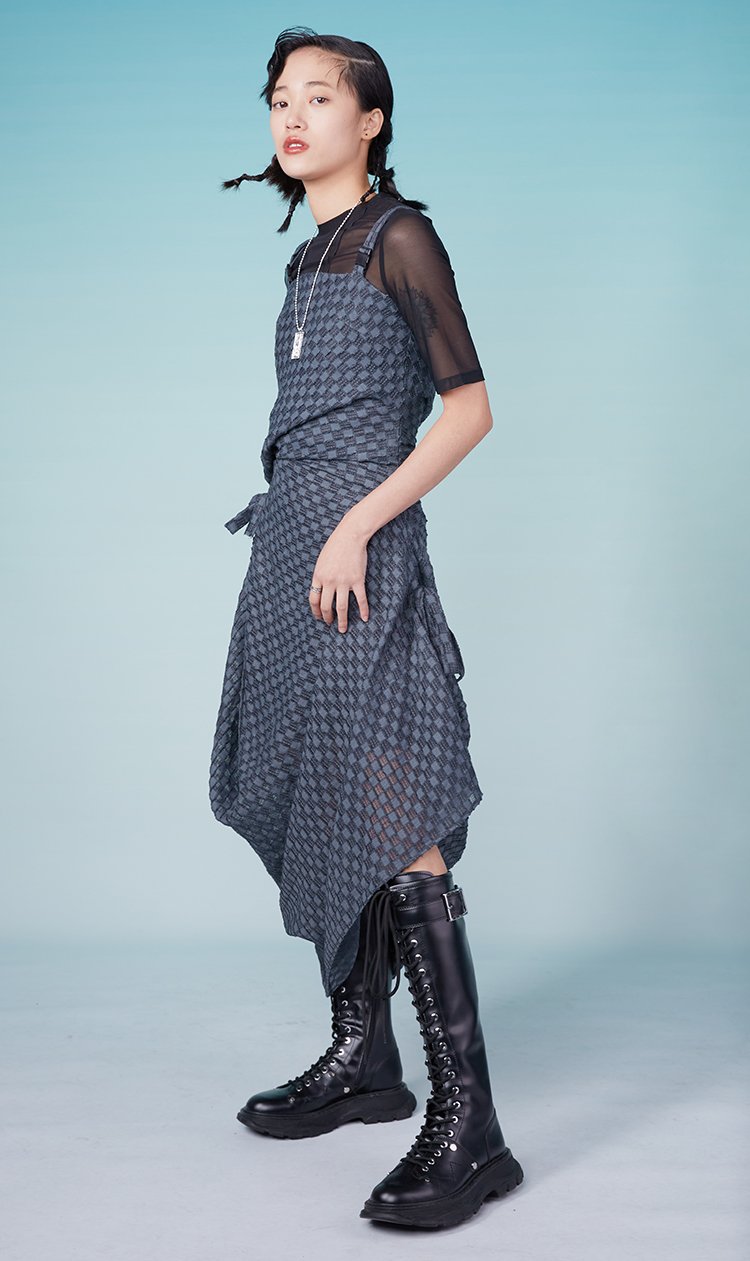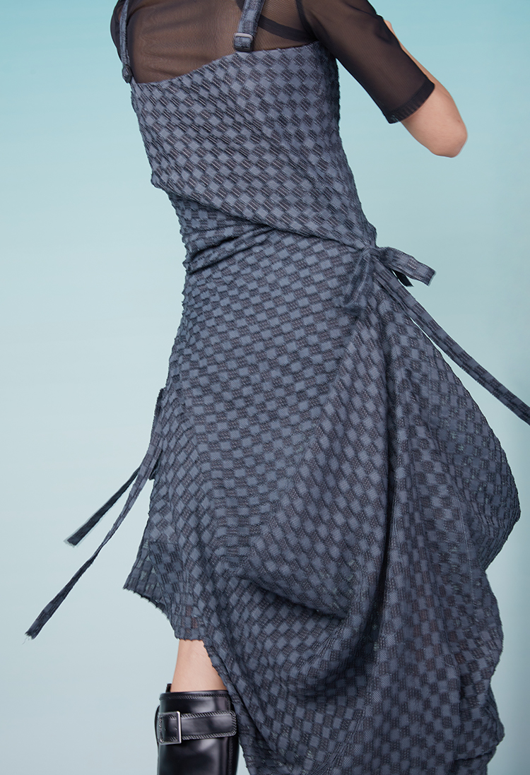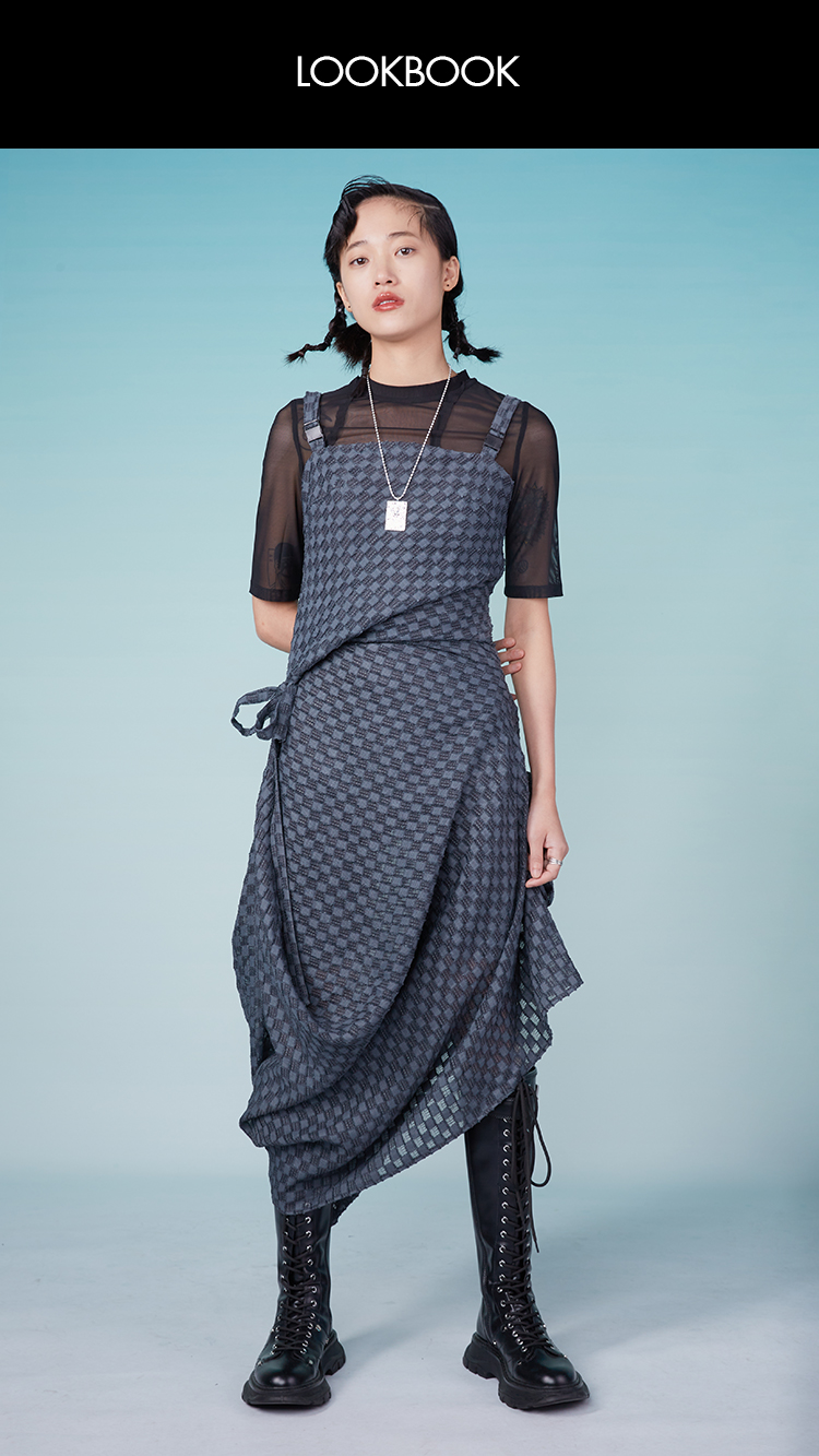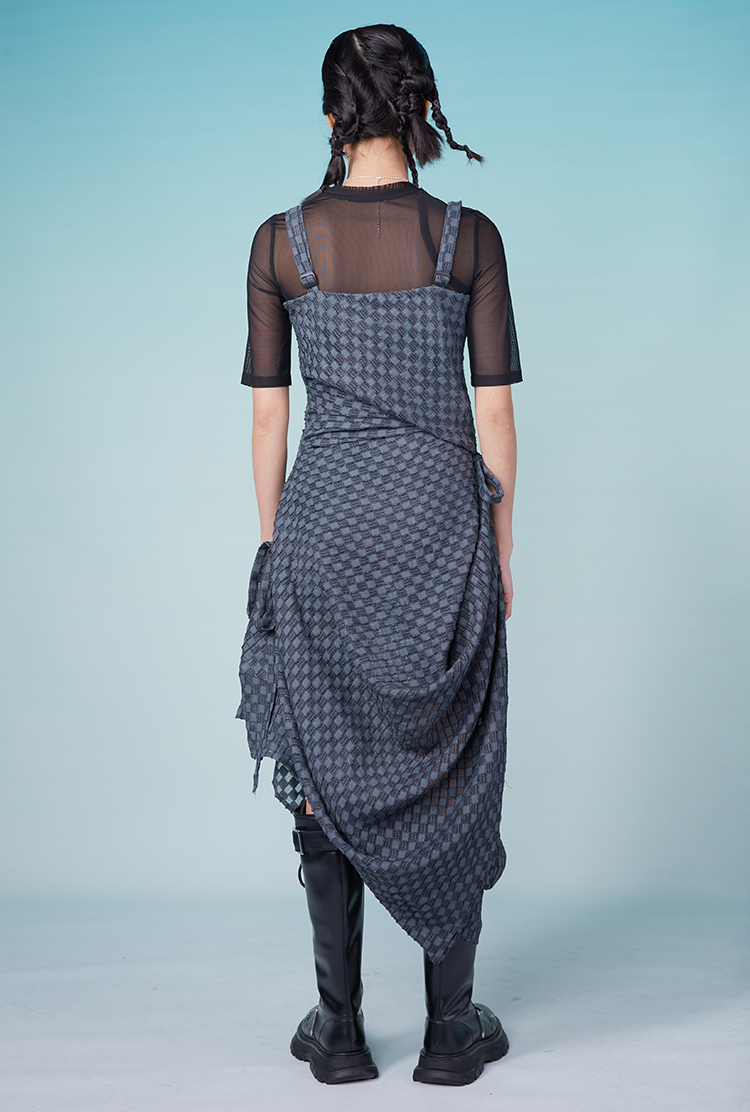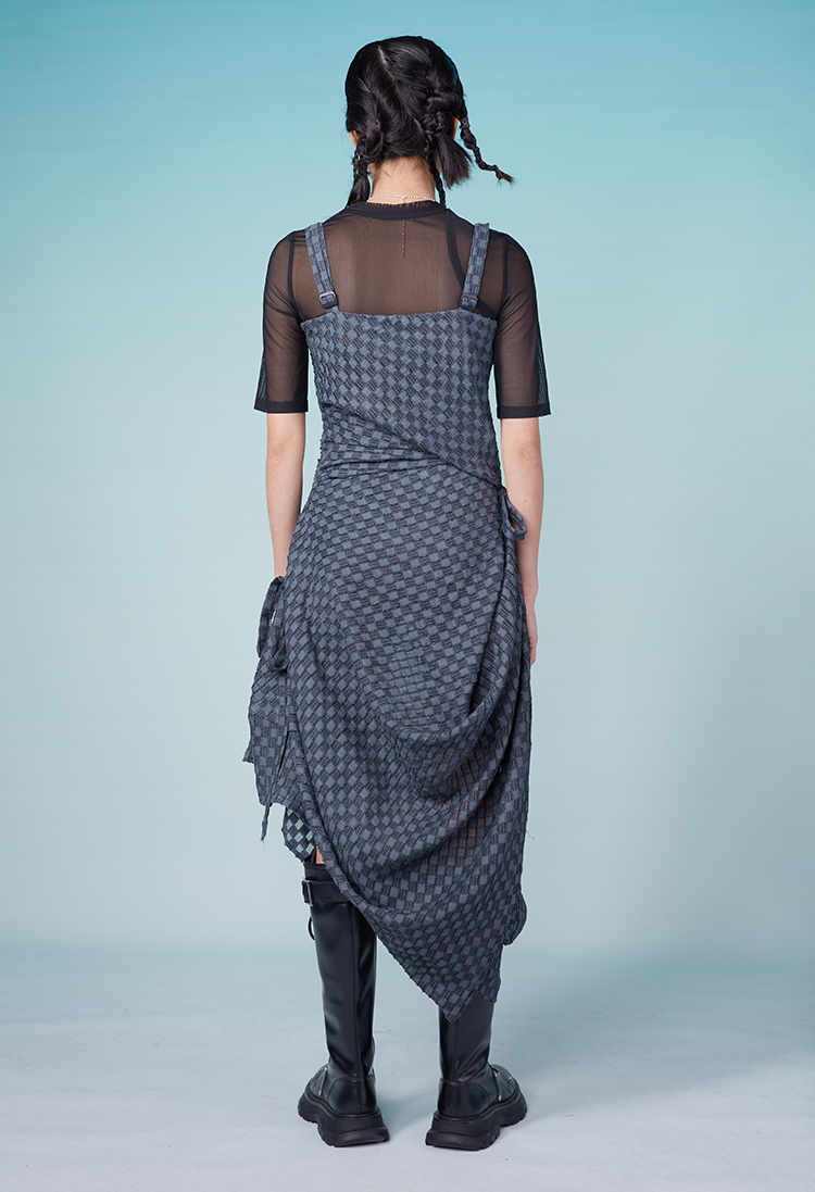 HOLONOMIC 原创特殊肌理格子不规则设计感小众吊带连衣裙