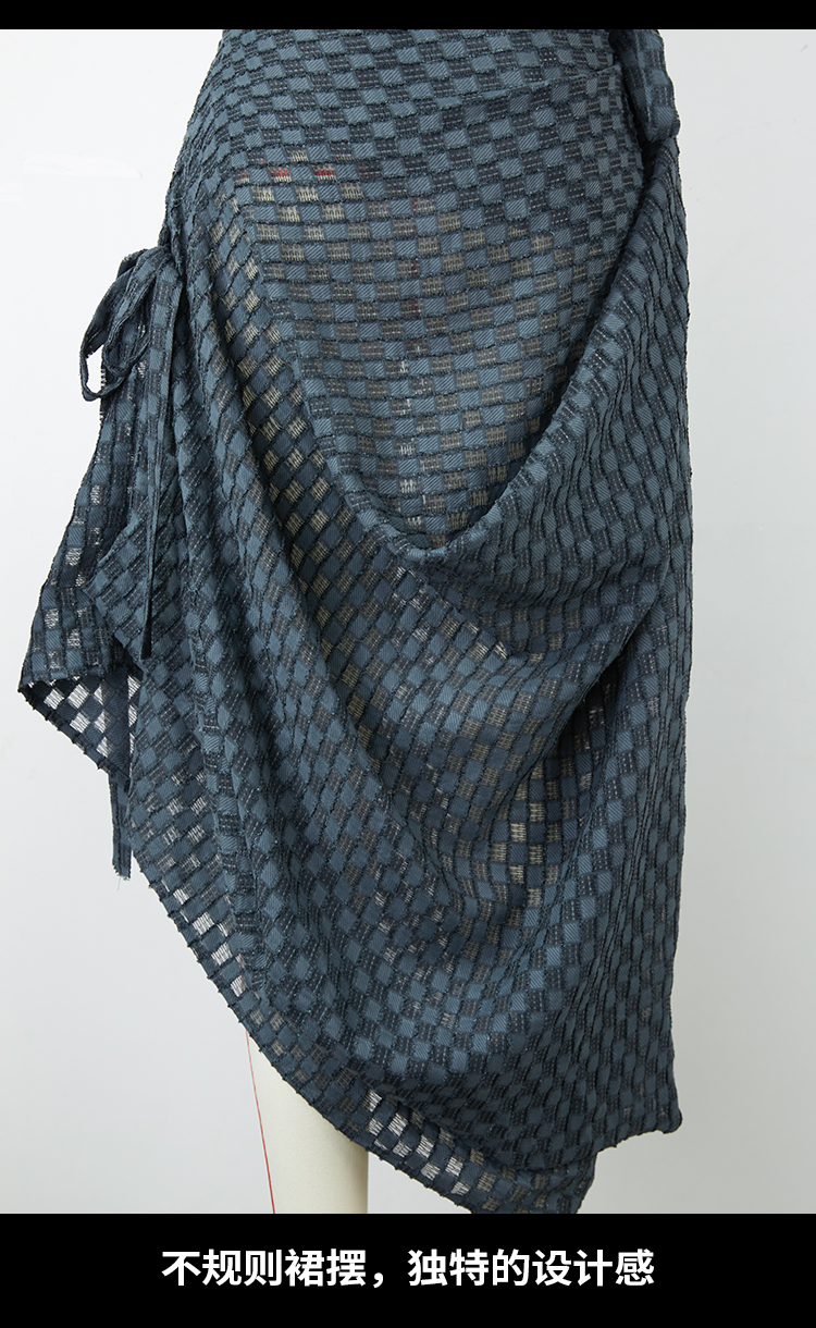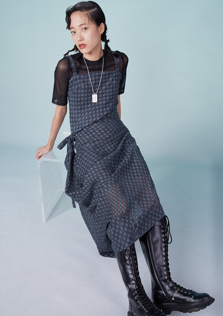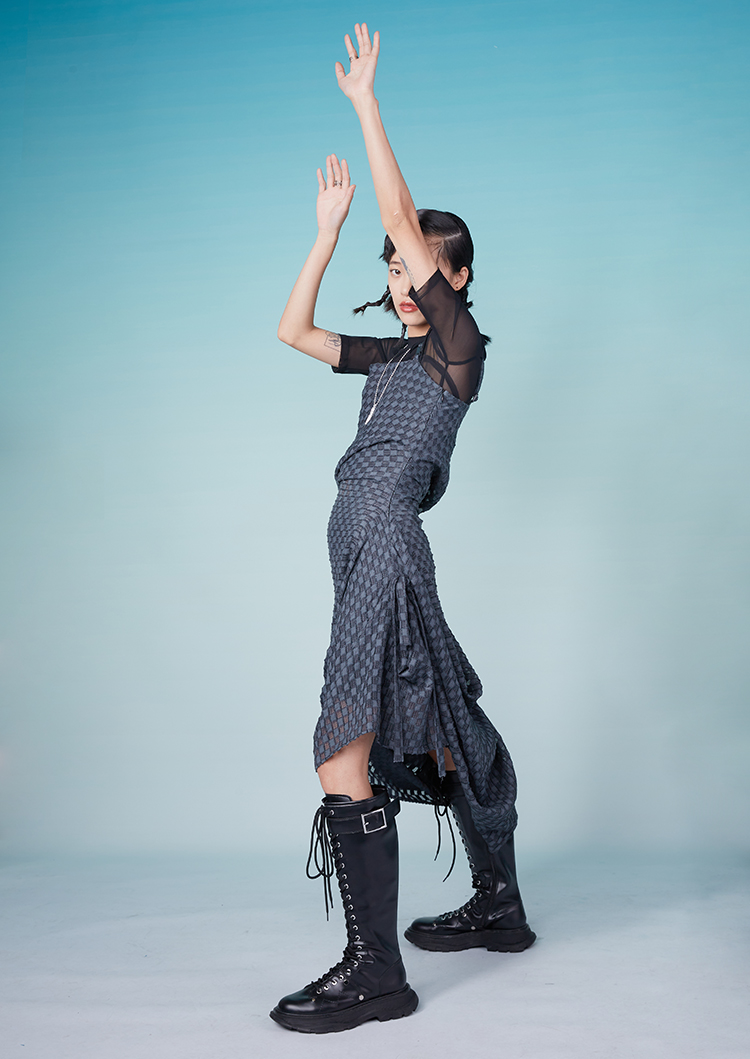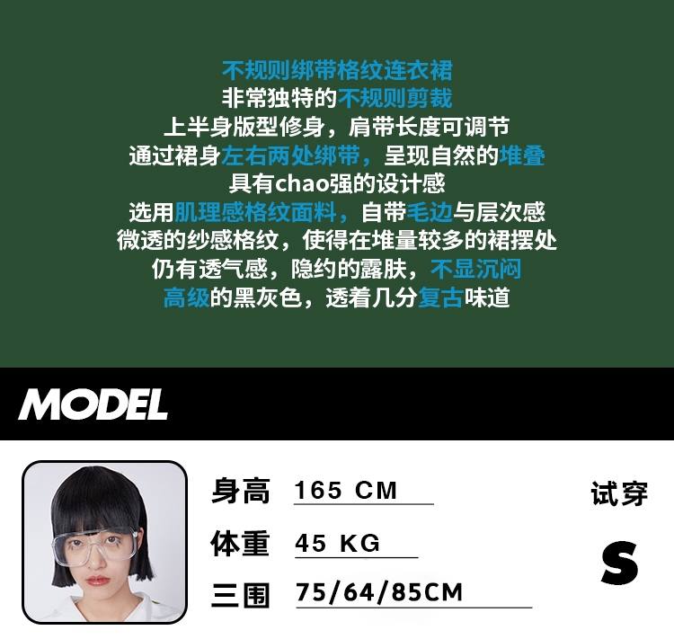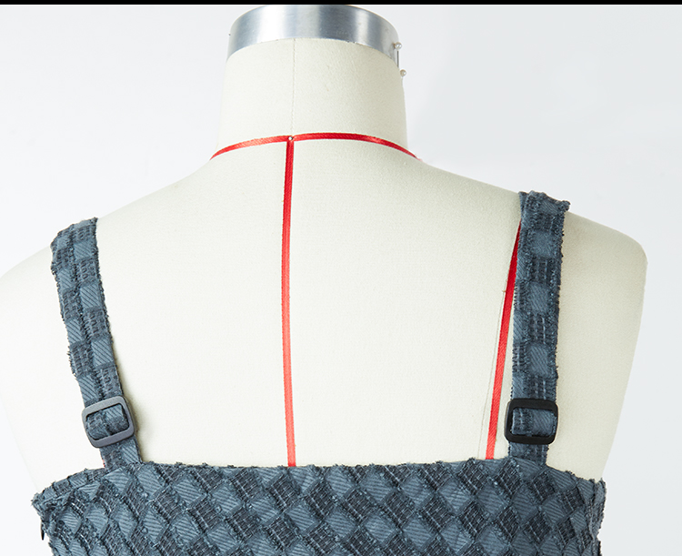 HOLONOMIC 原创特殊肌理格子不规则设计感小众吊带连衣裙