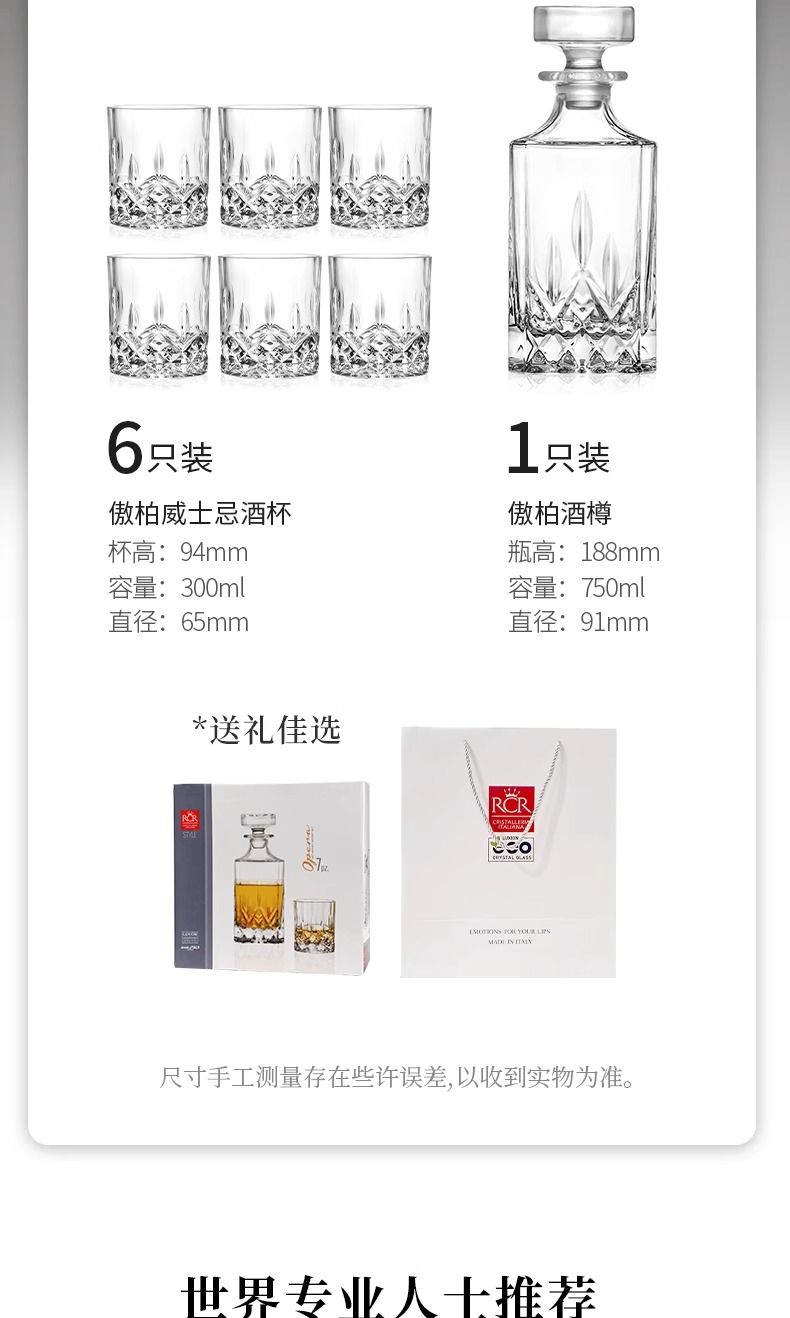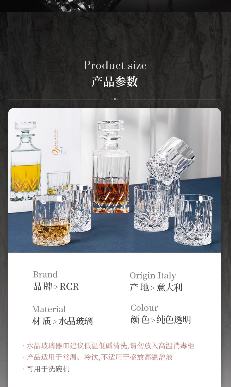 RCR意大利进口水晶玻璃威士忌酒杯酒樽套装酒具轻奢ins用傲柏威士忌酒具1壶6杯