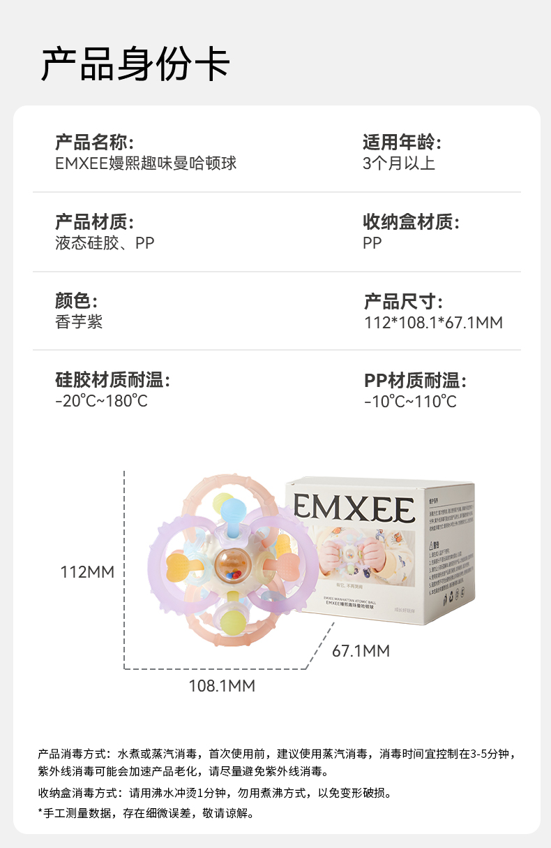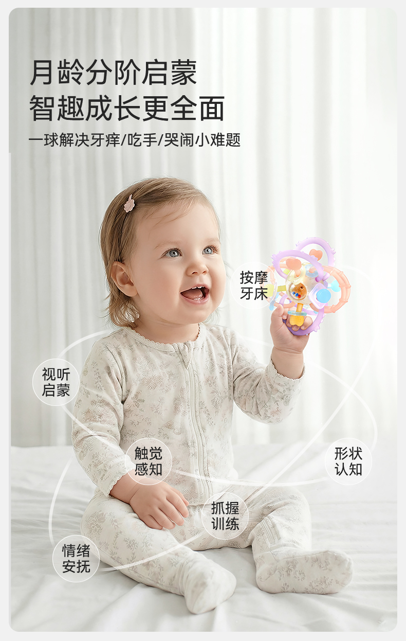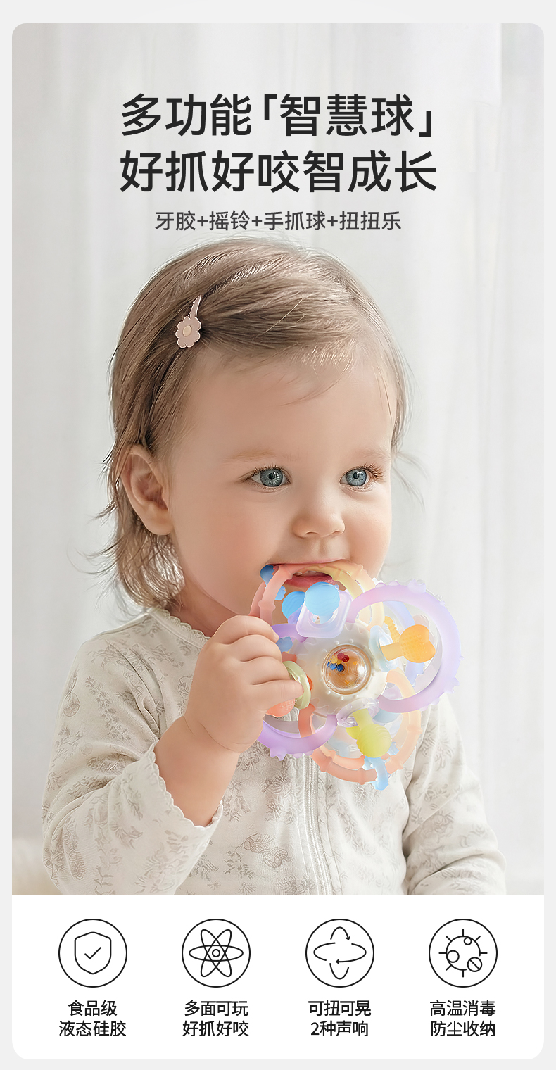 【安抚玩乐】嫚熙曼哈顿手抓球牙胶婴幼儿防吃手神器咬胶小月龄宝宝可磨牙玩具
