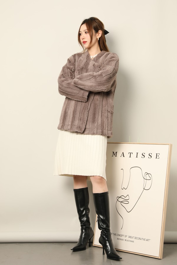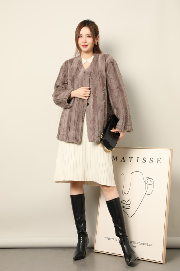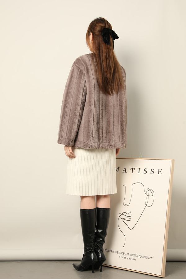 SIA SAYLOR 灰咖色毛绒条纹外套 17793