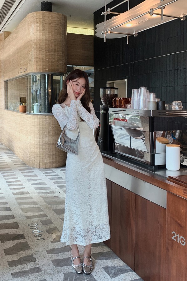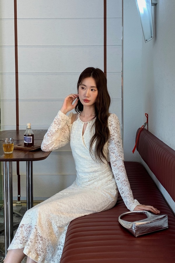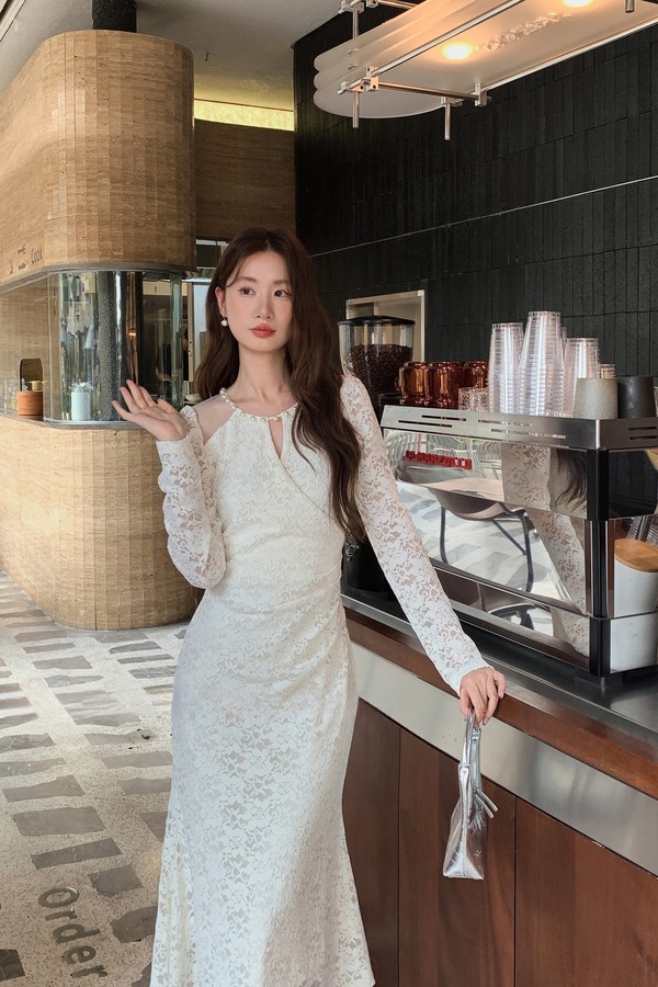 SIA SAYLOR 高端轻奢优雅珍珠领镂空蕾丝连衣裙 21493