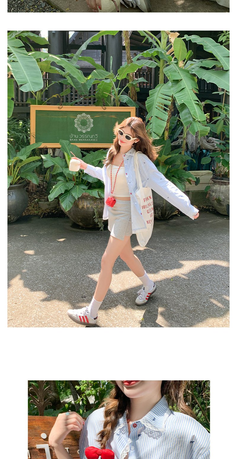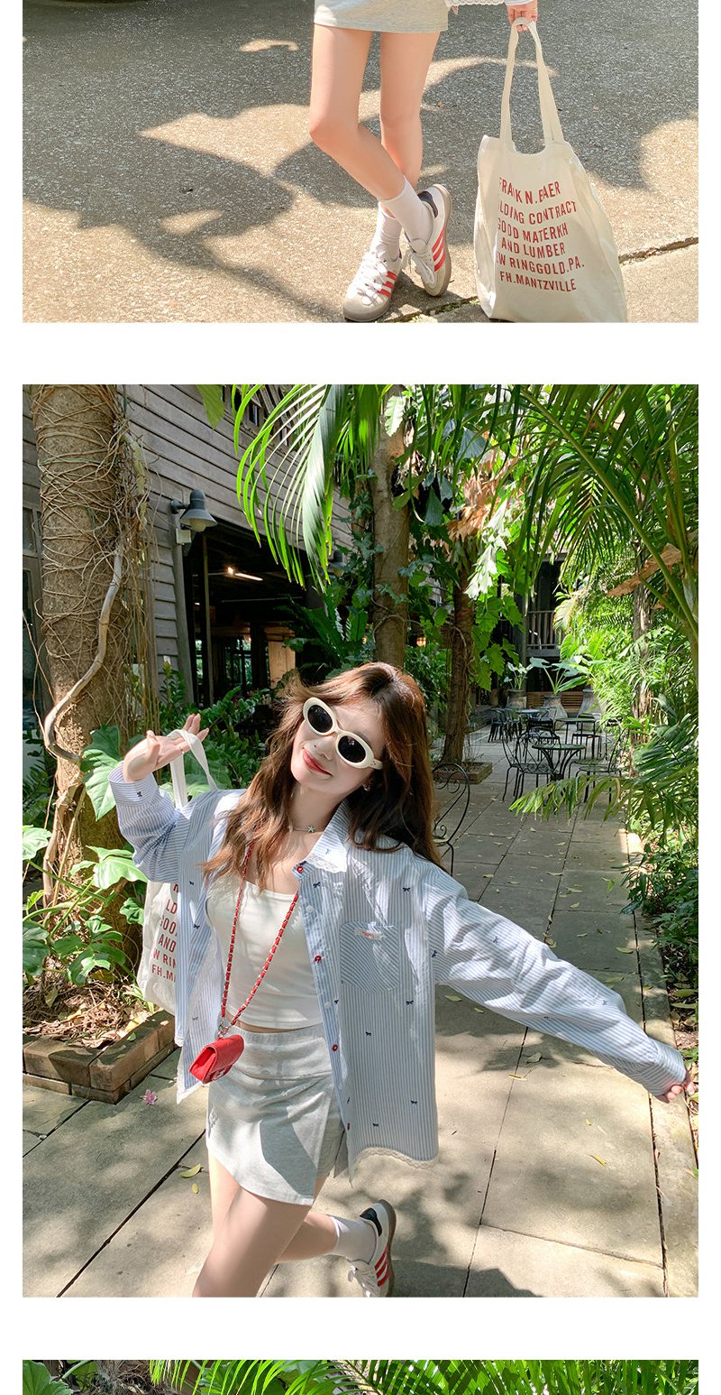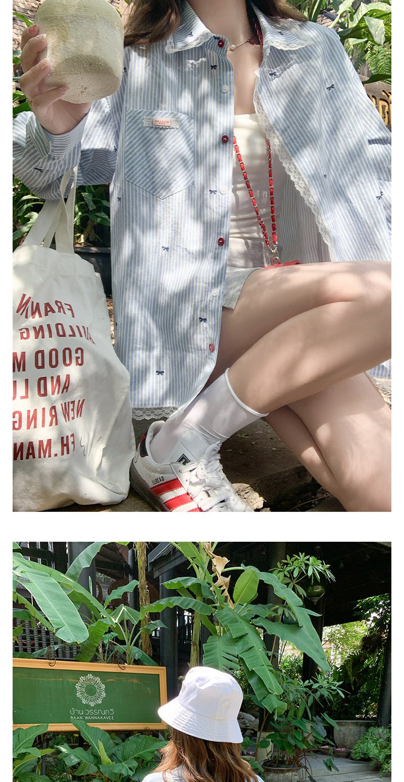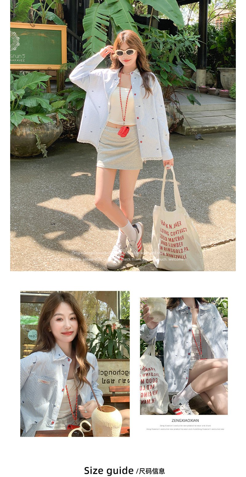 <曾小咸推荐>韩系蝴蝶结绣花防晒衬衫女