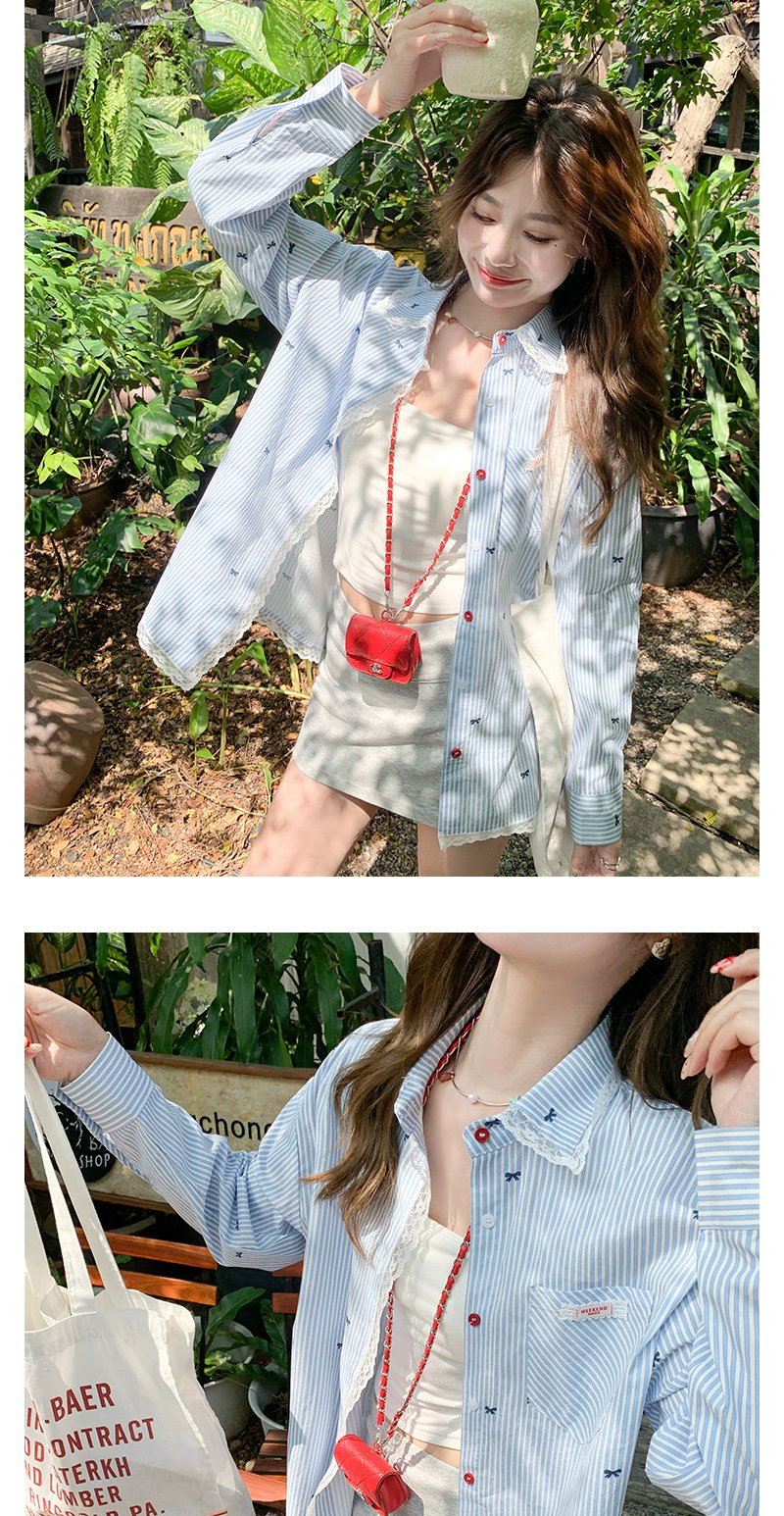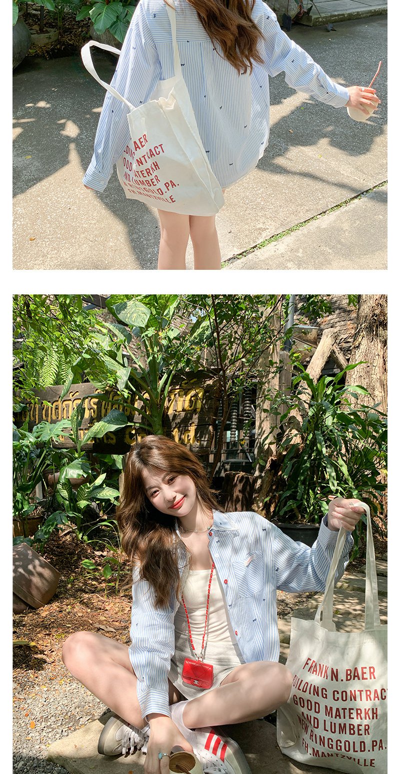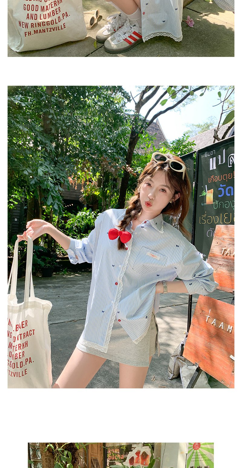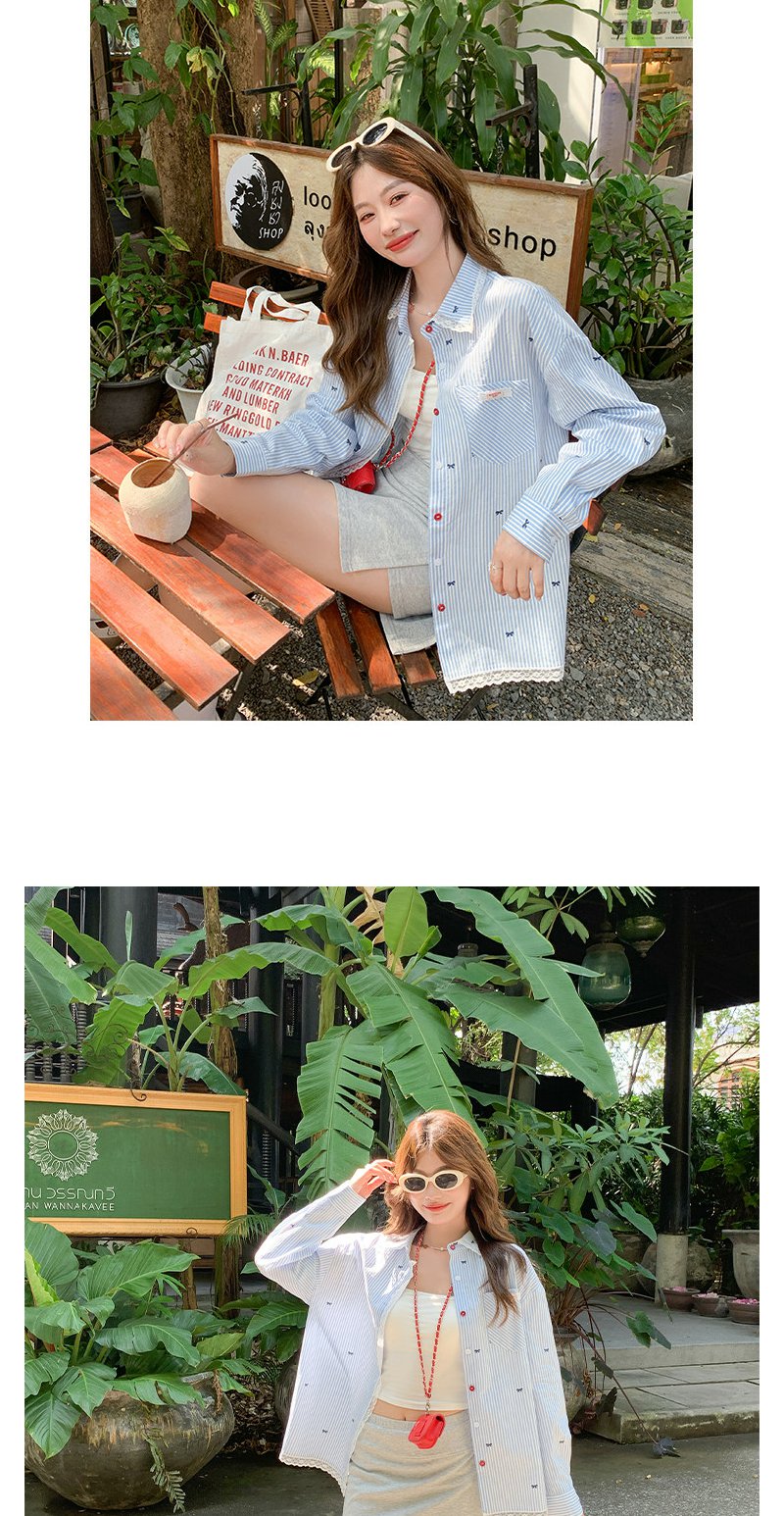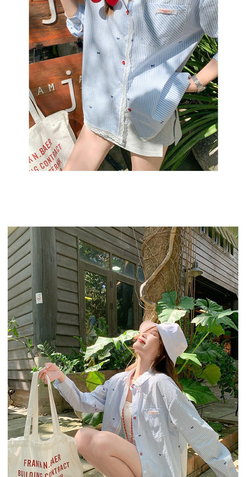 <曾小咸推荐>韩系蝴蝶结绣花防晒衬衫女