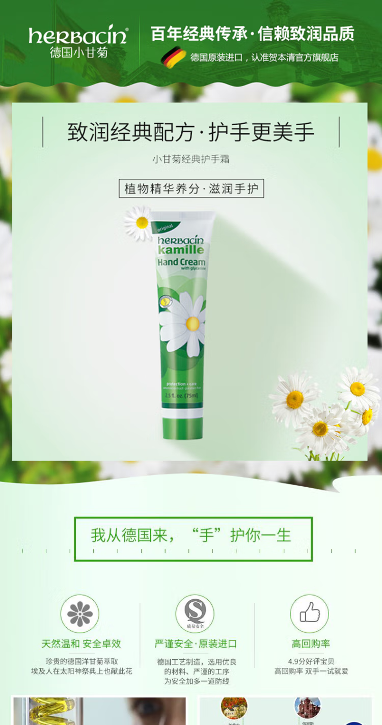 HERBACIN 贺本清 小甘菊经典护手霜 75ml【安琪全球购.保税仓直发】