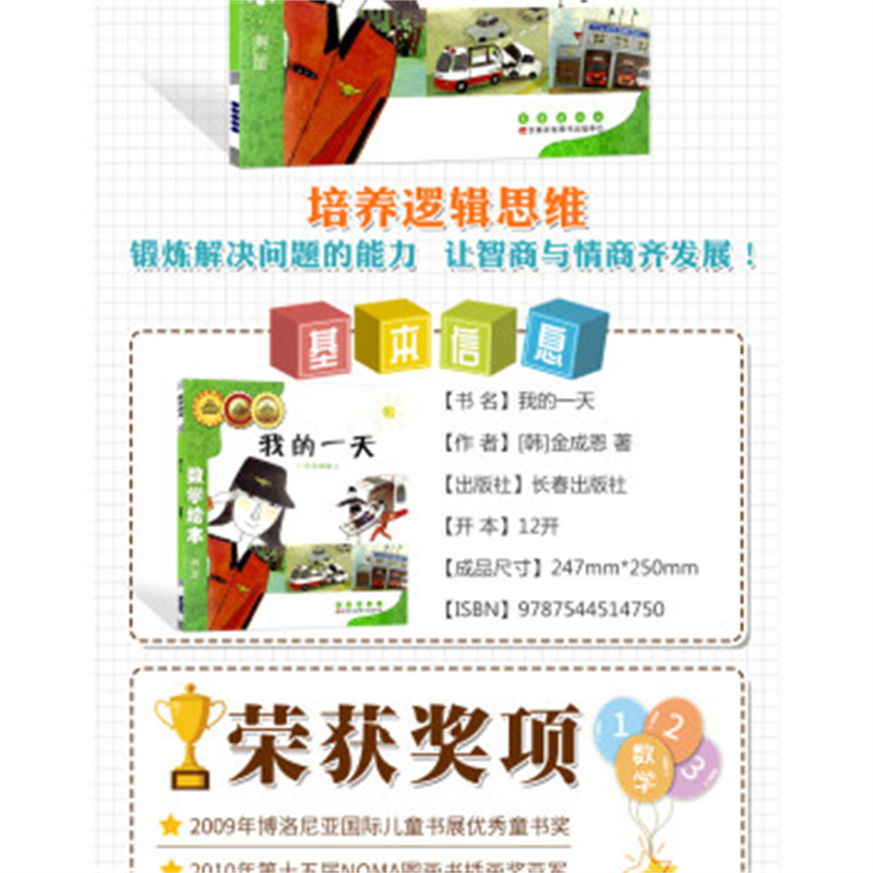 我的一天 小学生一二年级数学故事书幼儿启蒙故事书幼儿园大班3-5-6岁亲子读物数学绘本