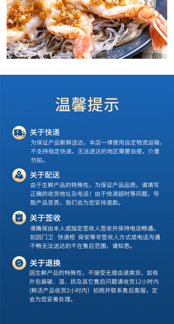 6.大虾都是机器分拣,不可能全部都一般大小,介意勿拍,不在理赔范围之内