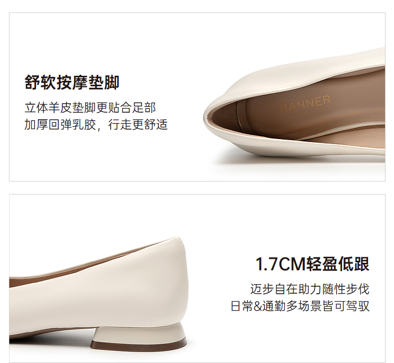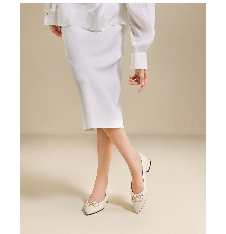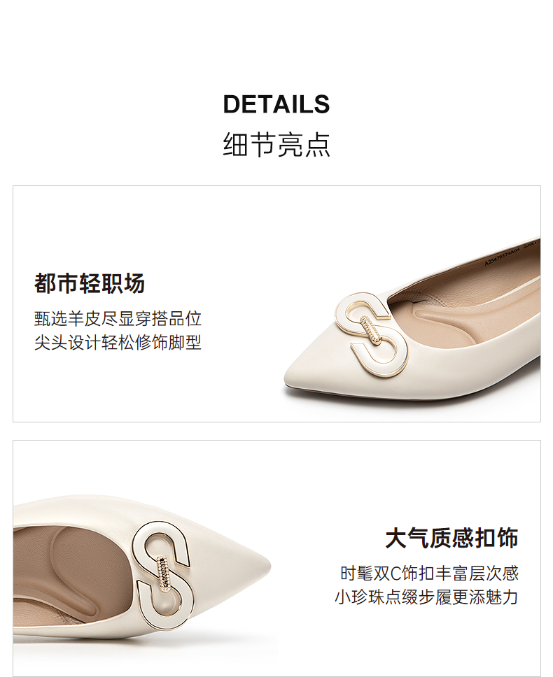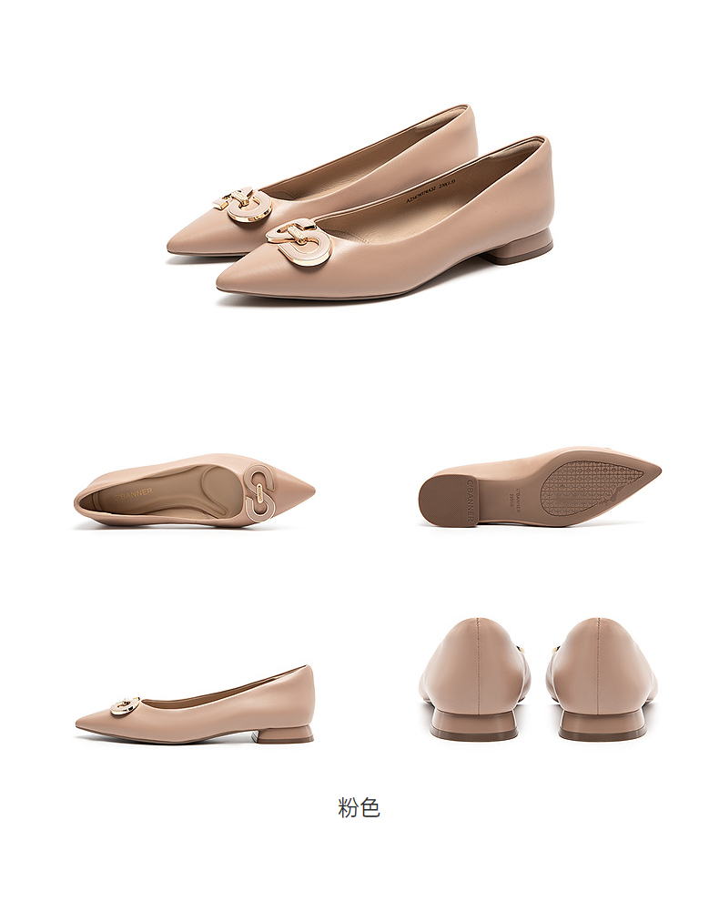 千百度双C拥抱低跟羊皮浅口单鞋女浅口通勤晚晚鞋A25479374