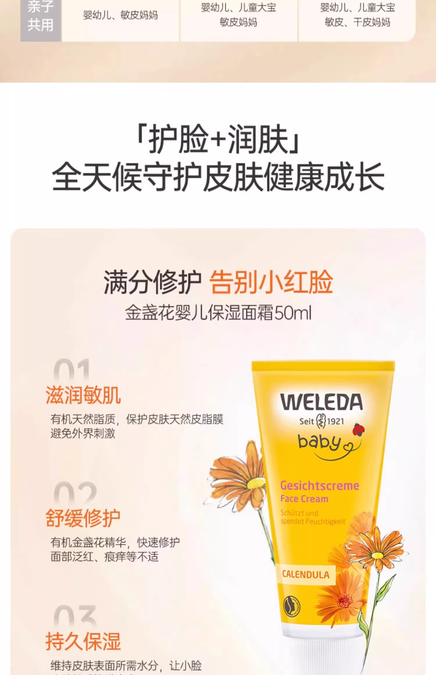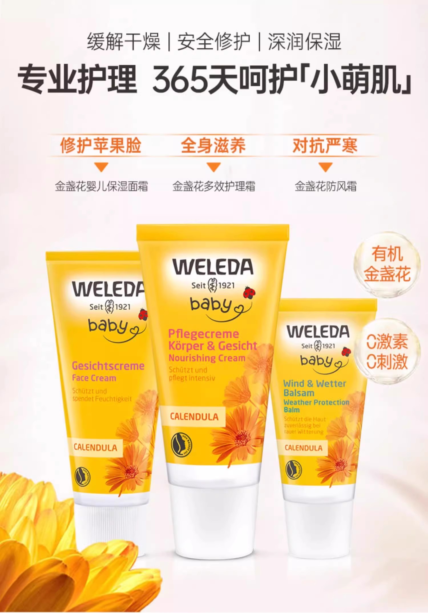 维蕾德weleda金盞花婴儿保湿面霜50ML儿童身体润肤