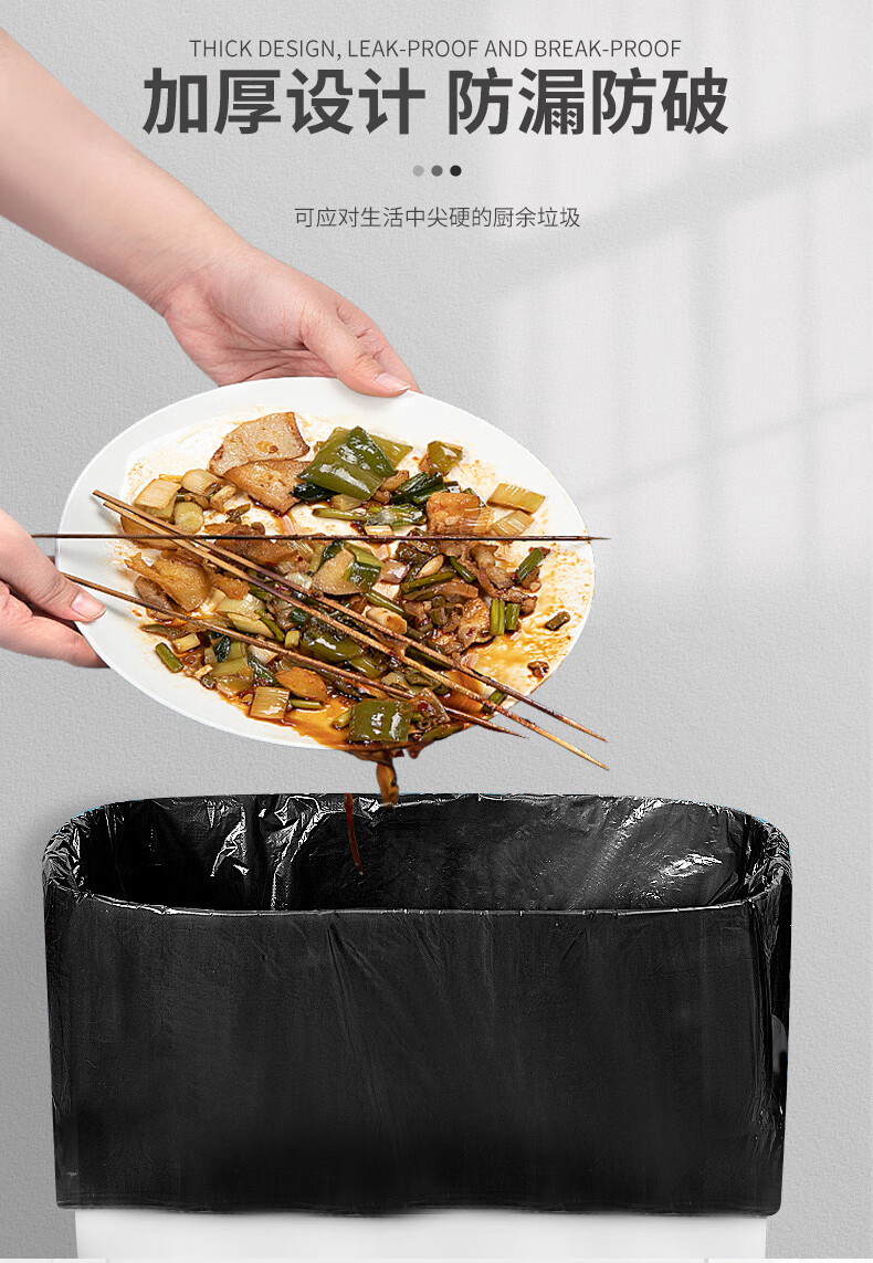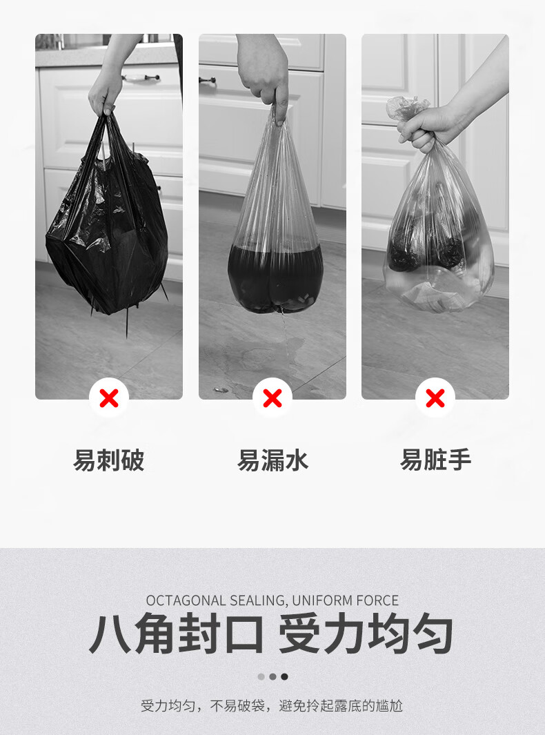 尚岛宜家加厚平口家用垃圾袋100只 八角封口 加厚防洞