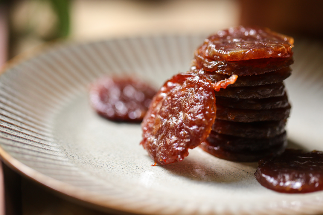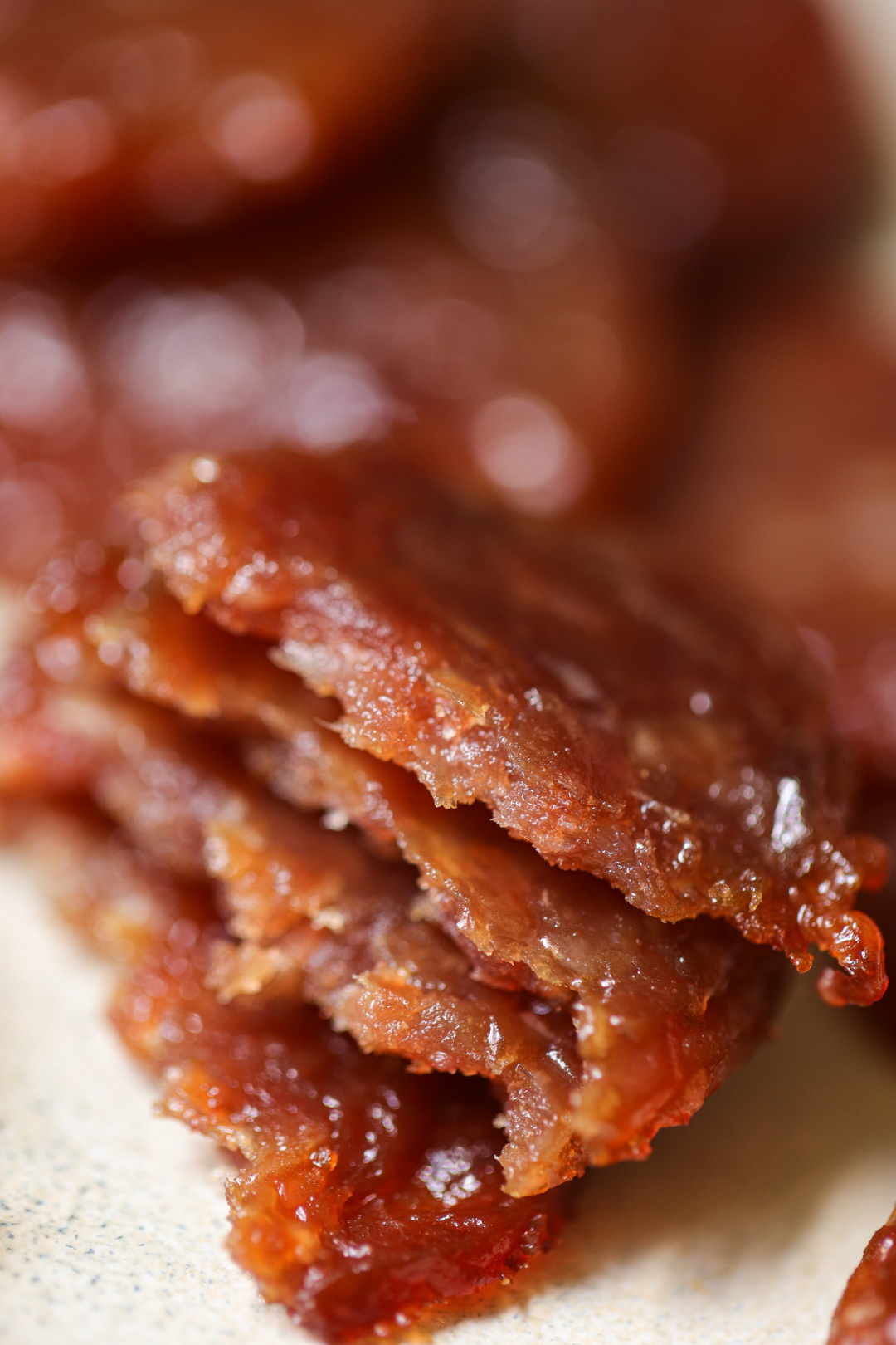 2、猪肉脯冷藏储存,部分油脂会凝固成白色状,非品质问题,介意慎拍。