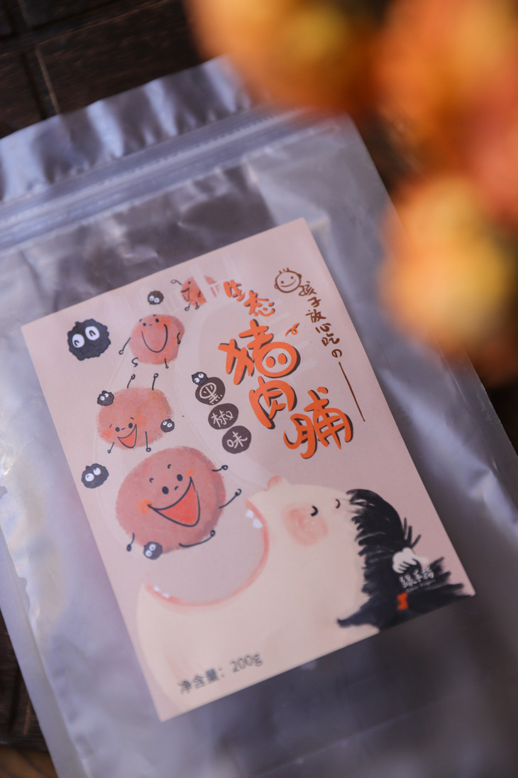 黑椒味:生态猪肉、有机白砂糖、有机酱油、生态黑胡椒、生态海盐