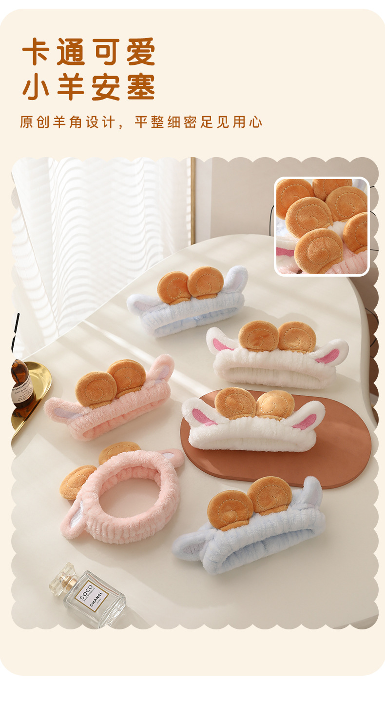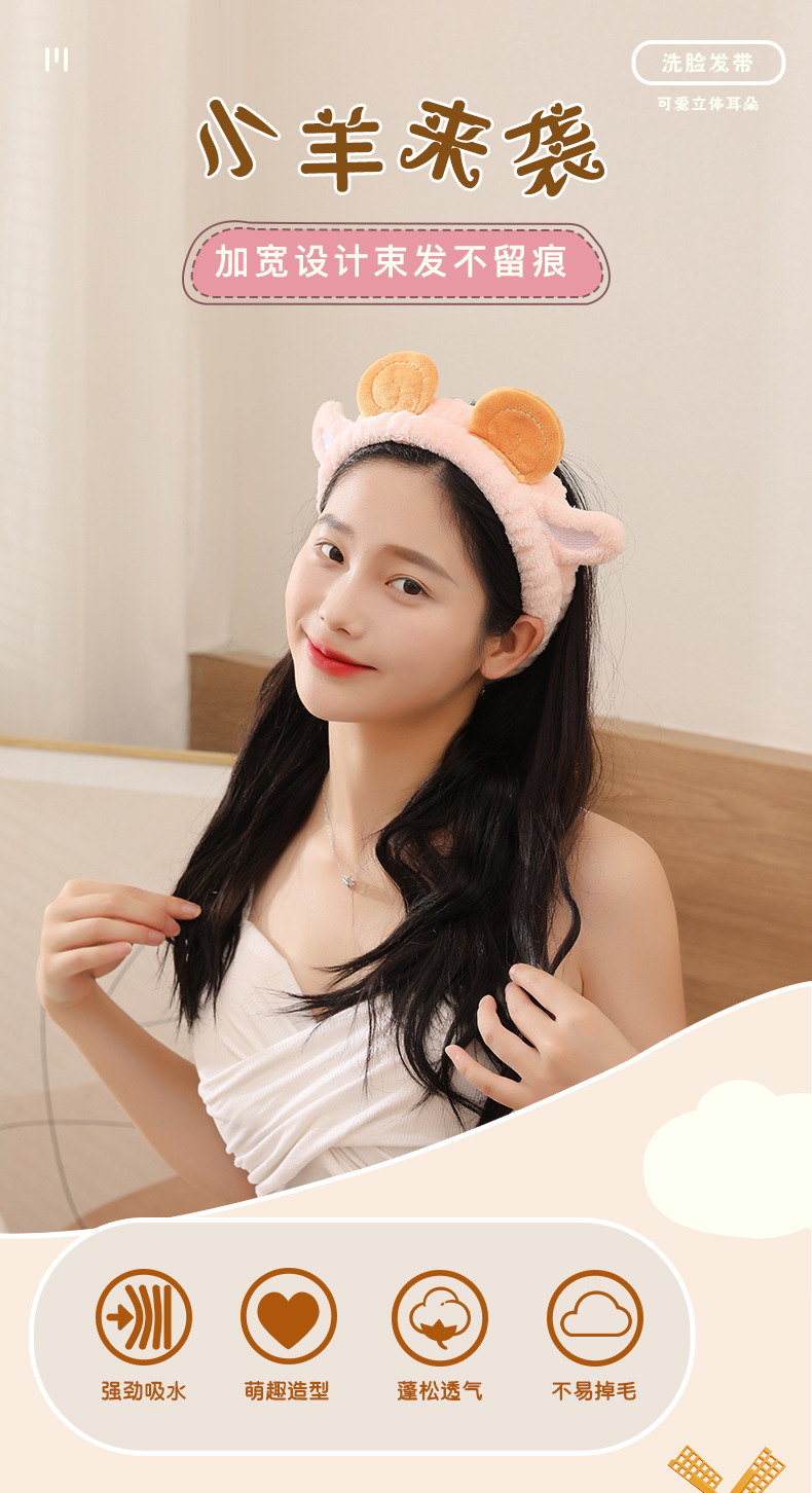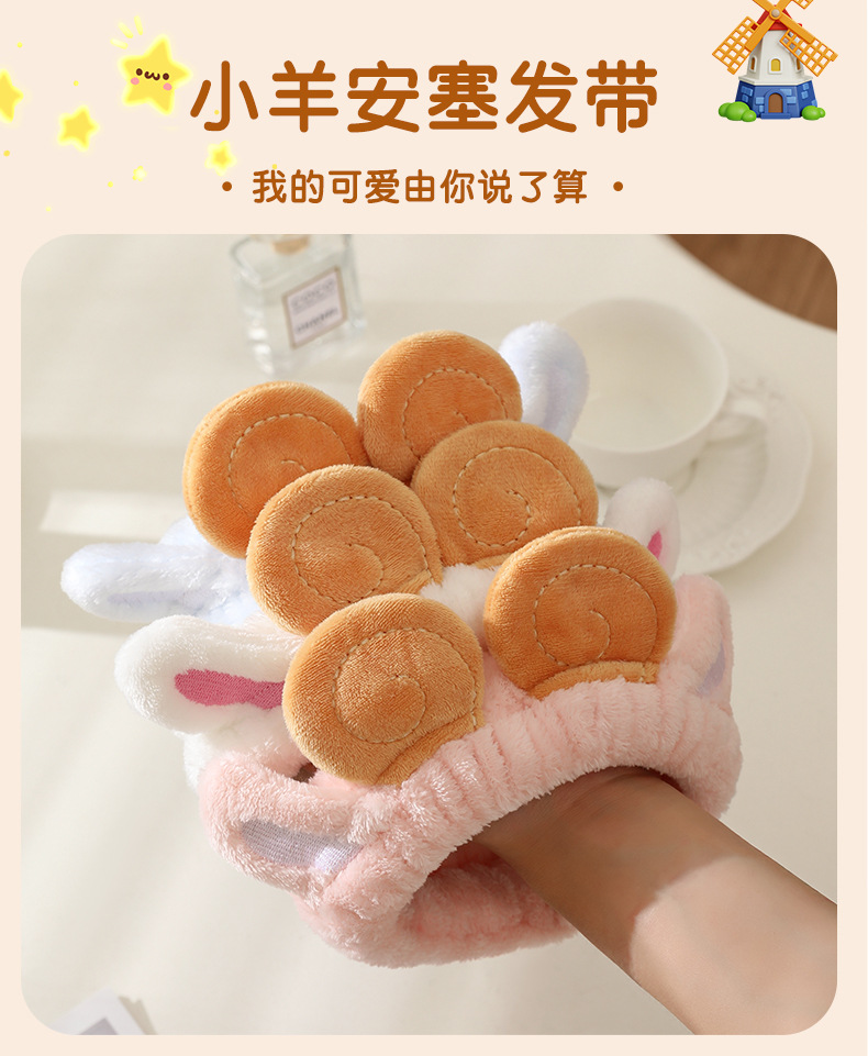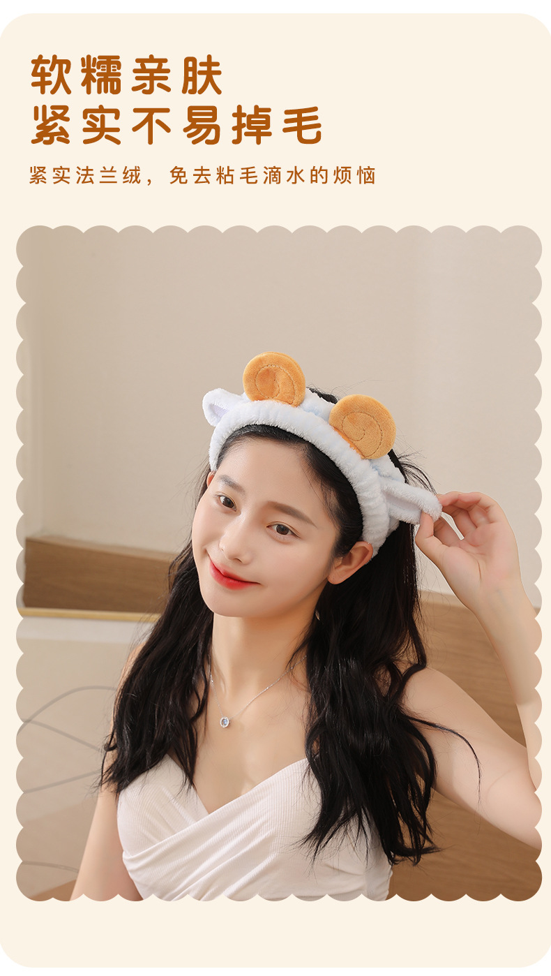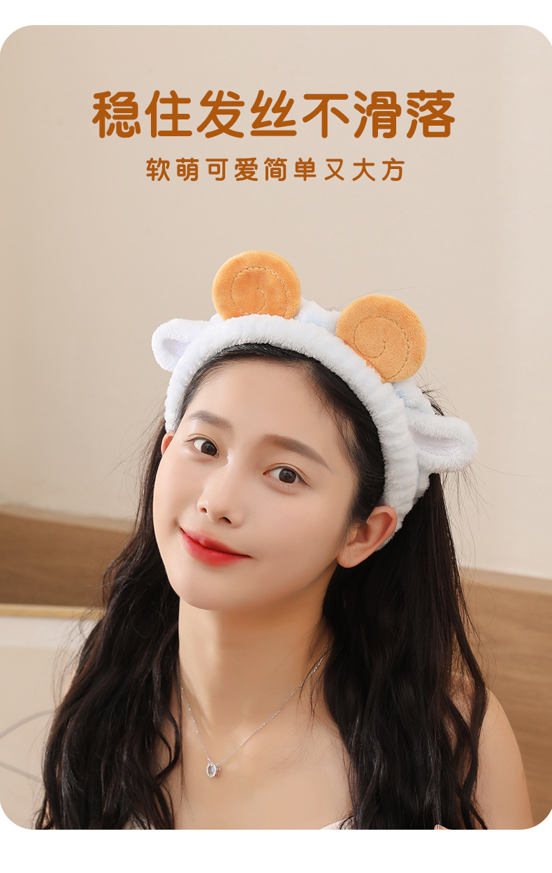 【束发不留痕❗️洗脸发带】稳住发丝不滑落,新款动物小羊耳朵束发带洗脸头带女生卸妆发套法兰绒月子头巾防滑