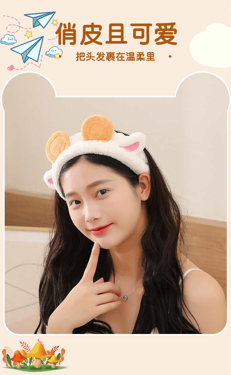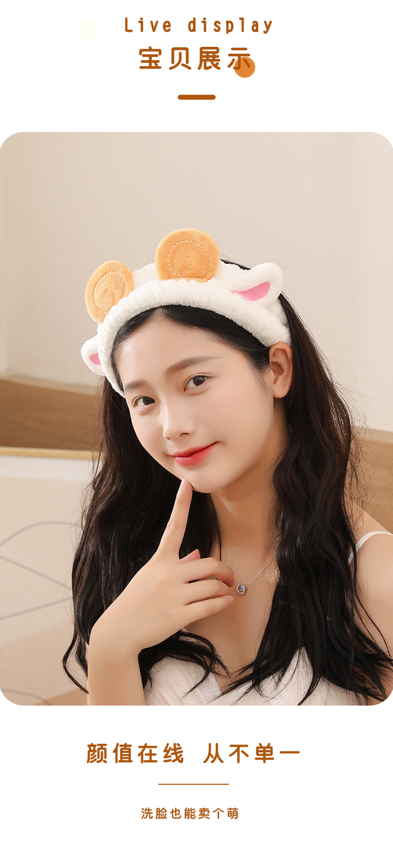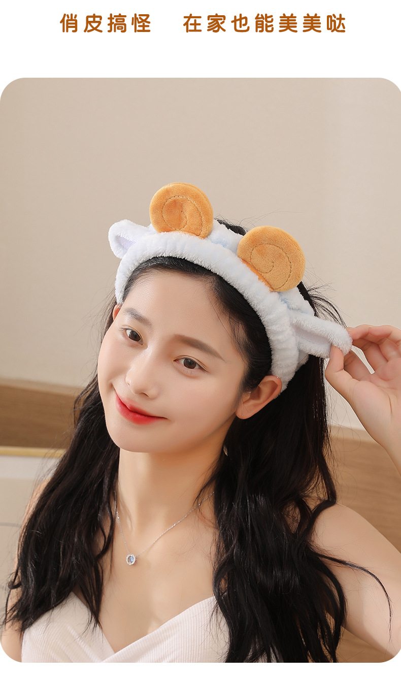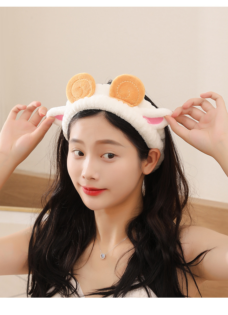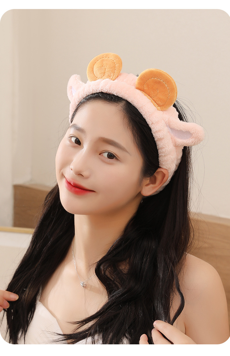 【束发不留痕❗️洗脸发带】稳住发丝不滑落,新款动物小羊耳朵束发带洗脸头带女生卸妆发套法兰绒月子头巾防滑