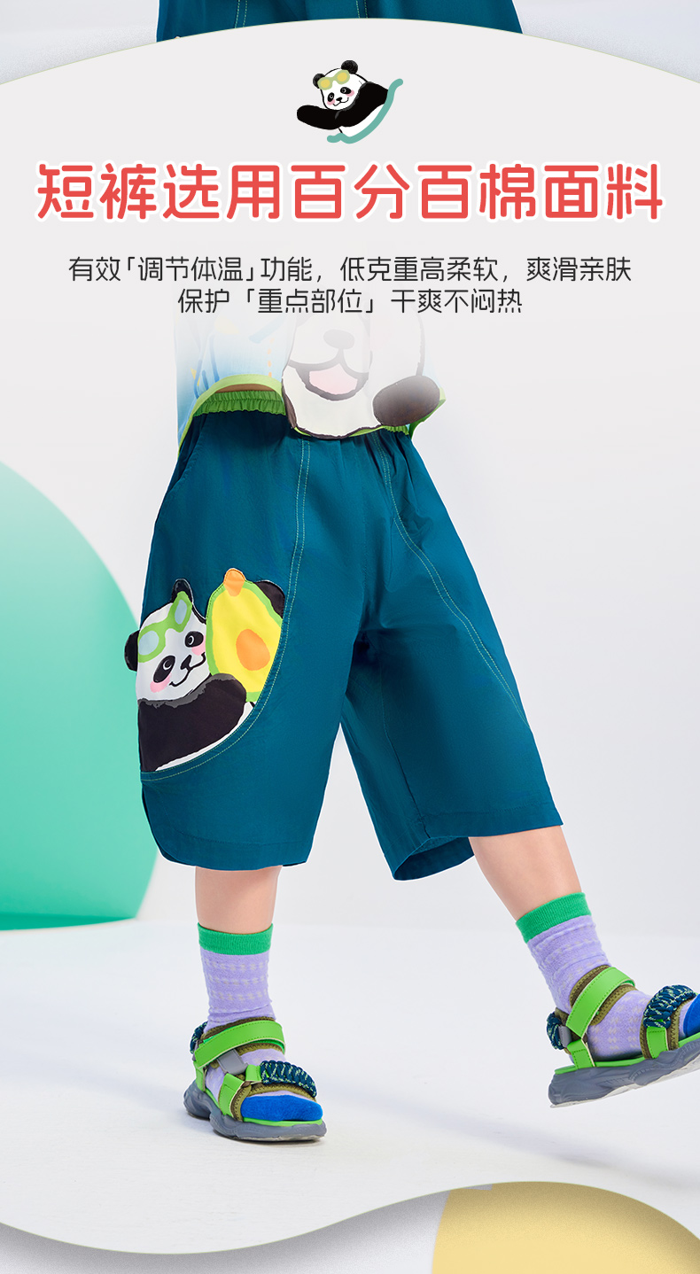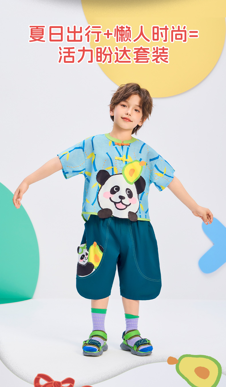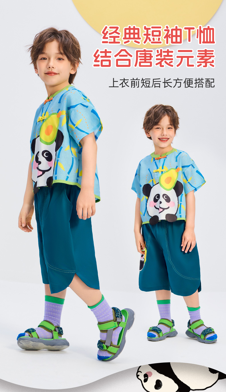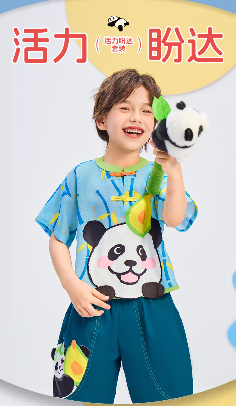 年衣2025夏季新款卡通熊猫休闲上衣短裤两件套活力盼达套装