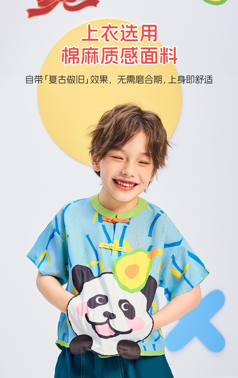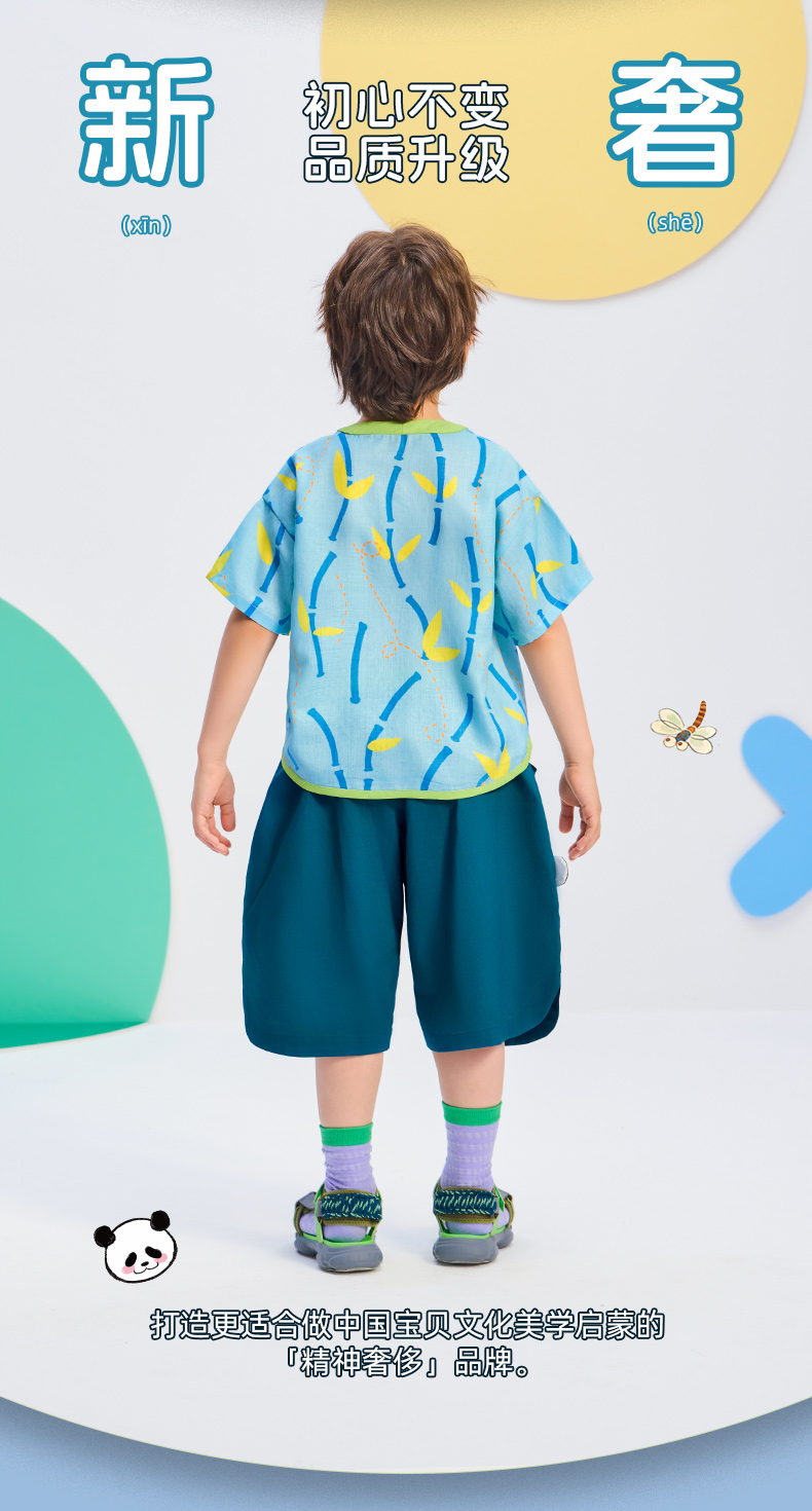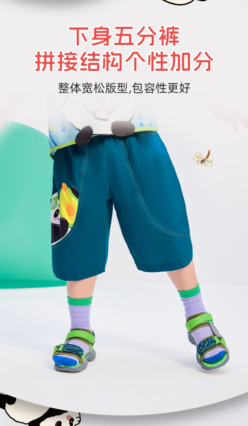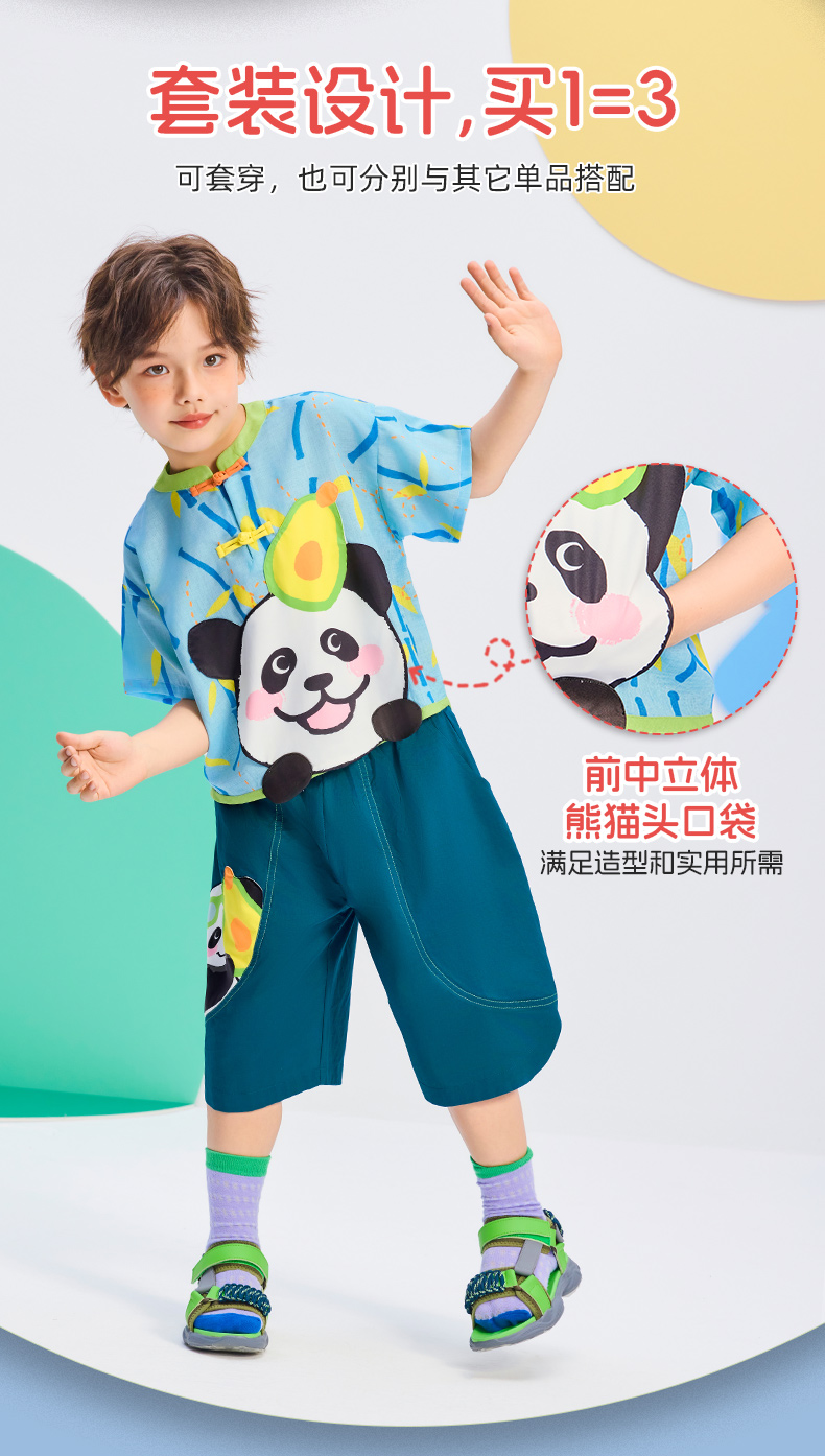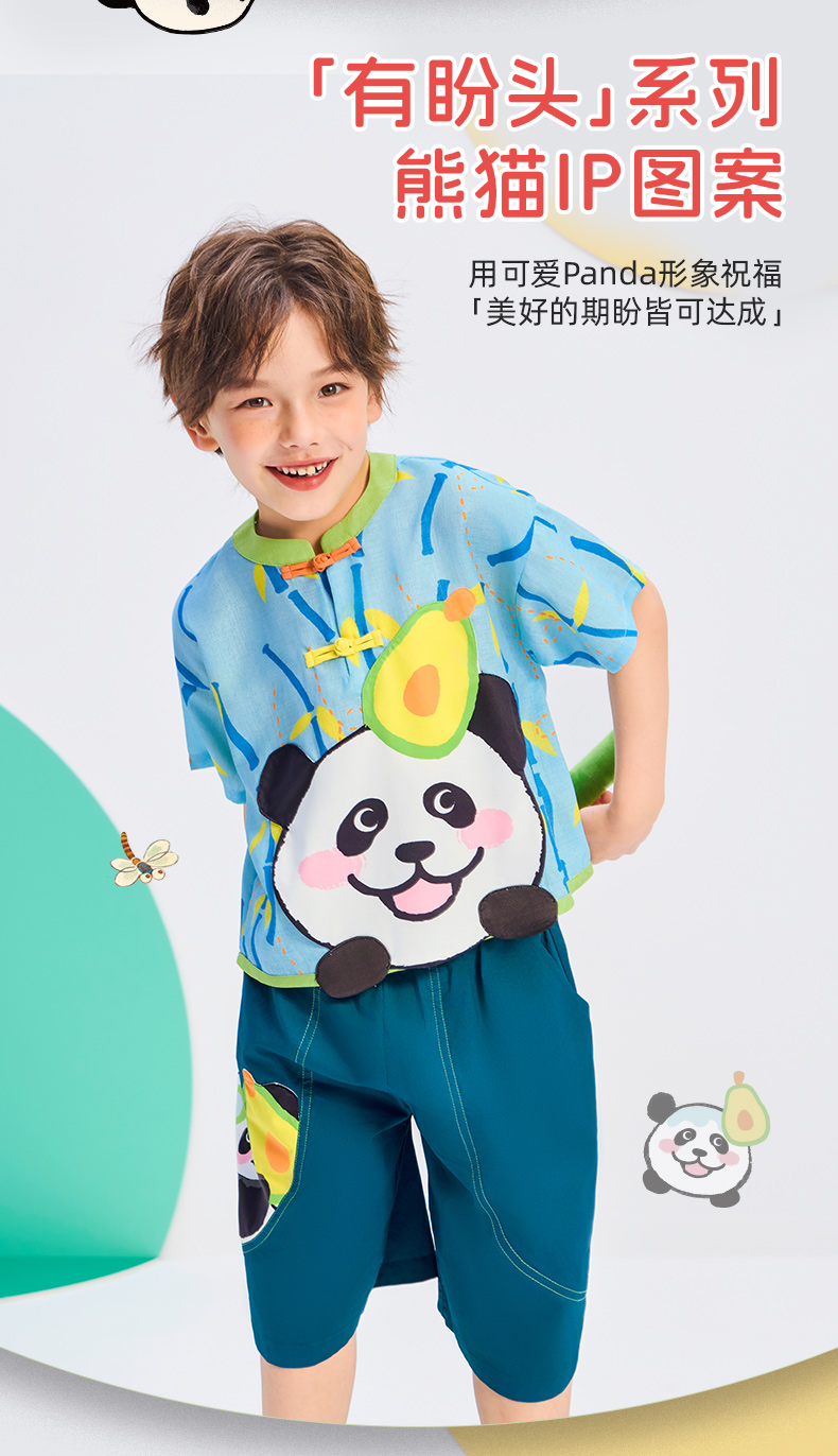 年衣2025夏季新款卡通熊猫休闲上衣短裤两件套活力盼达套装