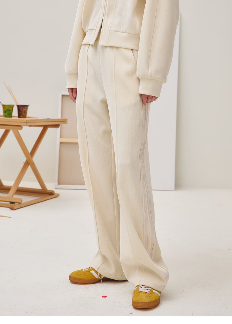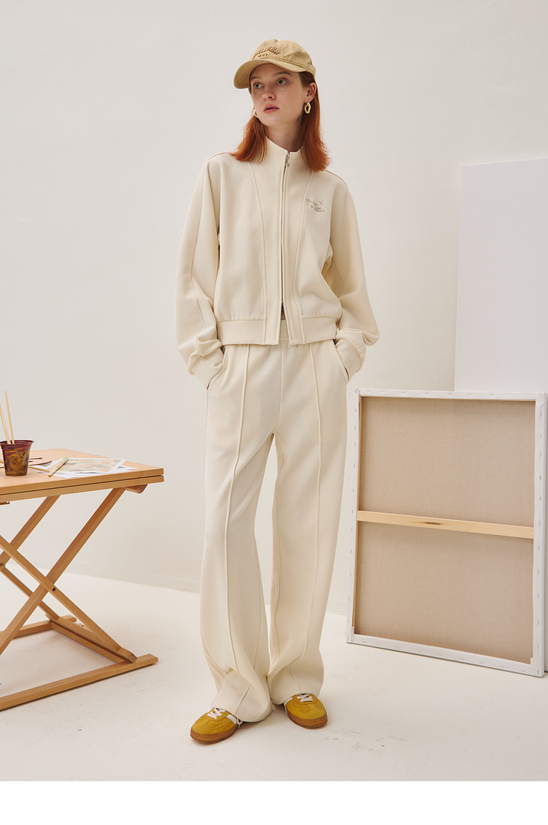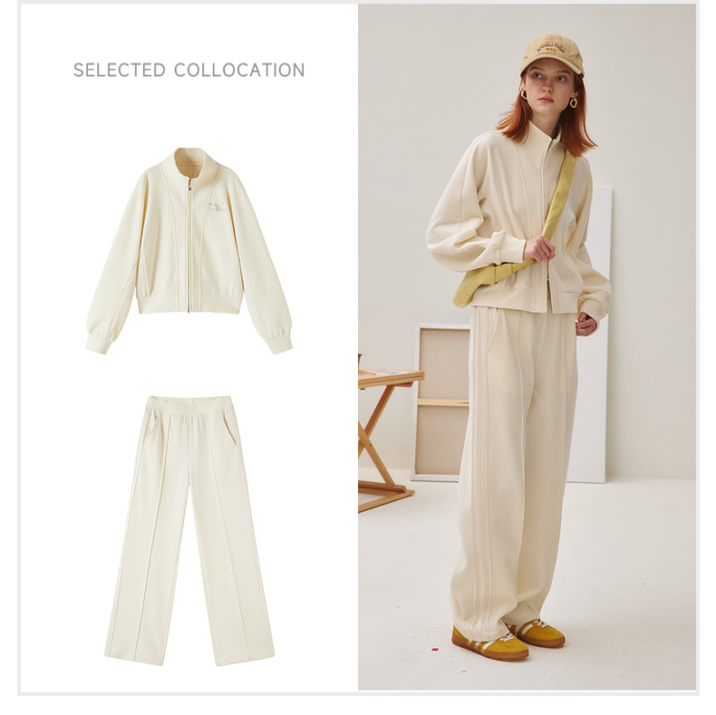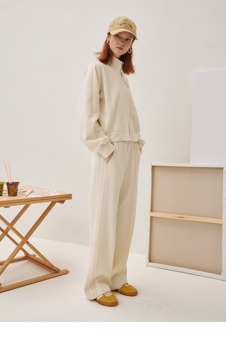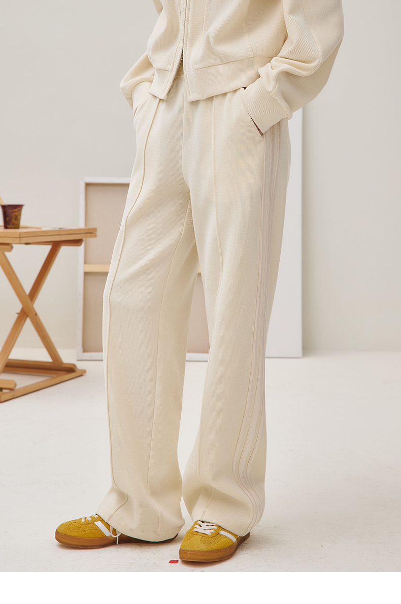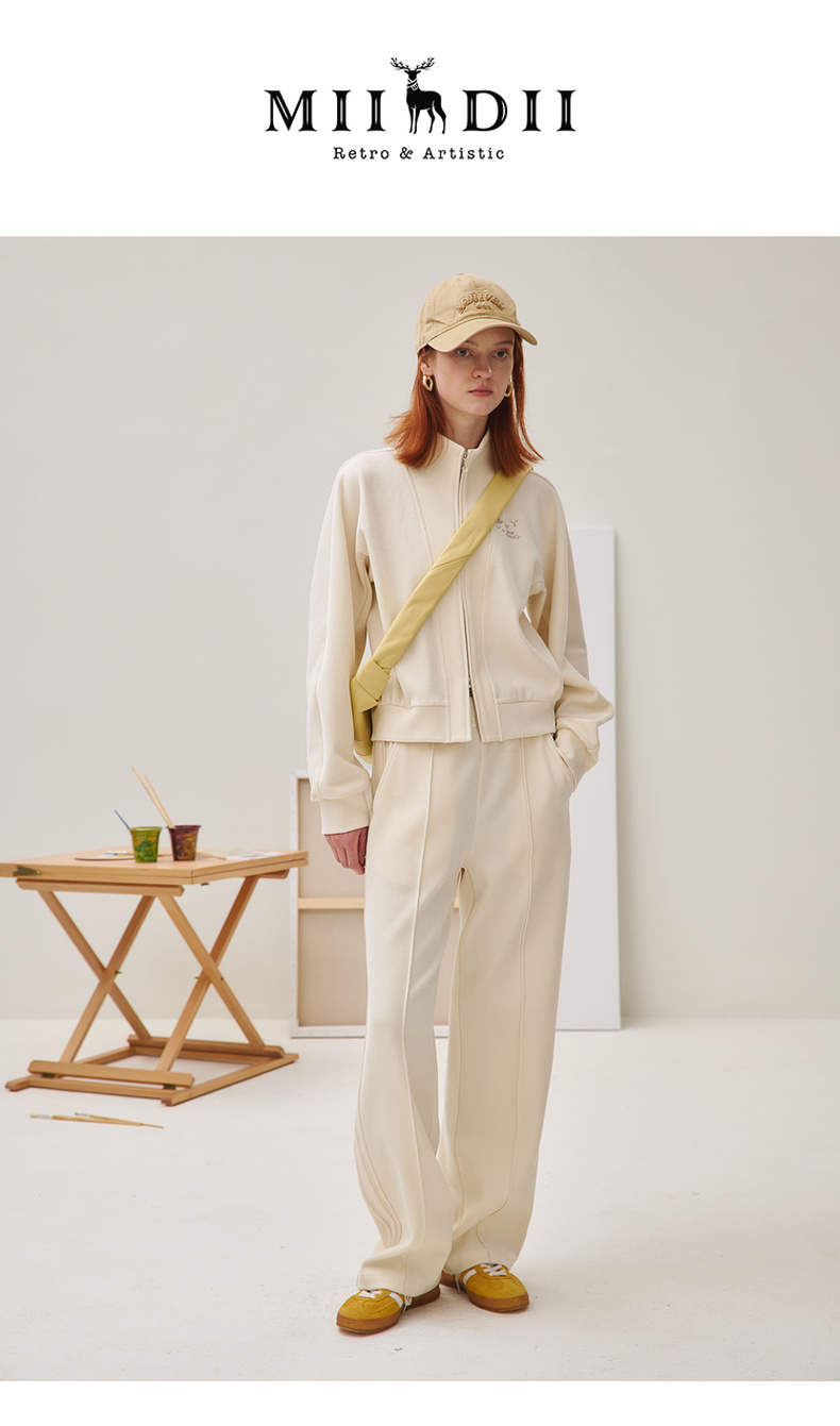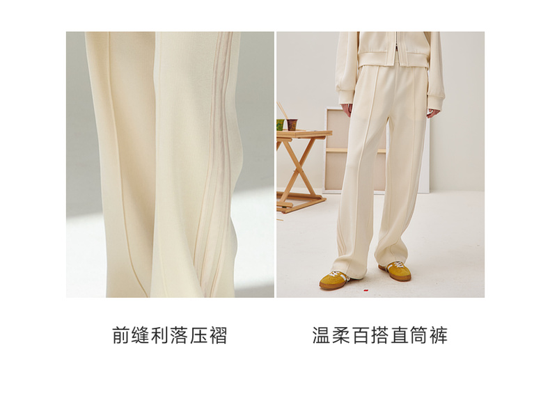 谜底休闲裤长裤女2025秋新品百搭松紧腰悬垂感米白卫裤253MK1248