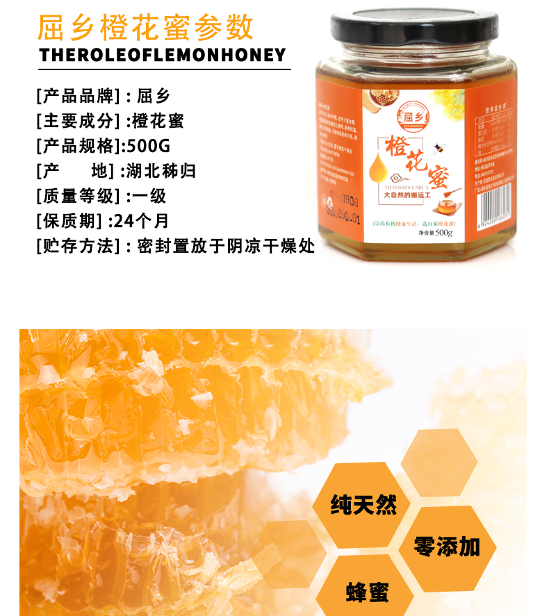 三峡农家橙花蜜自产成熟橙子蜜柑橘花蜜500克橙花蜜正宗蜜