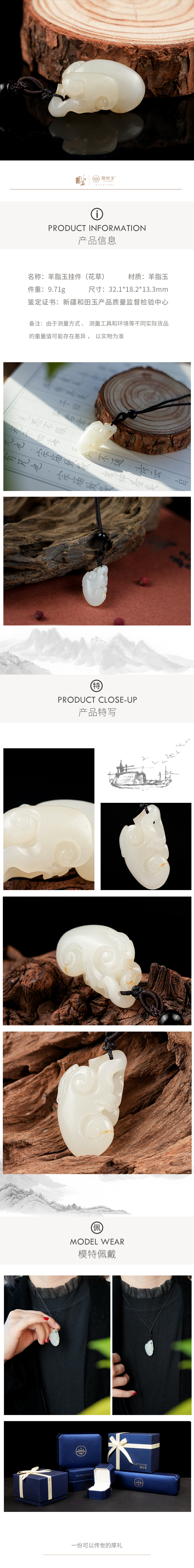 新疆国玉盟世玉和田玉羊脂玉挂件(吉祥如意)【带证书·顺丰物流】
