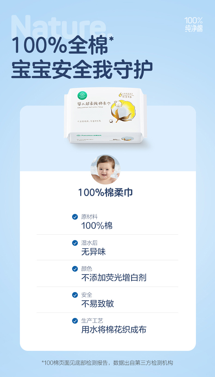 全棉时代婴儿超柔全棉柔巾80片*3包