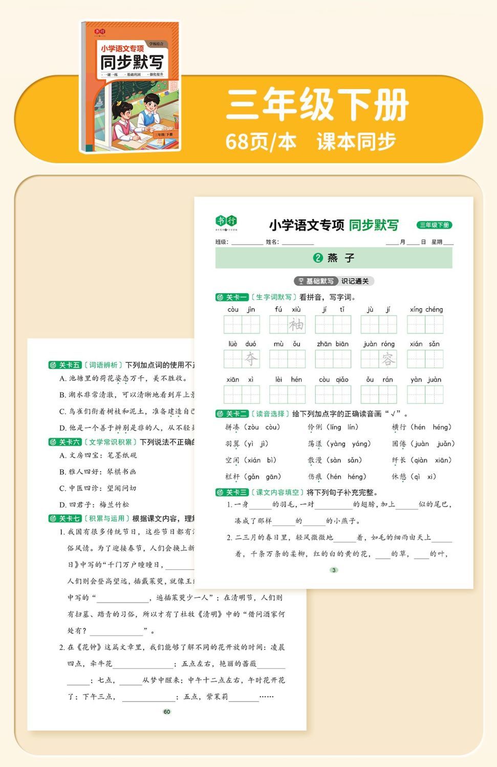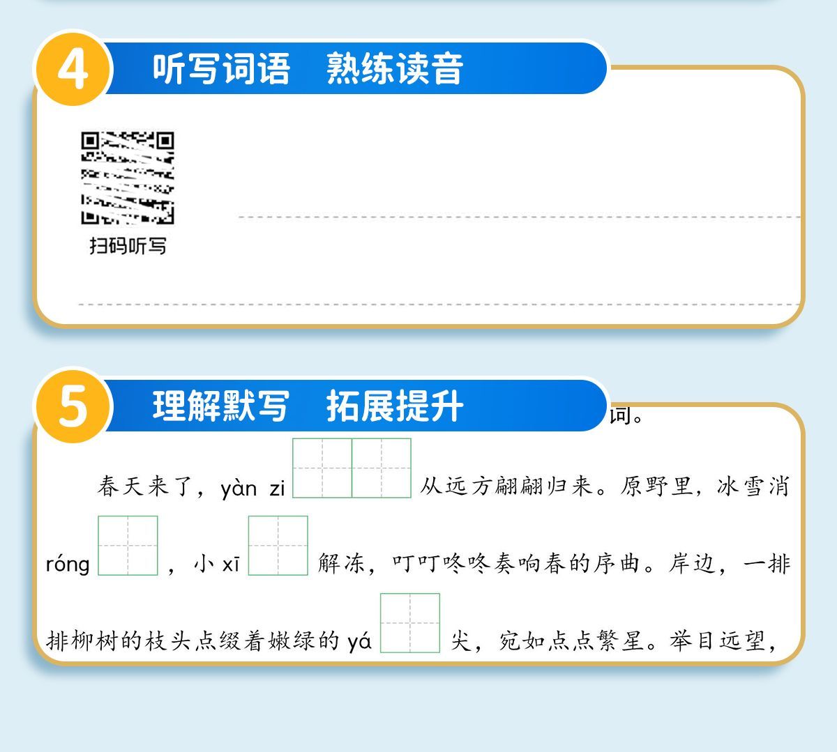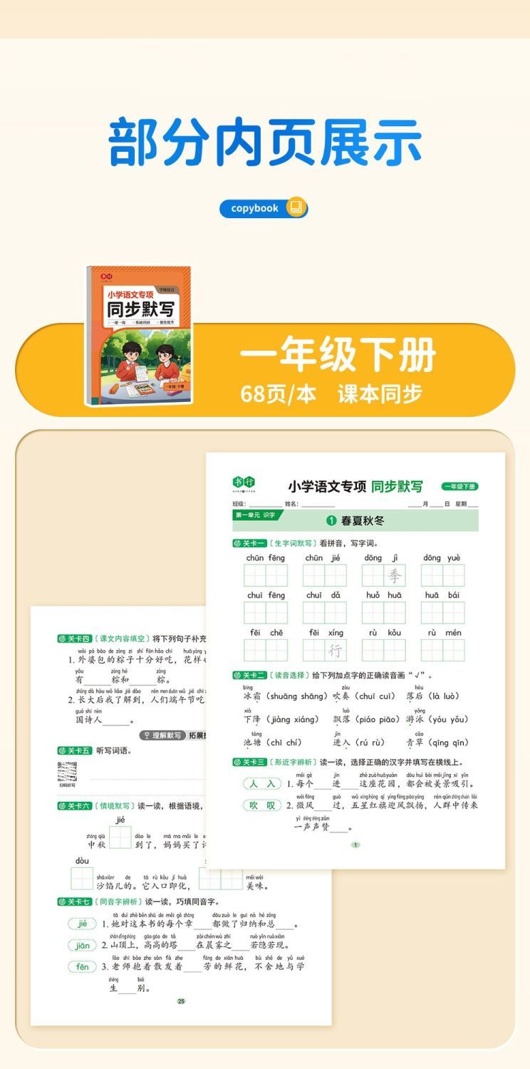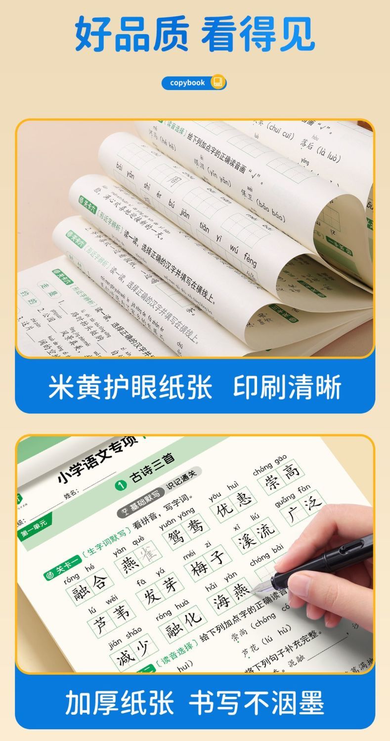 小学同步练字帖一年级二年级三年级下册看拼音写词语默写练字本小学语文数学同步写字帖人教版专用1-6年级课本生字词语填空造句练习儿童每日一练字帖