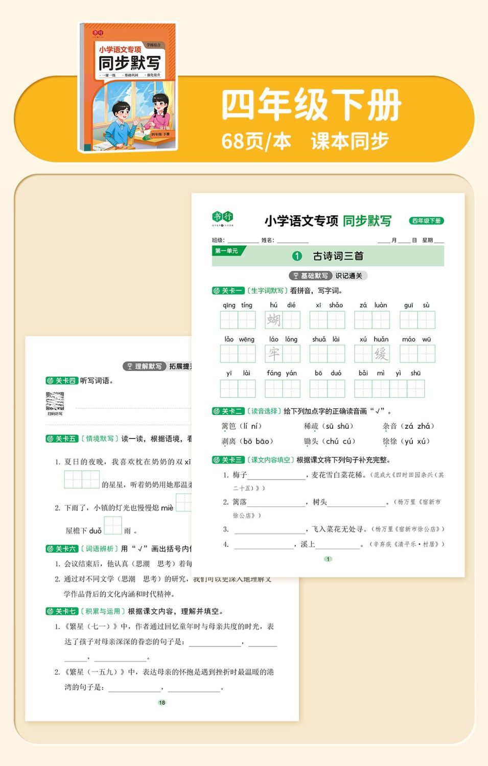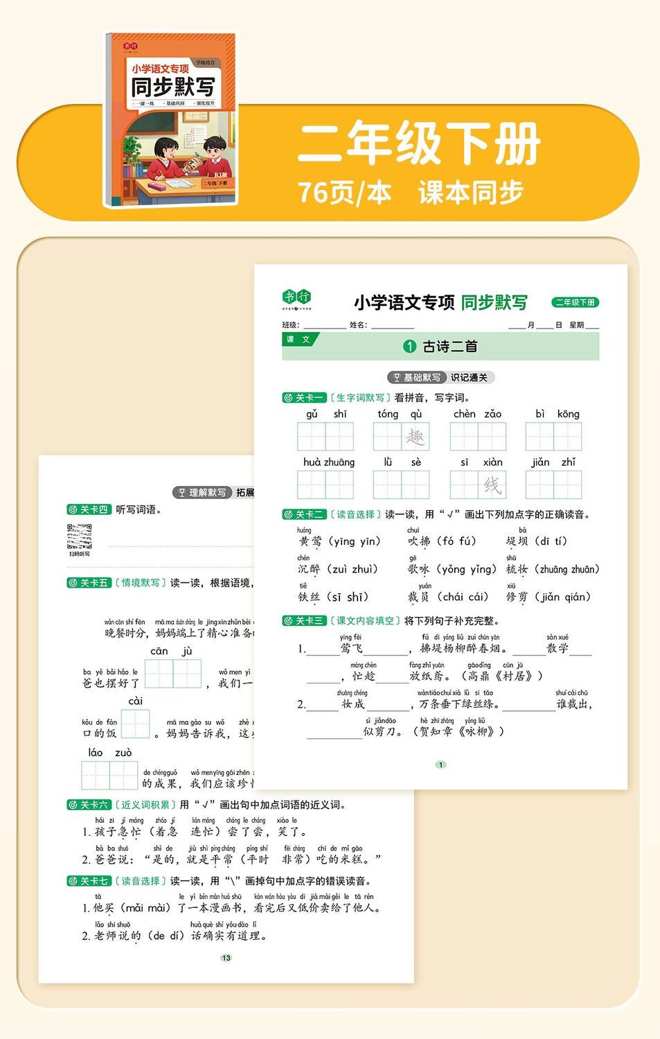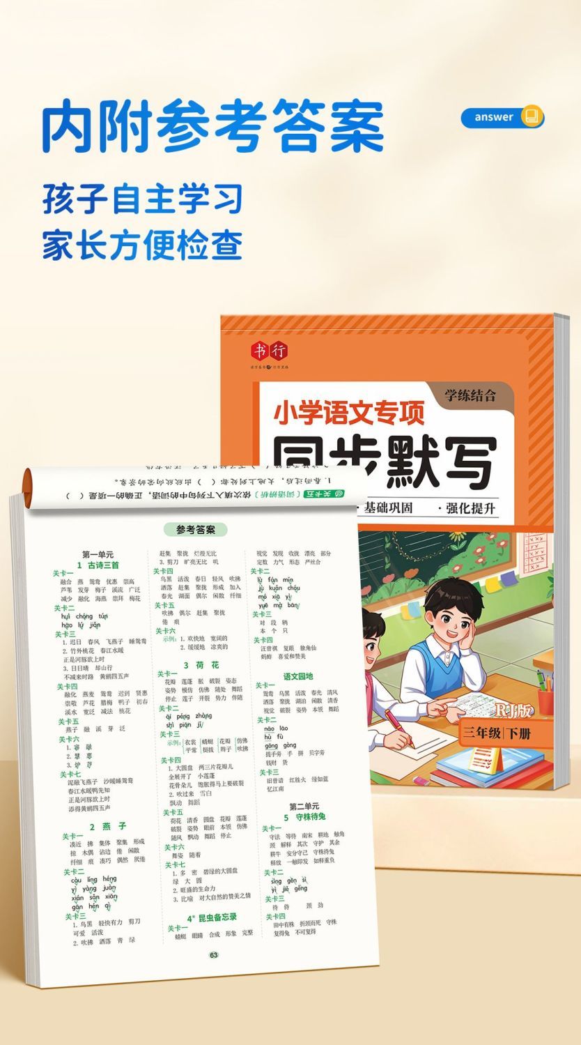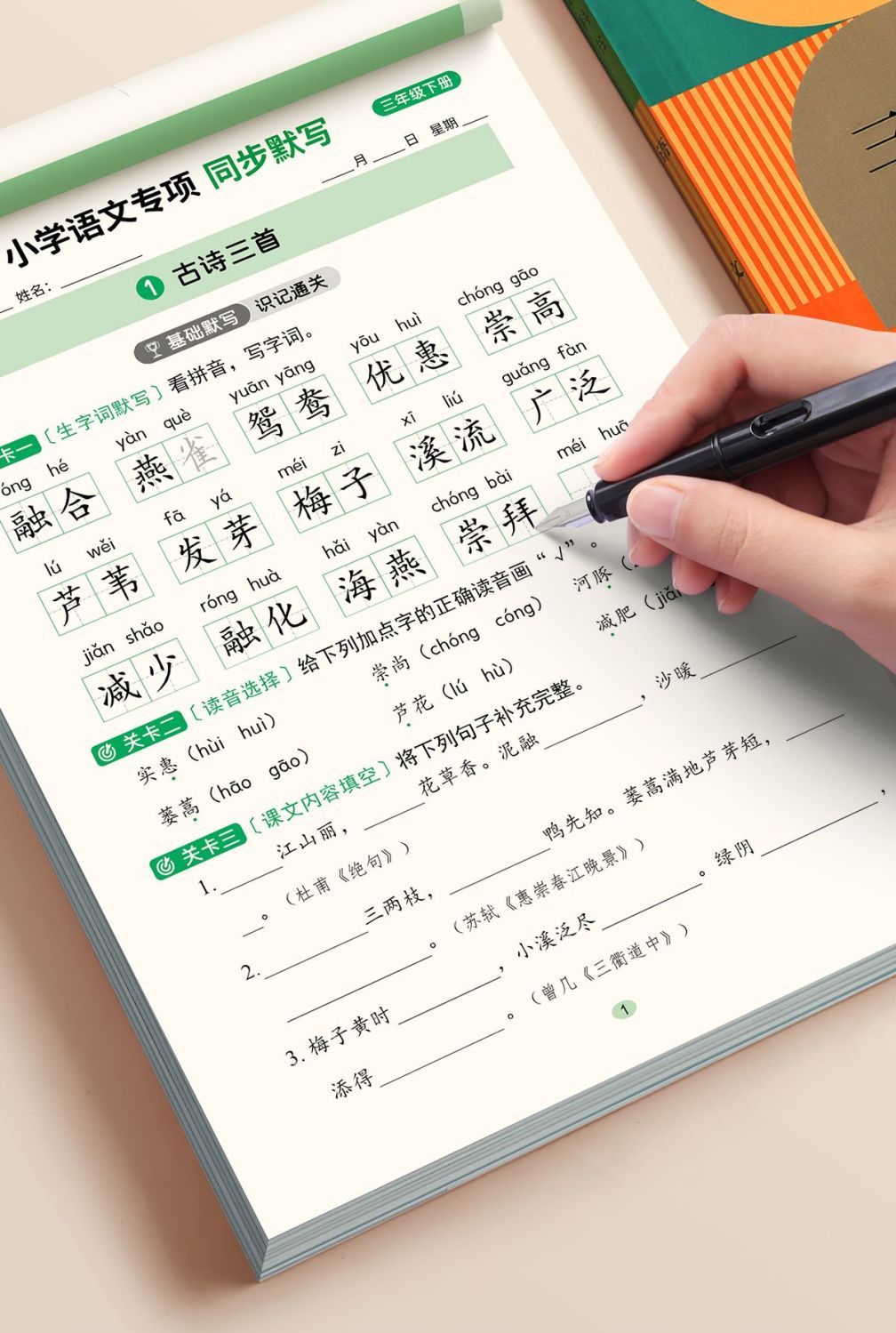 小学同步练字帖一年级二年级三年级下册看拼音写词语默写练字本小学语文数学同步写字帖人教版专用1-6年级课本生字词语填空造句练习儿童每日一练字帖