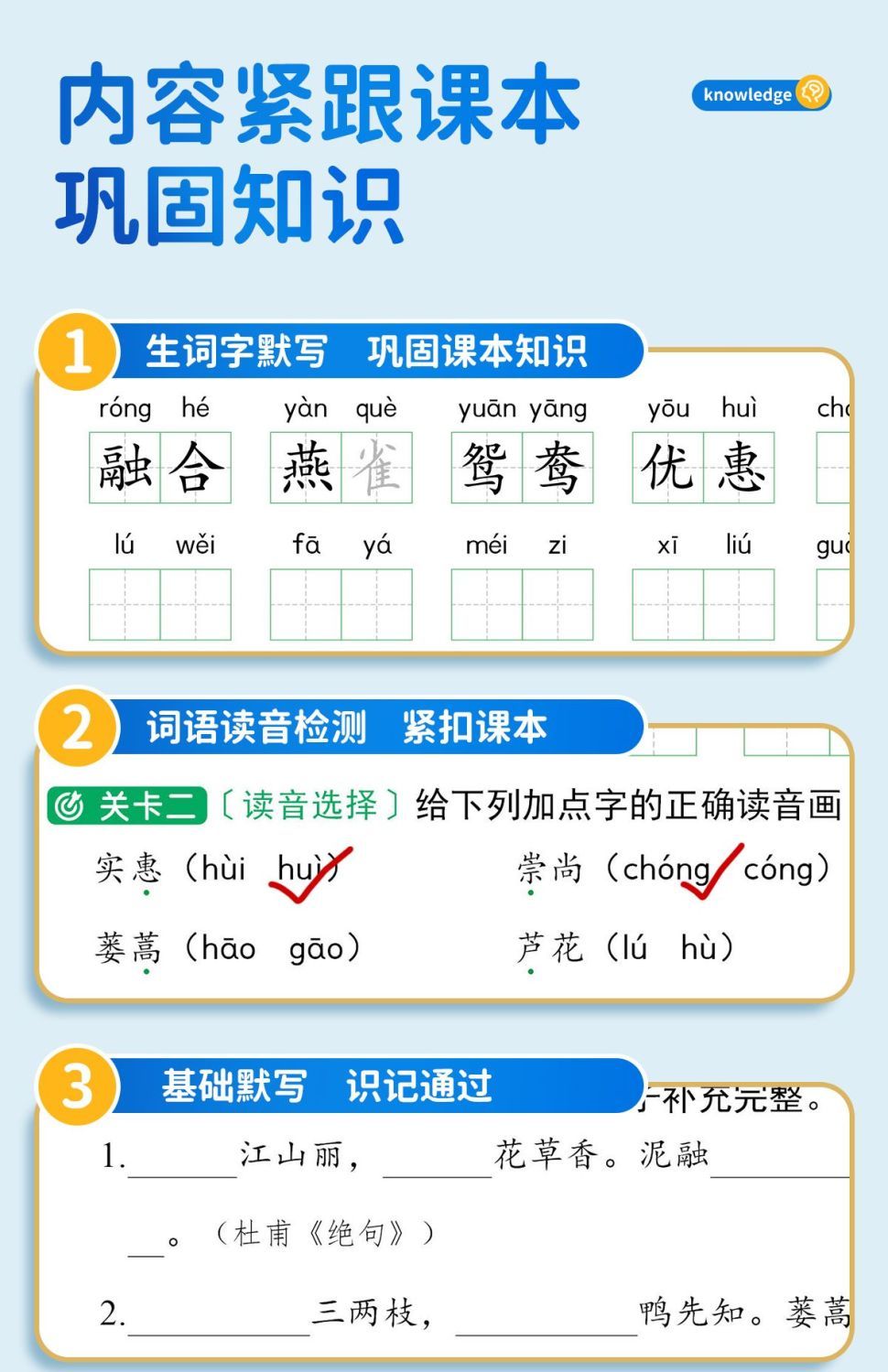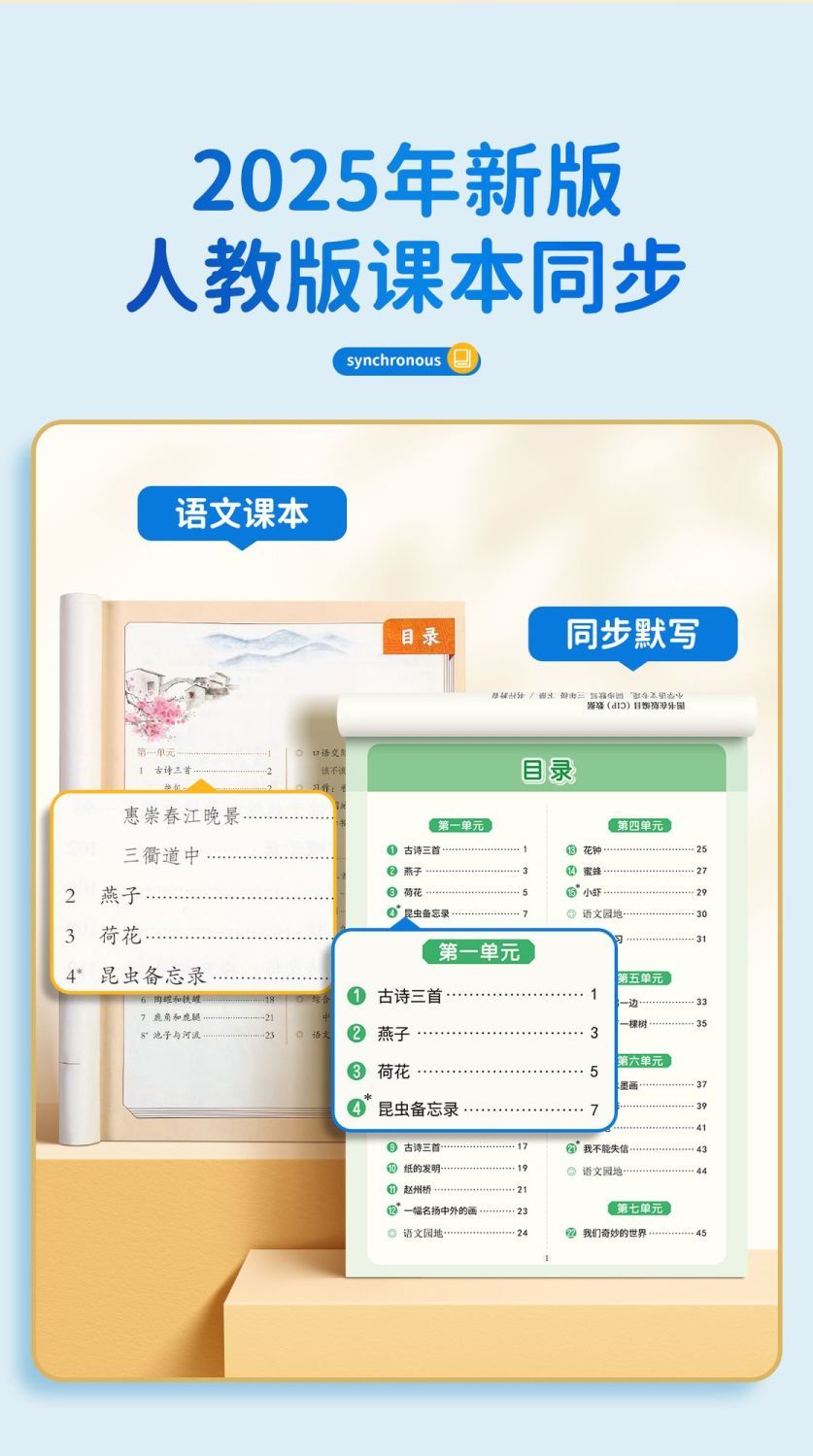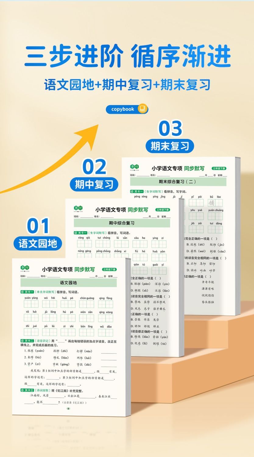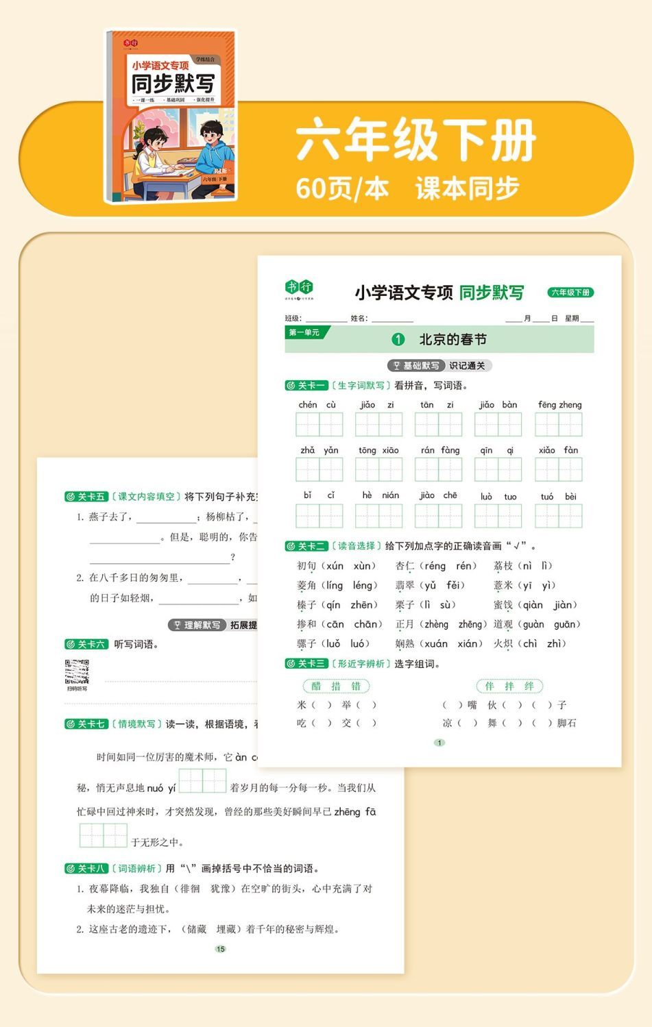小学同步练字帖一年级二年级三年级下册看拼音写词语默写练字本小学语文数学同步写字帖人教版专用1-6年级课本生字词语填空造句练习儿童每日一练字帖