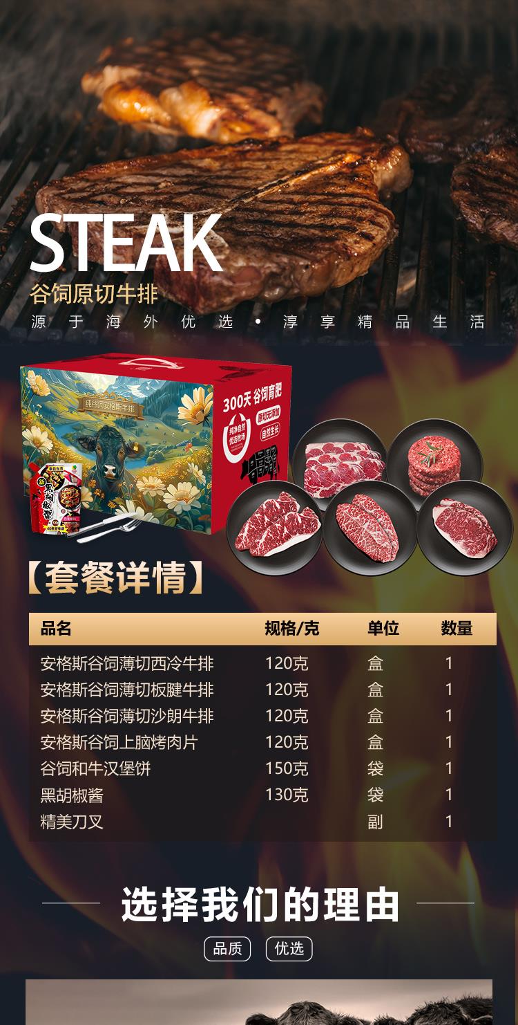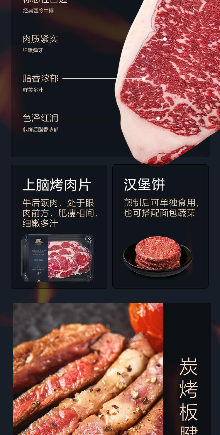【自营】 食中隽品 5款牛肉 安格斯西冷/板腱/上脑等 进口原切牛排 牛排礼盒 赠送黑胡椒酱/精美刀叉 630g 顺丰冷链配送