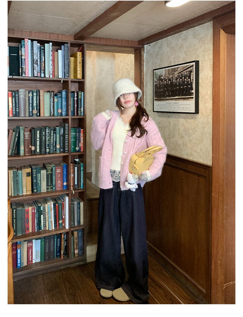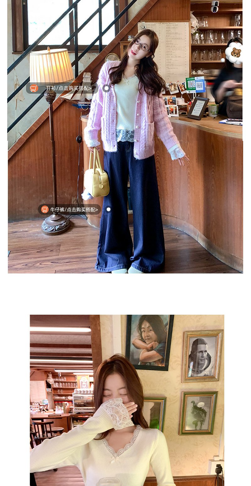 <曾小咸推荐>3.1现货秒杀!微信超特价!韩系v领蕾丝花边毛针织衫 日常129.99 立减60 秒杀69.99!淡粉色麻花v领毛衣 秒杀129.99!!
