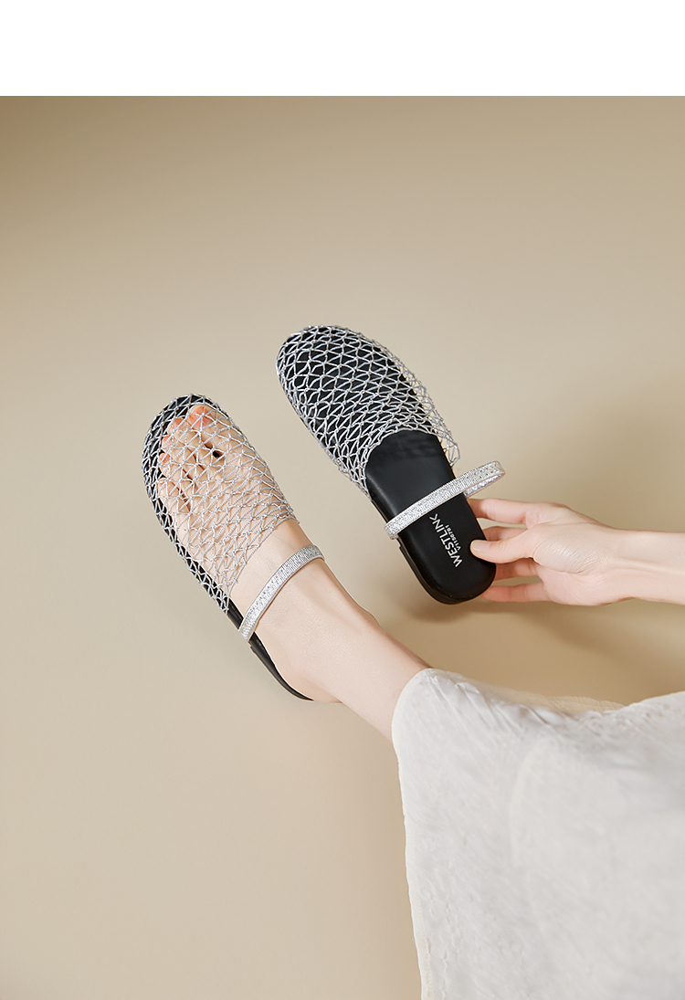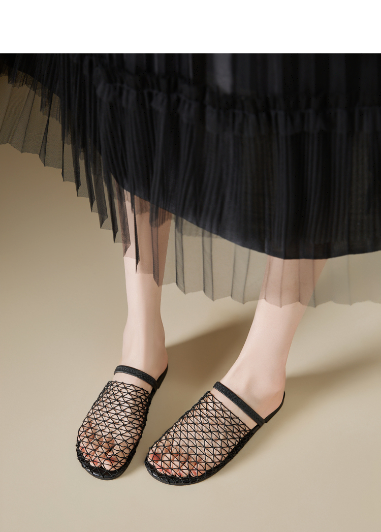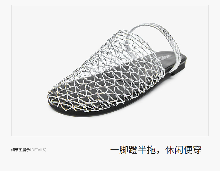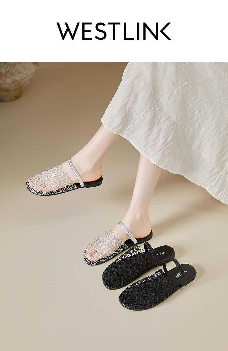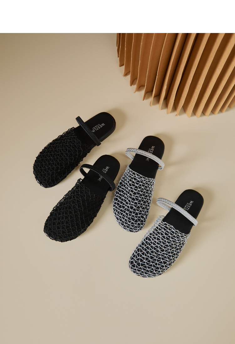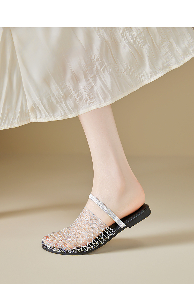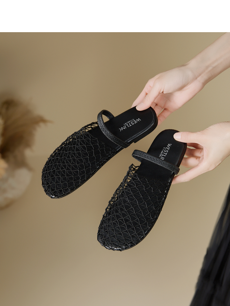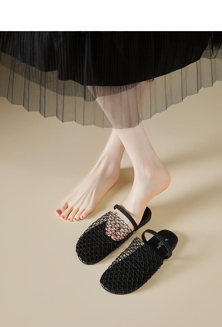 西遇镂空网面半拖鞋女夏季新款一脚蹬包头凉鞋平底外穿凉拖鞋V1156761