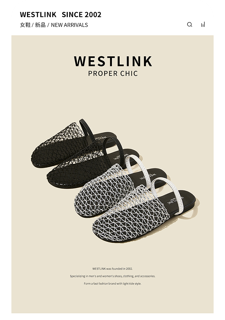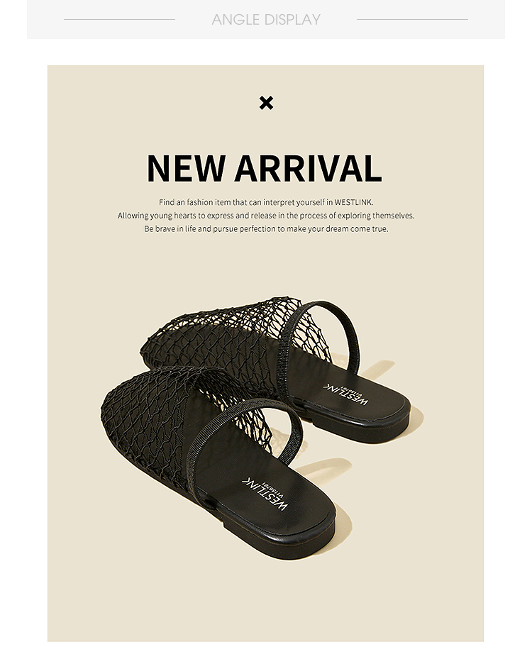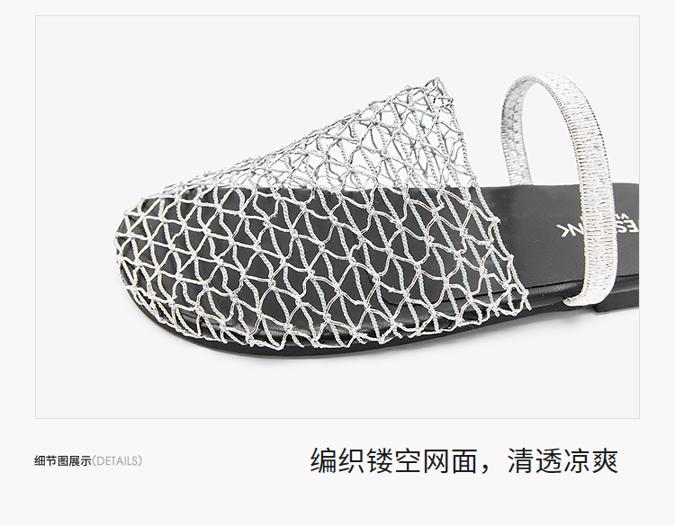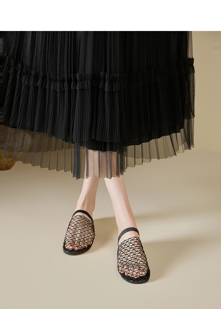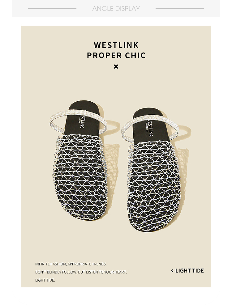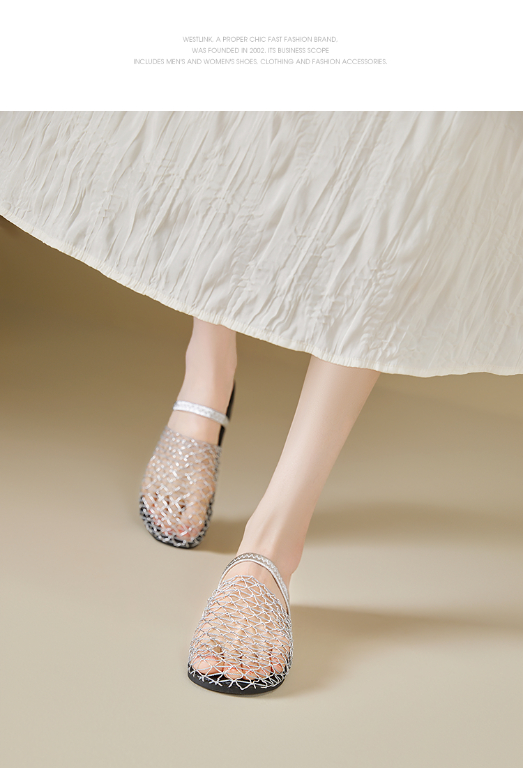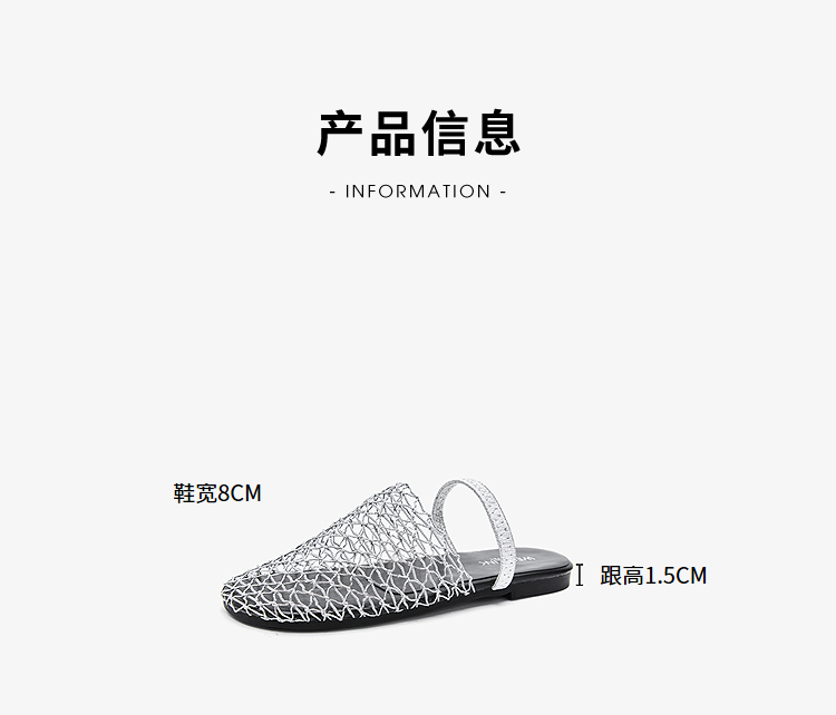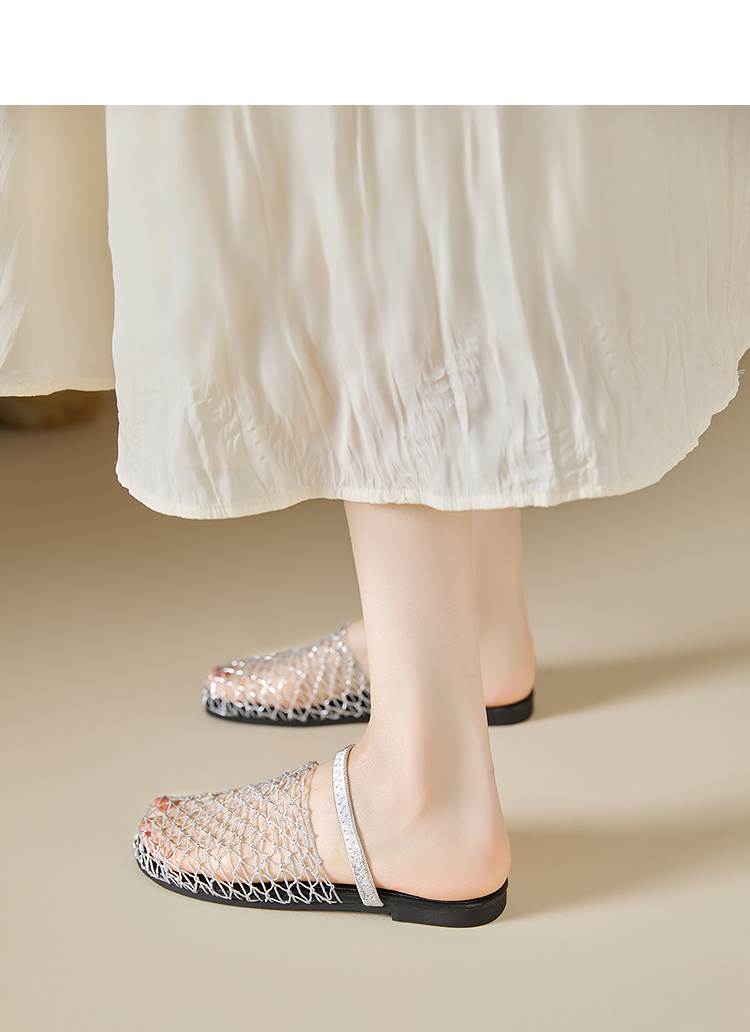 西遇镂空网面半拖鞋女夏季新款一脚蹬包头凉鞋平底外穿凉拖鞋V1156761