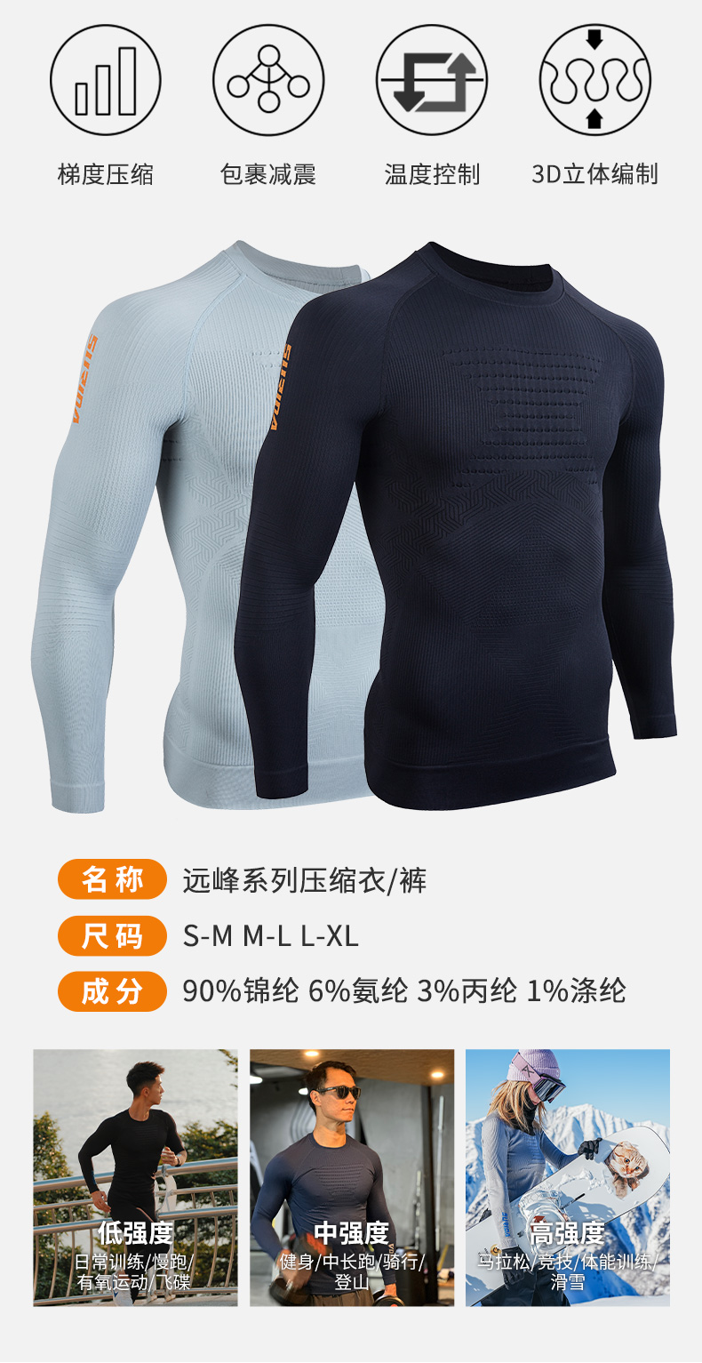 速力达远峰多功能压缩长袖滑雪跑步健身服户外骑行保暖速干排汗衣