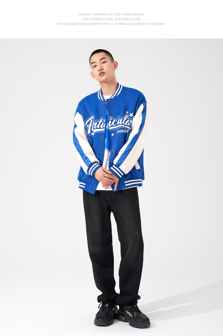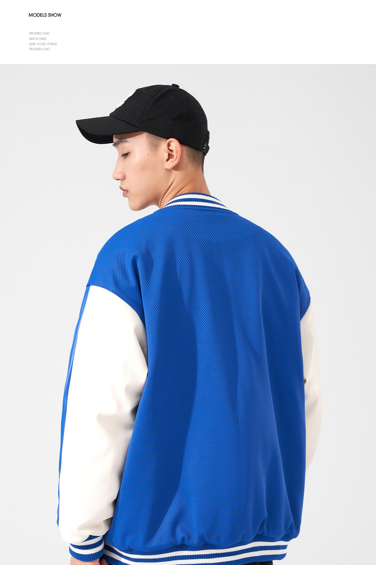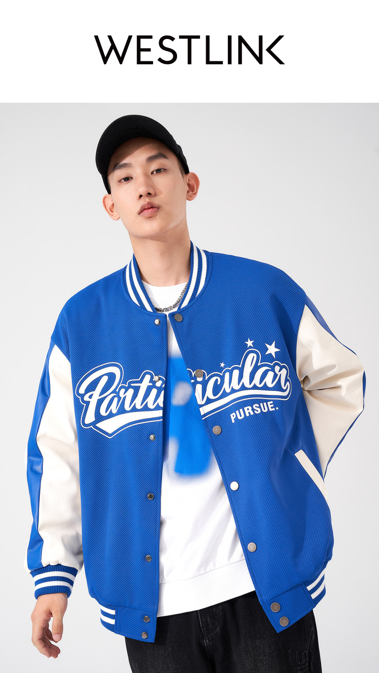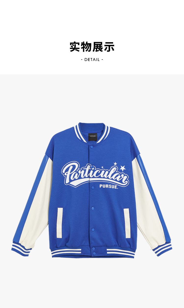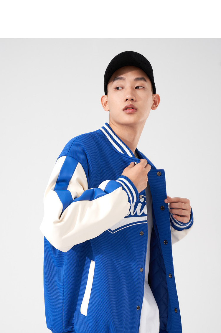 西遇棒球服男2023年冬季新款蓝色复古撞色潮ins宽松外套轻薄上衣12022432