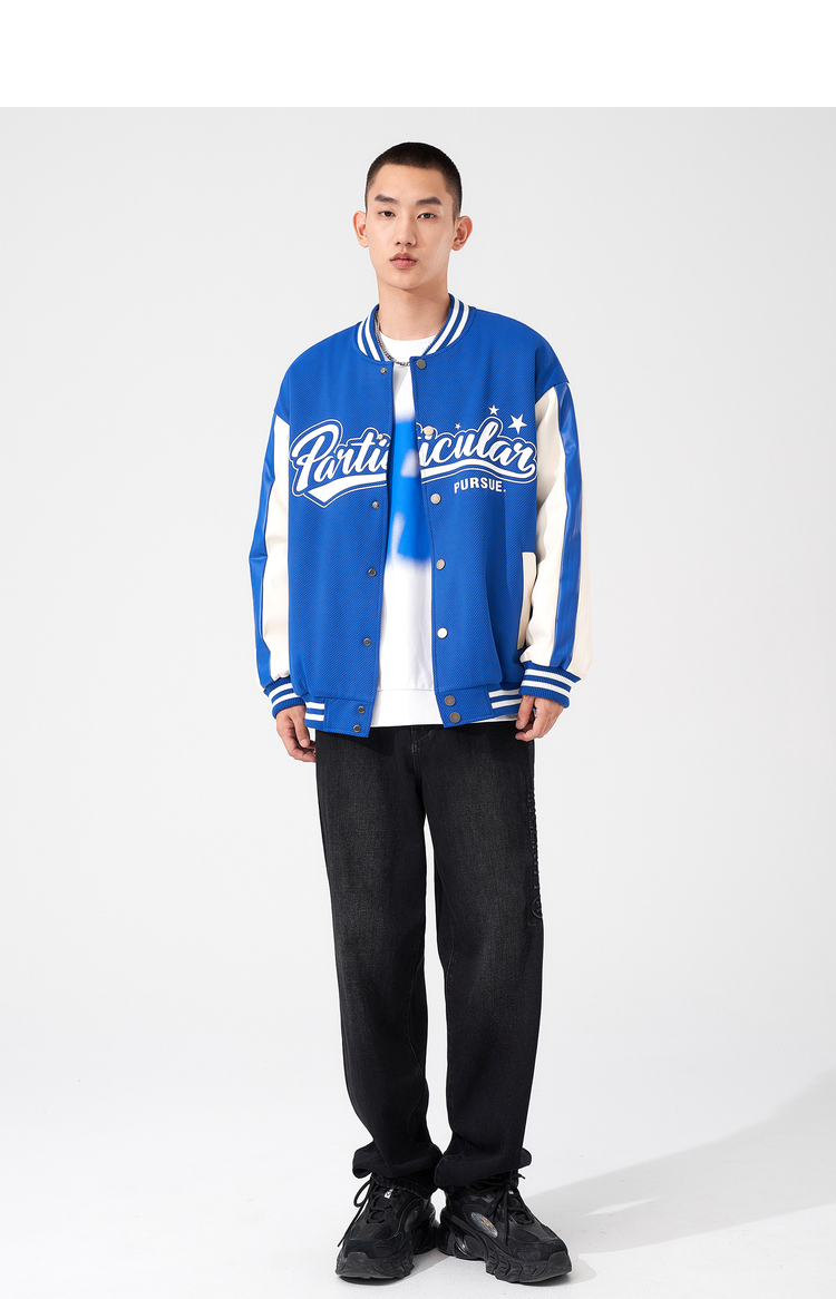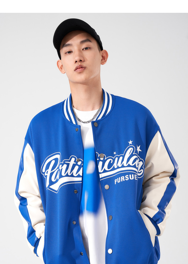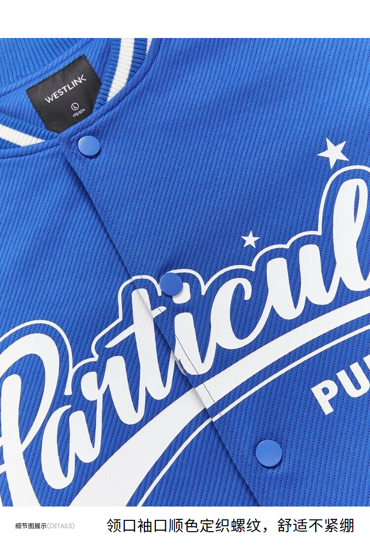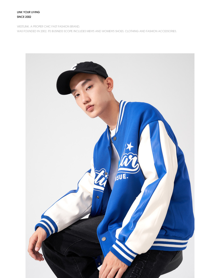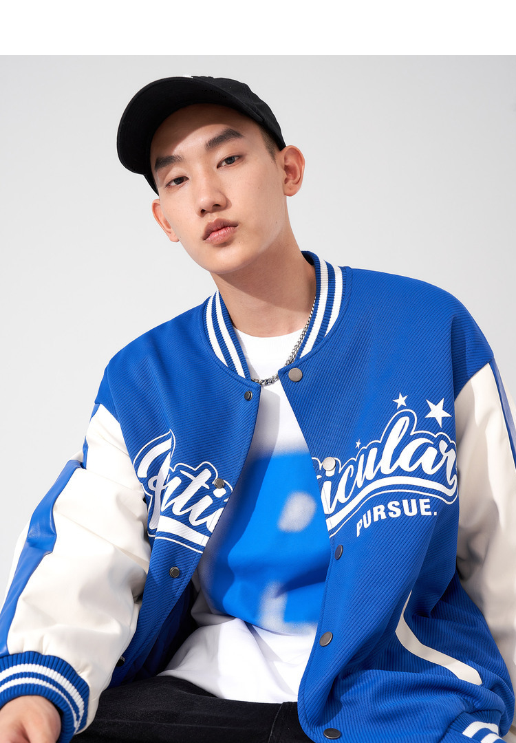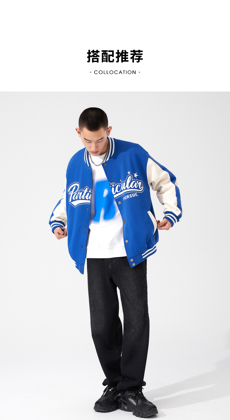 西遇棒球服男2023年冬季新款蓝色复古撞色潮ins宽松外套轻薄上衣12022432