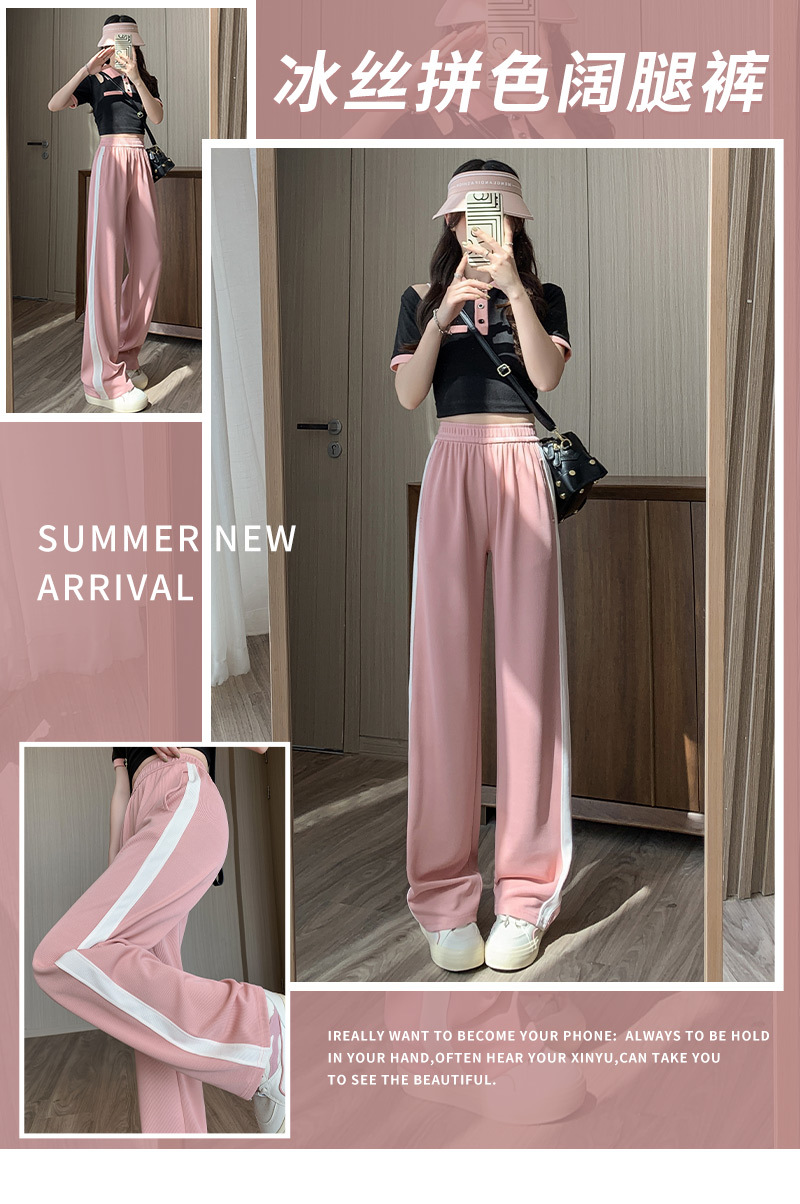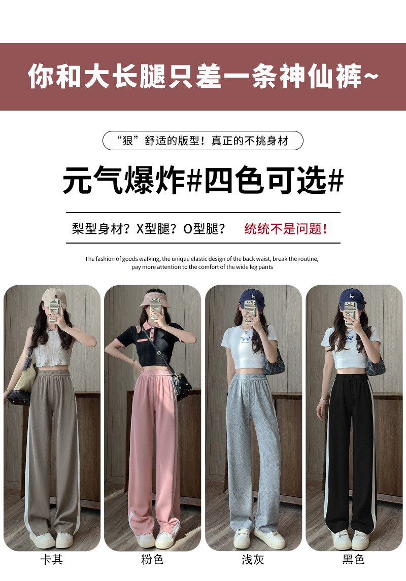 夏季新款冰丝薄款运动裤,采用垂感阔腿设计,舒适百搭,显瘦直筒裤子女。不仅透气性好,还具有吸汗快干的优点,让你在运动中始终保持干爽舒适。无论是户外运动还是日常休闲,都是你的不二选择!