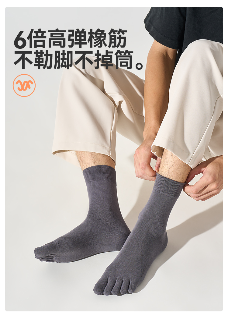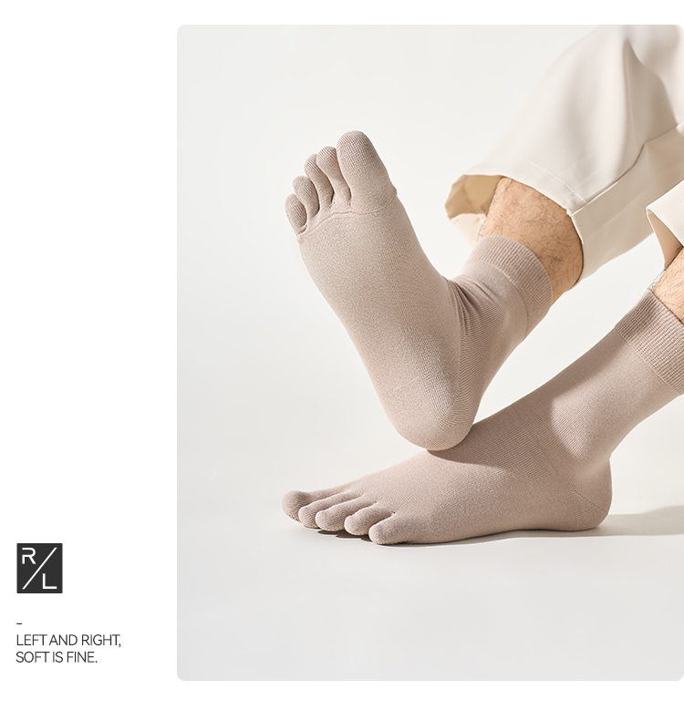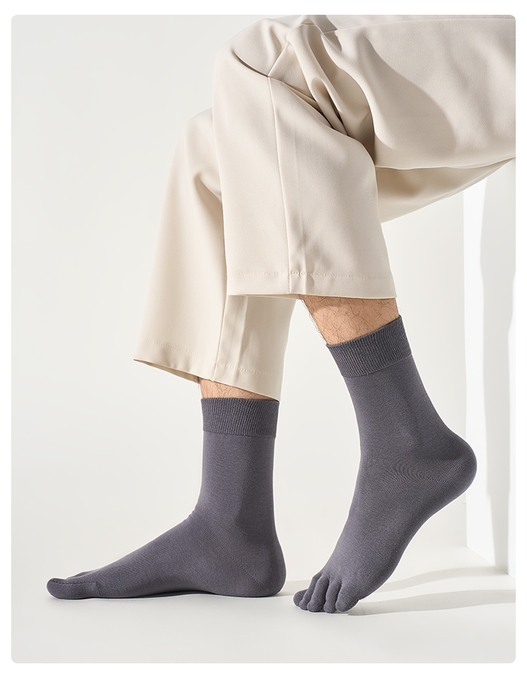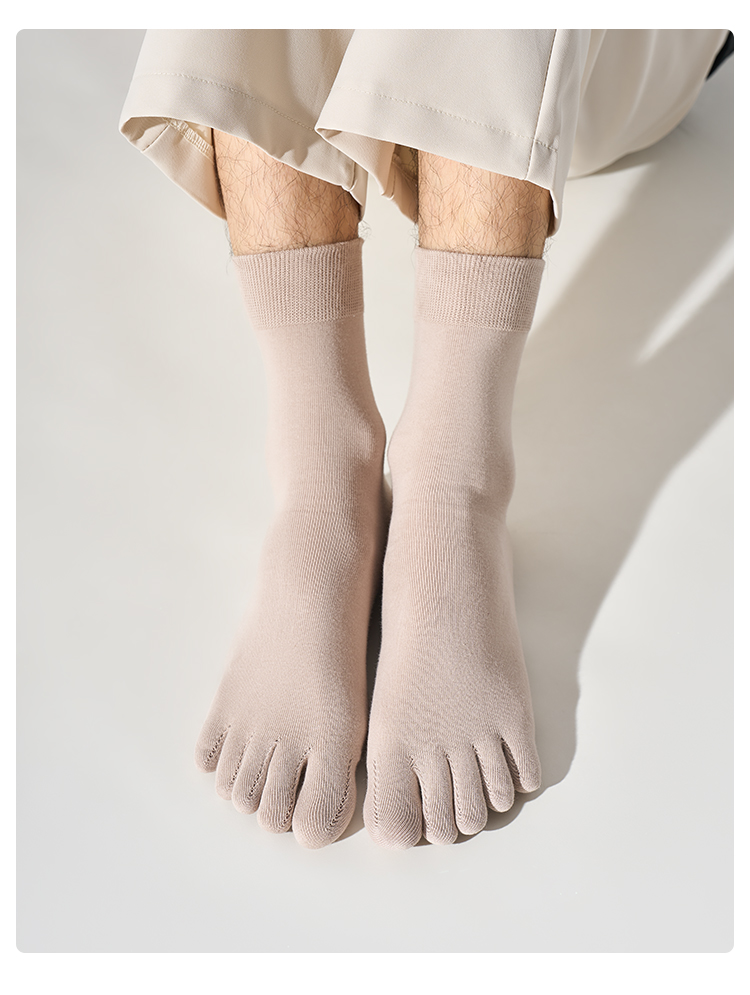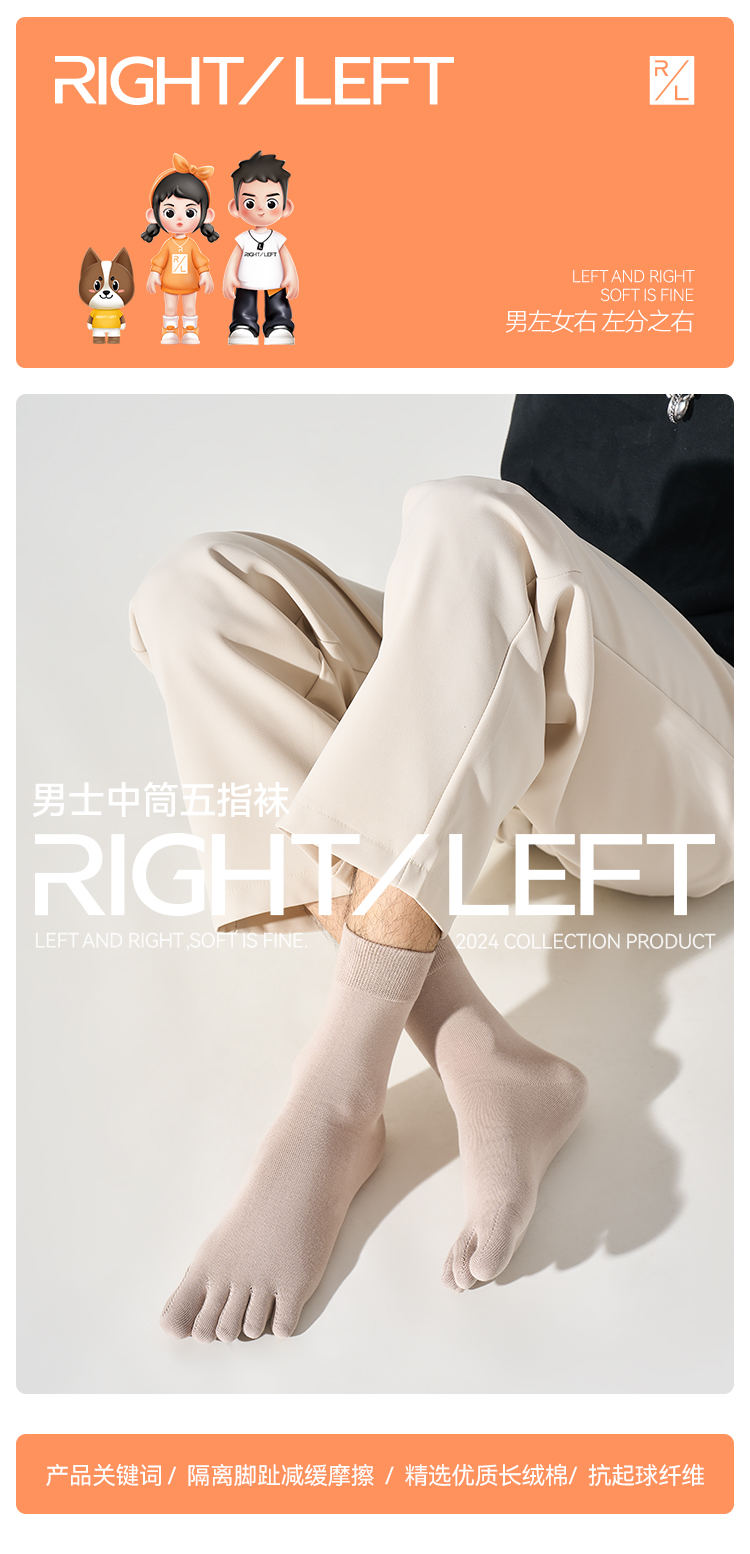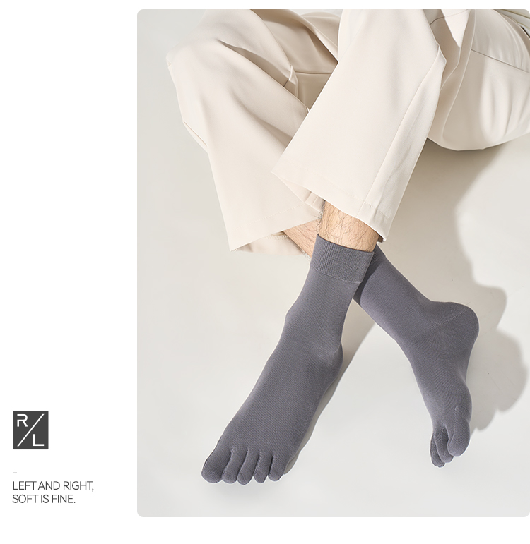 左分之右五指袜男士纯棉防臭10A抗菌中筒袜春夏款吸汗纯色长筒袜