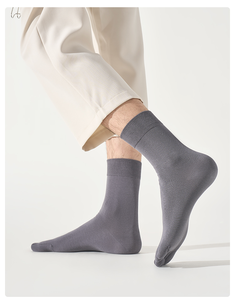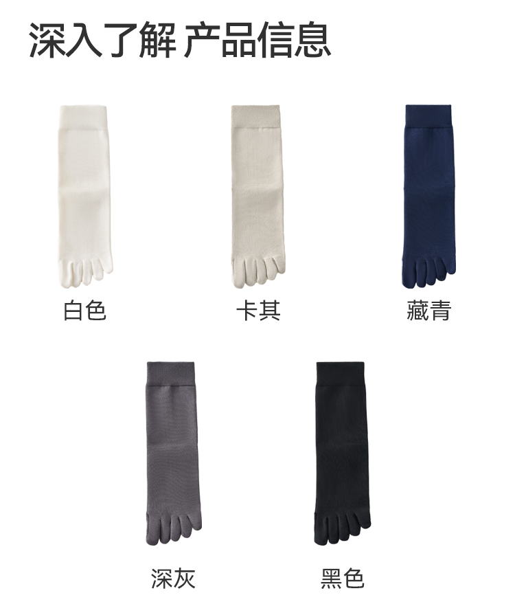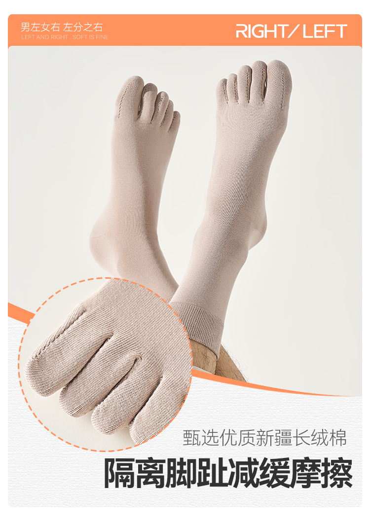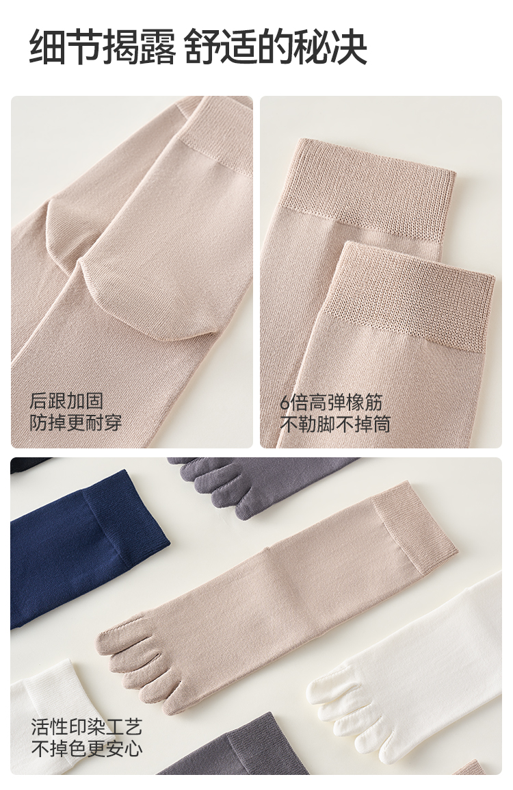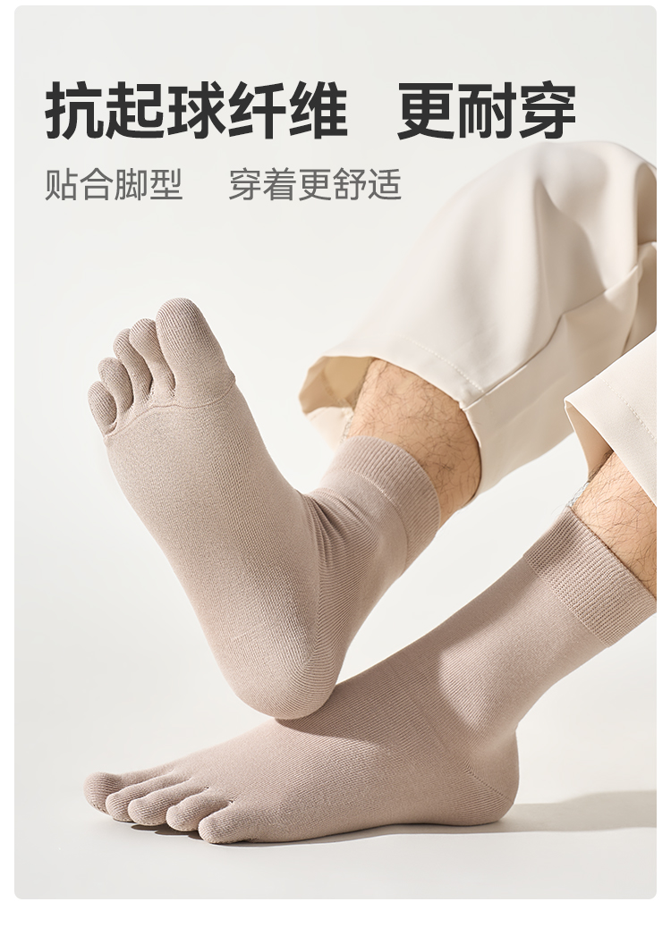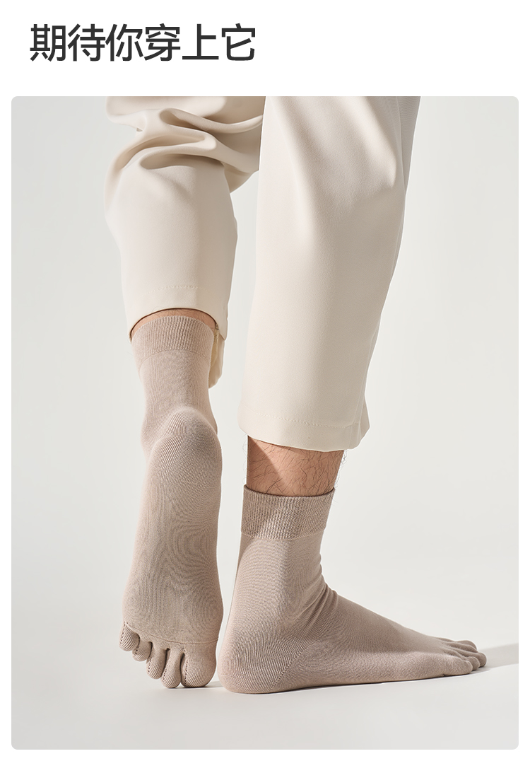 左分之右五指袜男士纯棉防臭10A抗菌中筒袜春夏款吸汗纯色长筒袜